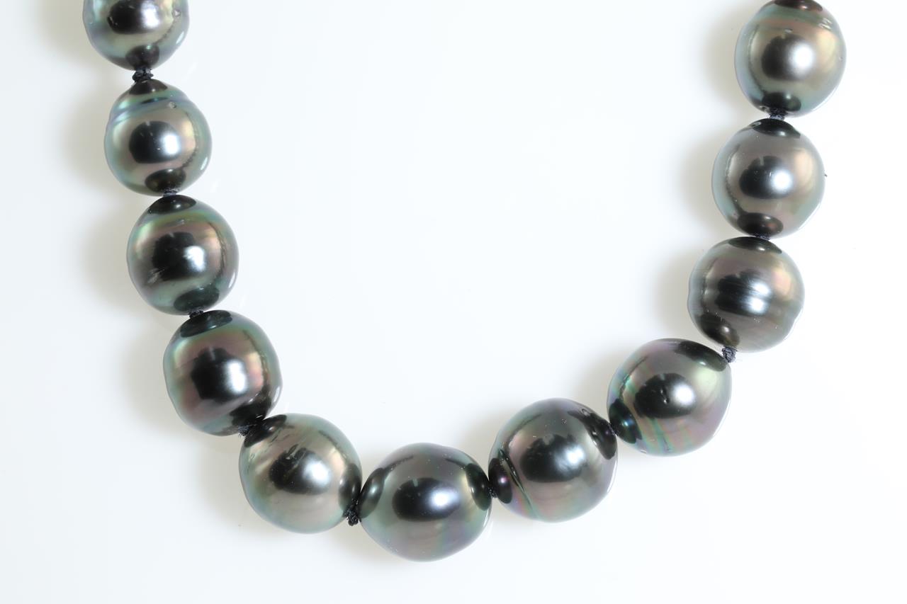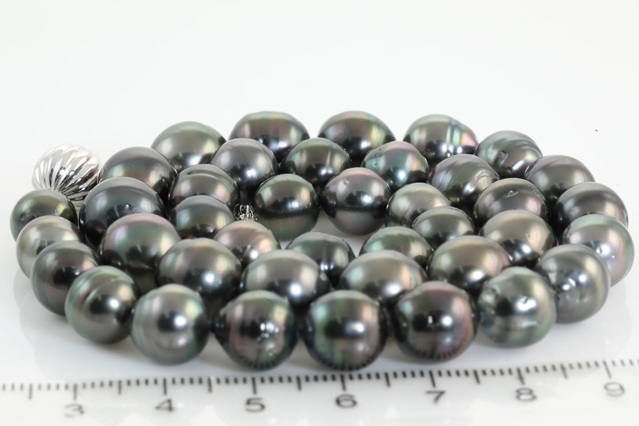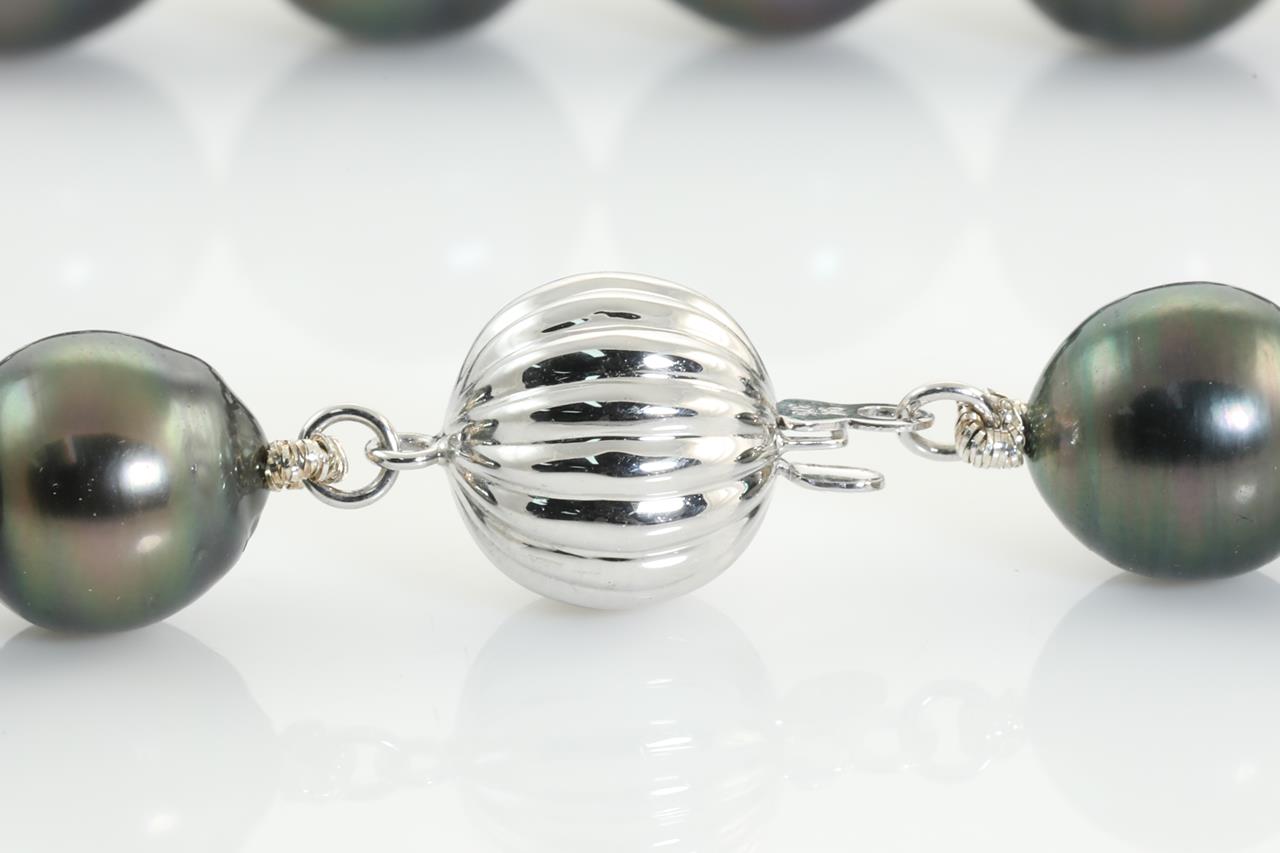 Pearl necklace with 40 Tahitian pearls of 8.5mm-11.0mm. With 9ct white gold clasp. Length: 45cm. Weight: 54g. (New)