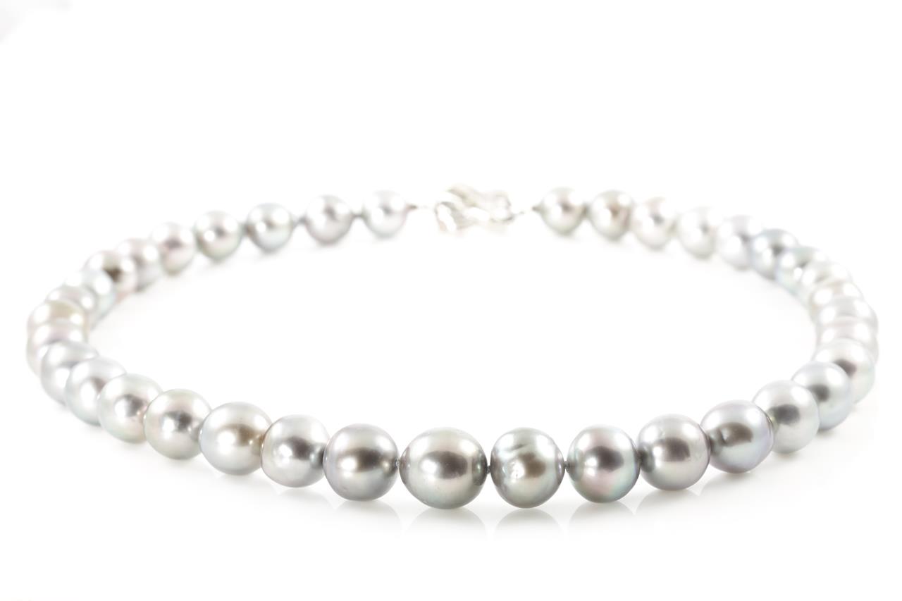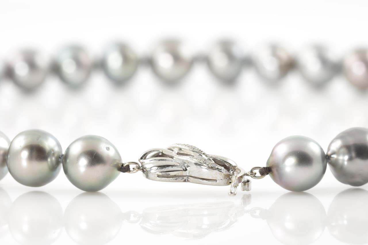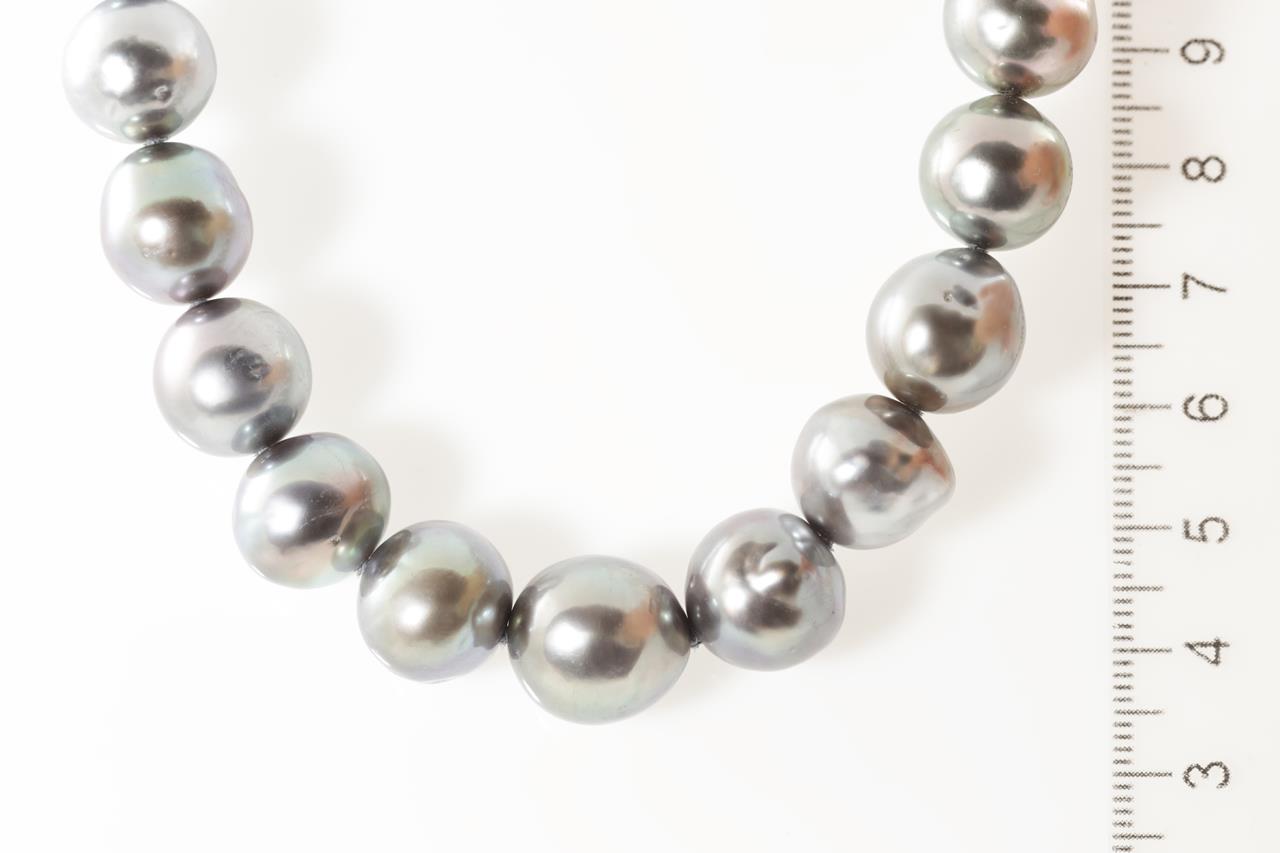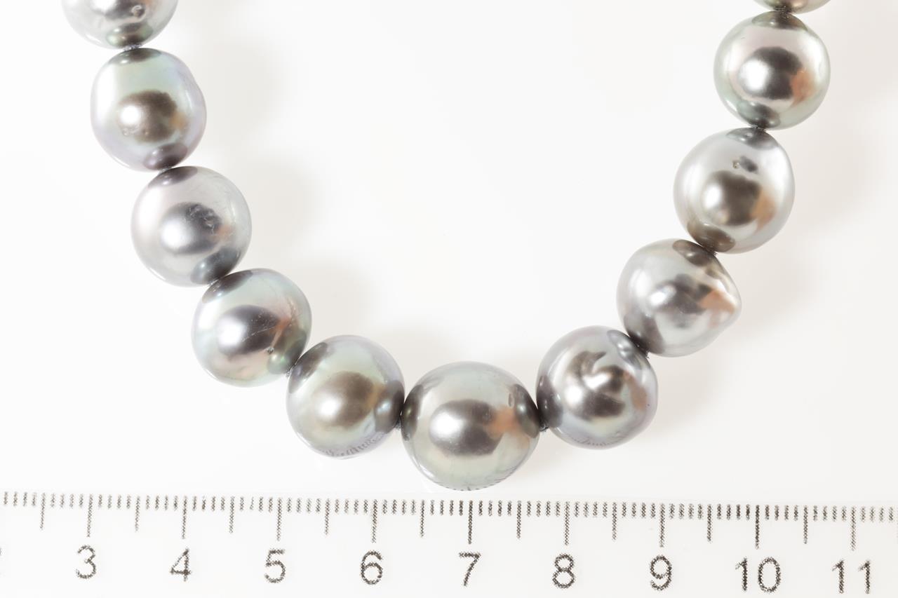 Pearl necklace with Tahitian Pearls of 10.5mm - 13.6mm. 14ct white gold clasp with Diamonds totalling 0.05cts. Weight: 86.1g (Pre-owned)