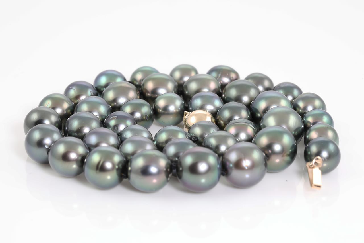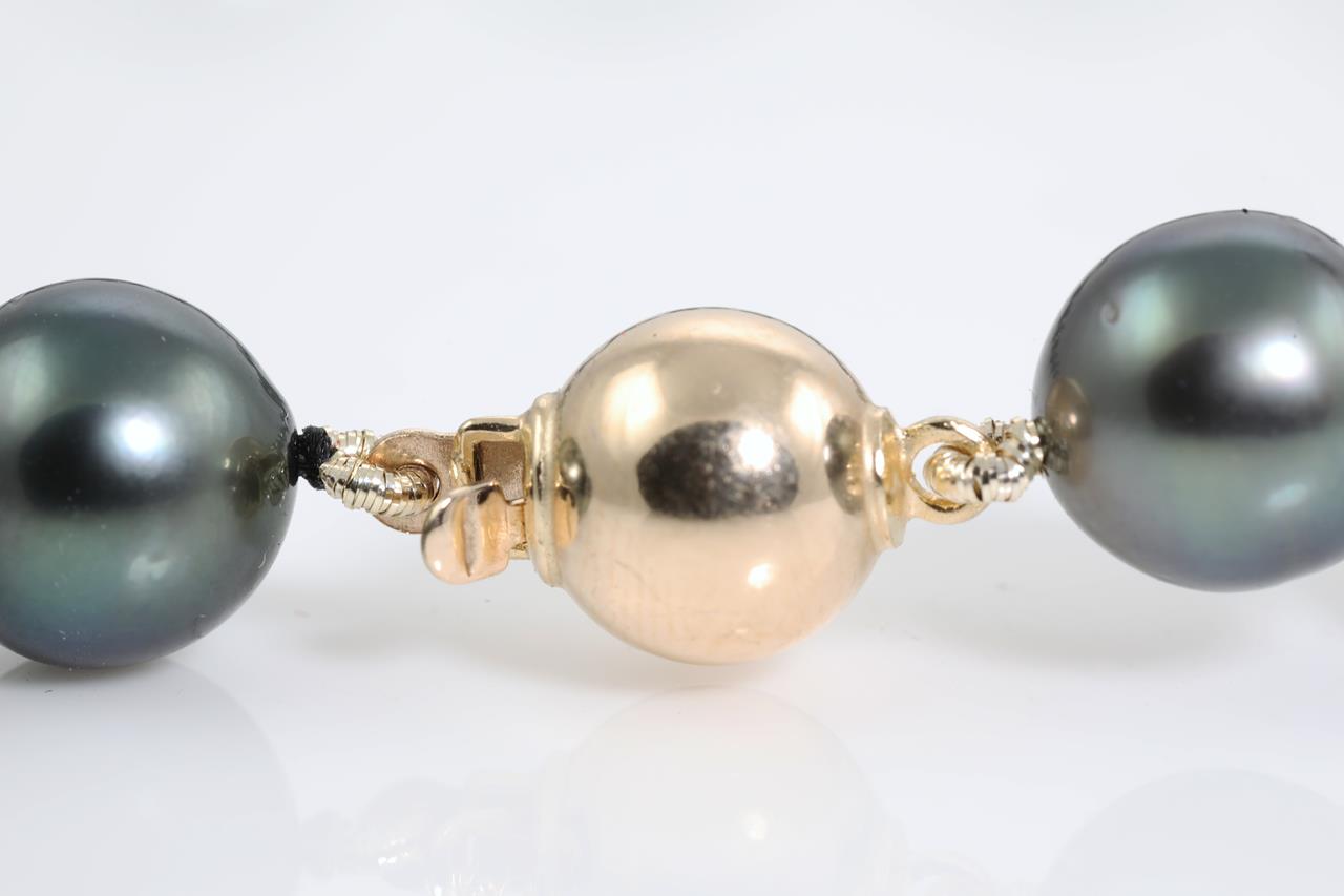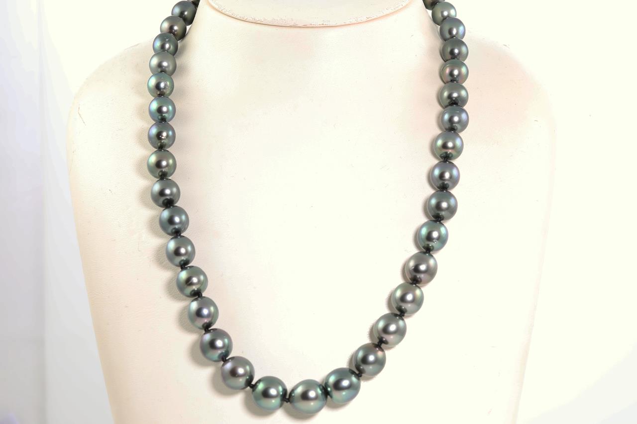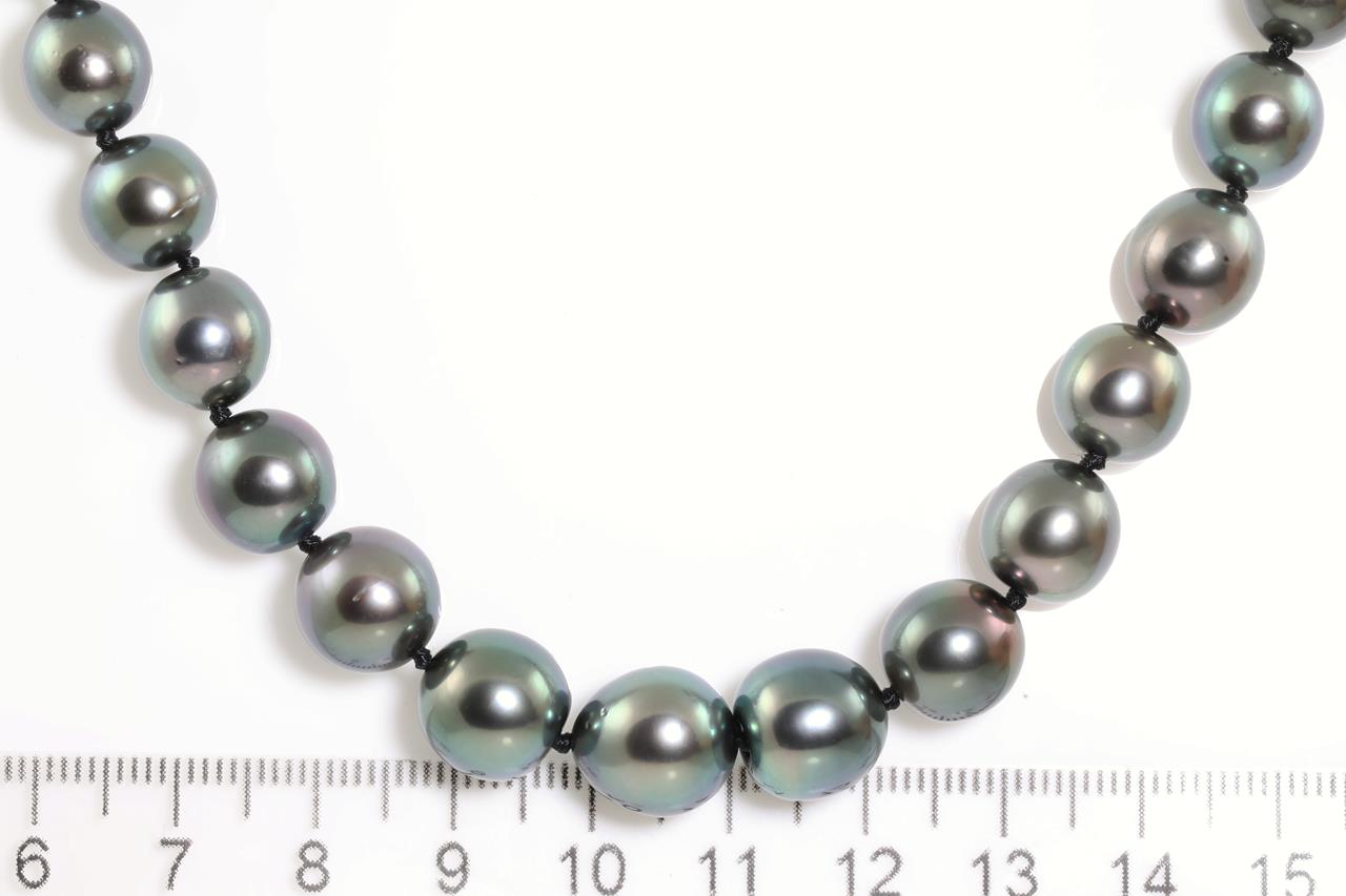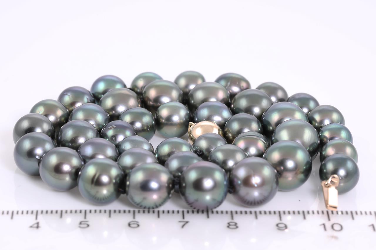 Pearl necklace with Tahitian pearls of 8.3mm - 12.2mm. 9ct yellow gold clasp. Length: 44cm. Weight: 49.7g. (Pre-owned)