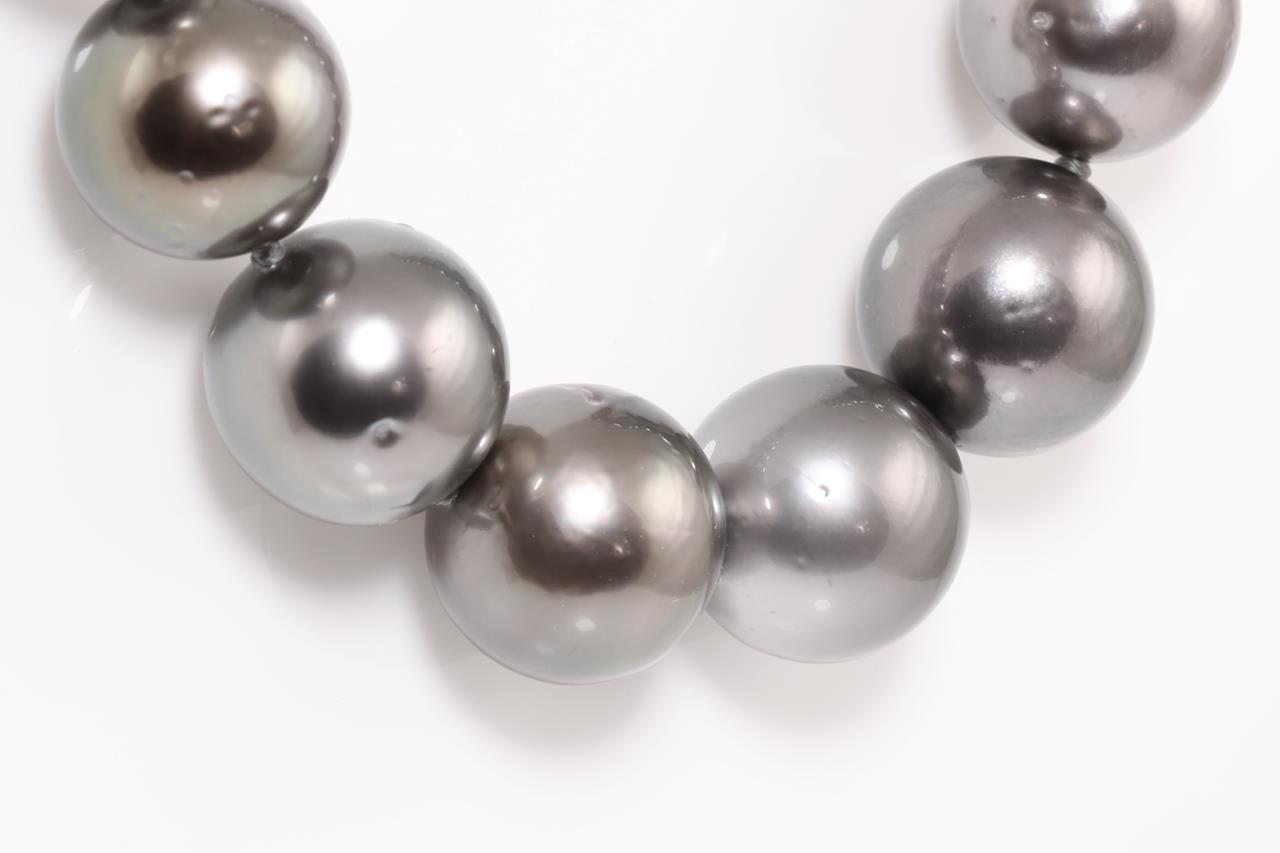 Pearl necklace with 39 graduated Tahitian pearls of 9mm-13mm. 14ct white gold clasp with cultured pearl. Length: 49.5cm. Weight: 88.6g. (Pre-owned)