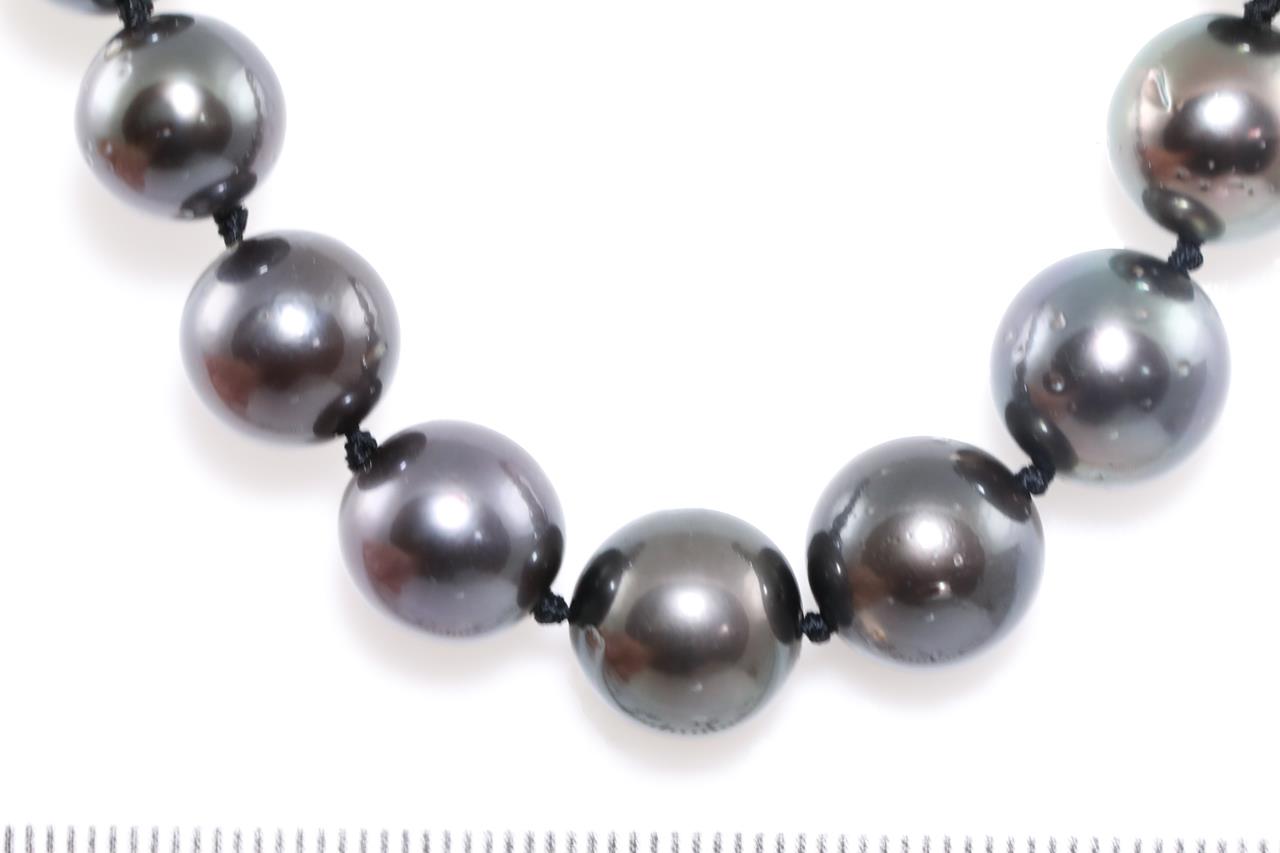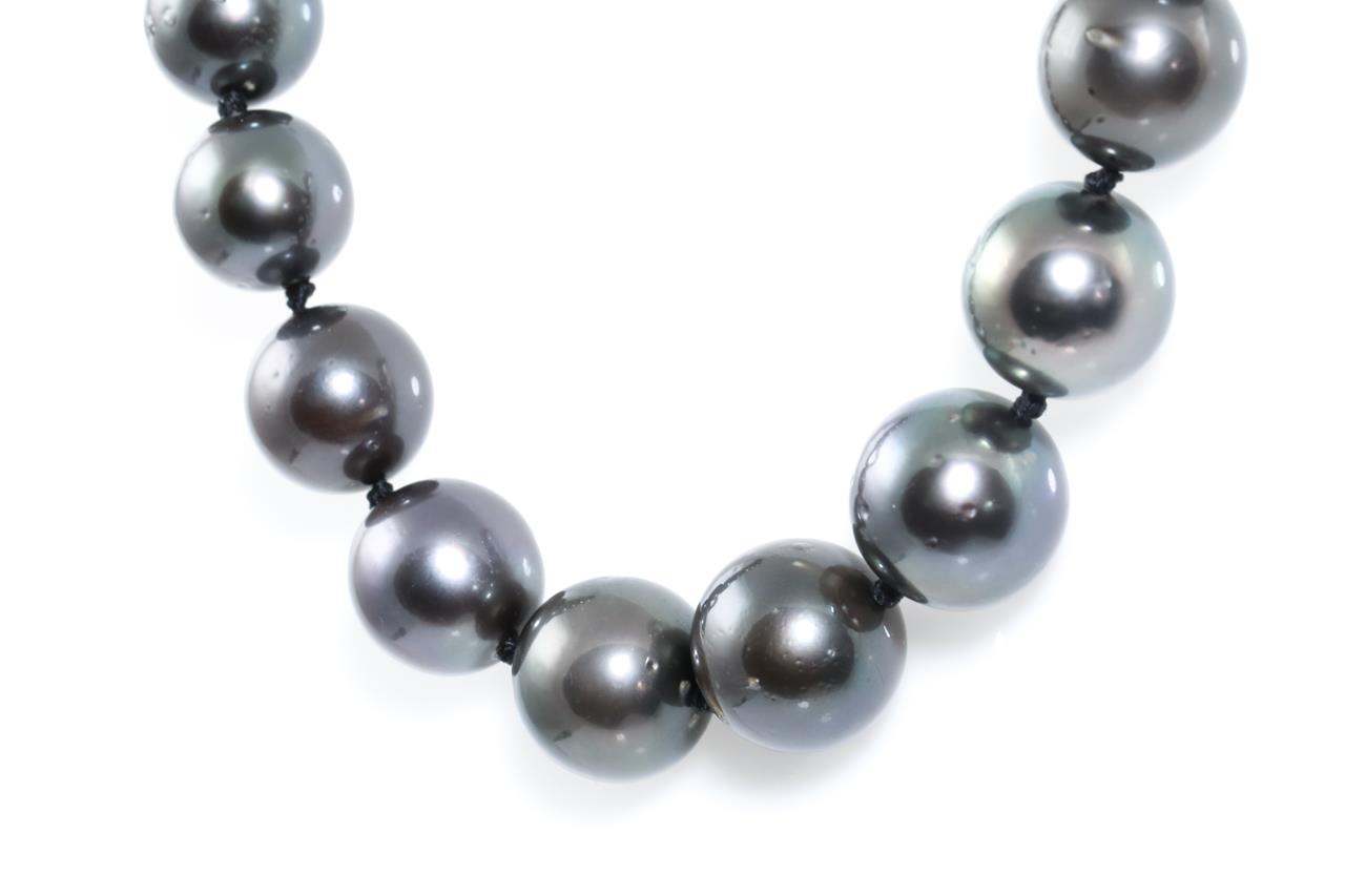 Pearl Necklace with 46 graduated Tahitian pearls of 8.1mm-11.5mm. With 18ct yellow gold clasp. Length: 50cm Weight: 58.8g (Pre-owned)