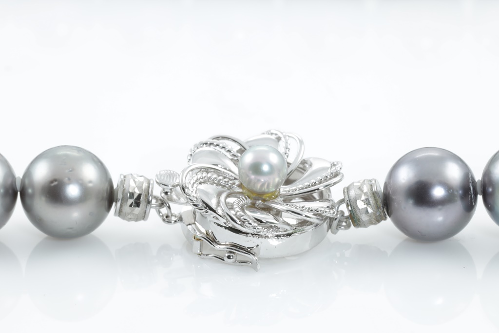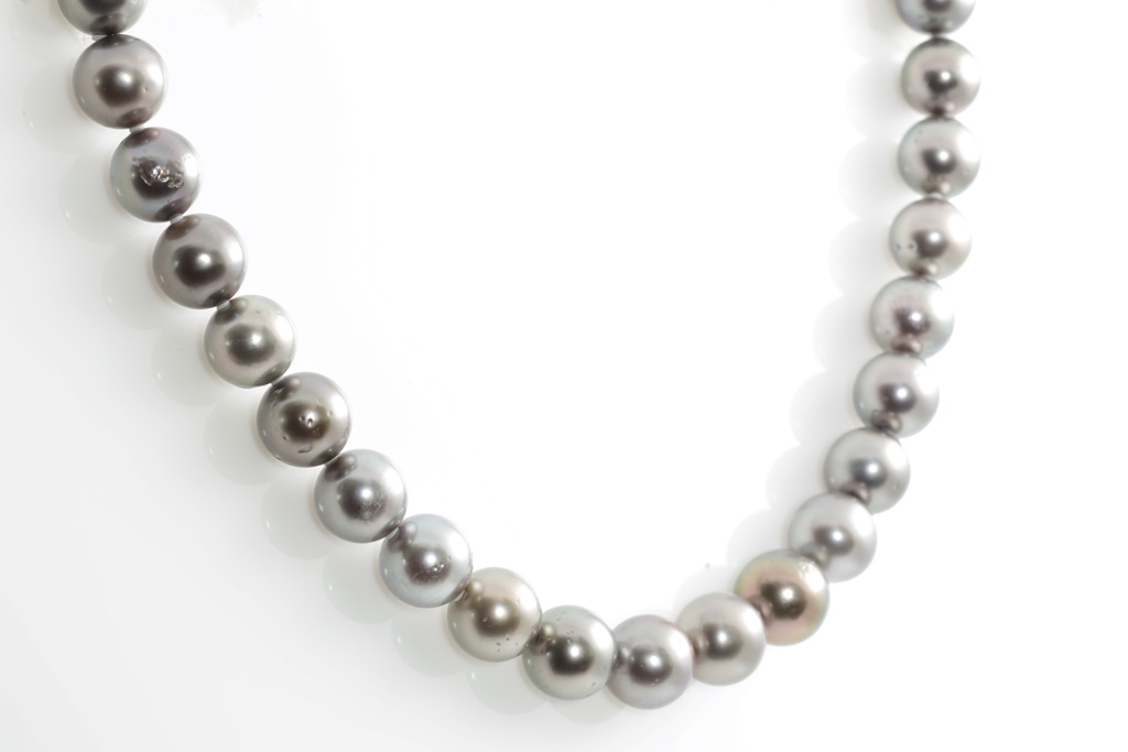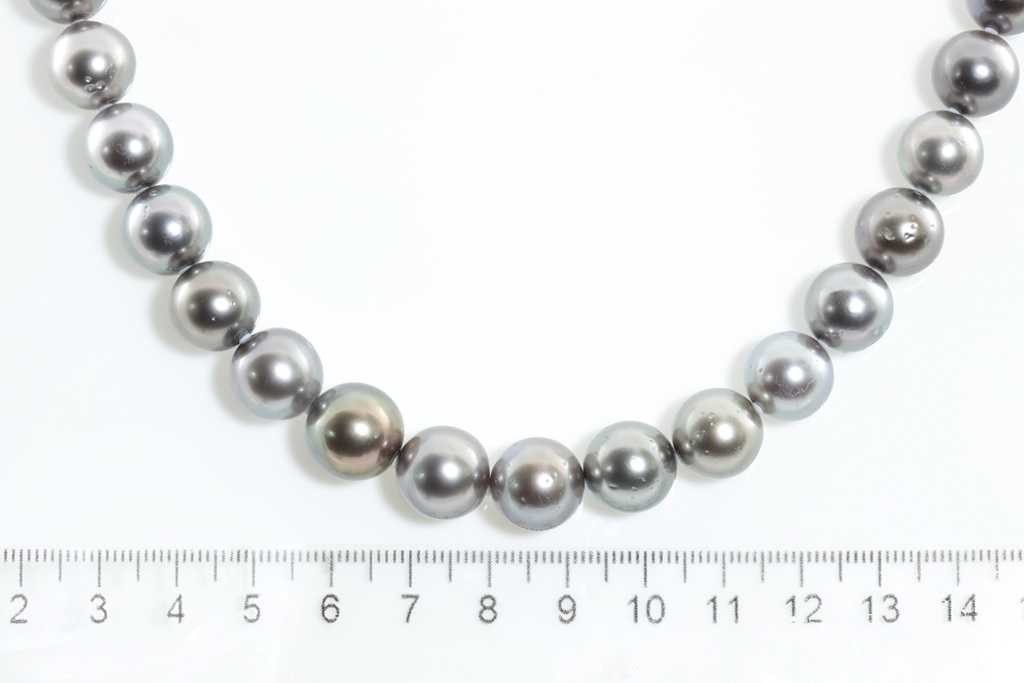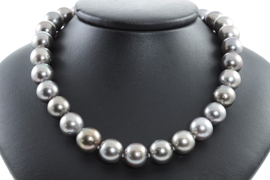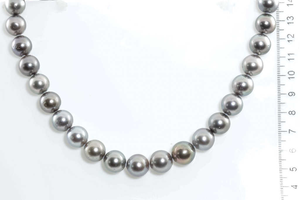 Tahitian Pearl necklace with 37 Pearls of 12.4mm-10.2mm. With 14ct white gold clasp. Length: 43cm. Weight: 82.3g. (Pre-owned)