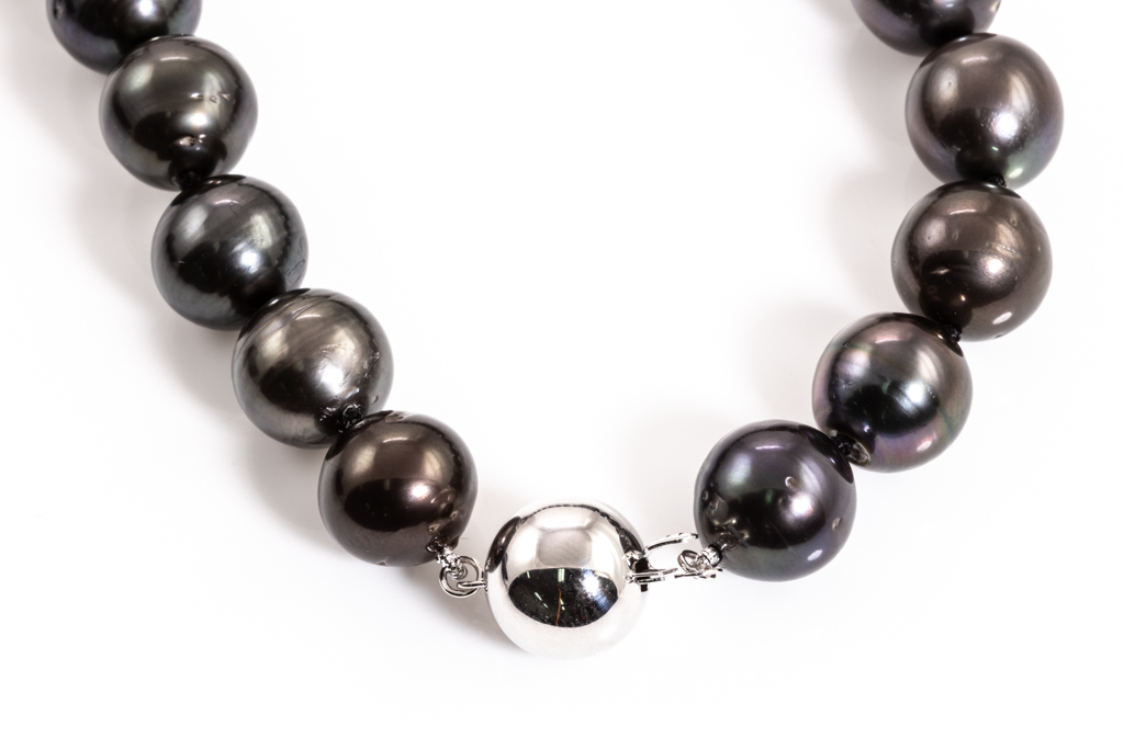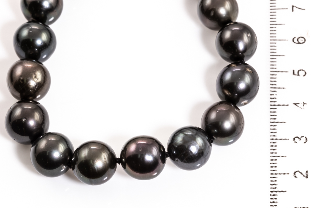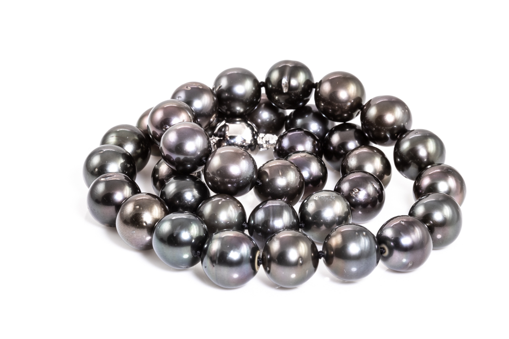 Pearl necklace with Tahitian Pearl of 11.0-11.9mm. Length: 49cm. 14ct white gold 11mm gold clasp. Weight: 77g. (Pre-owned)