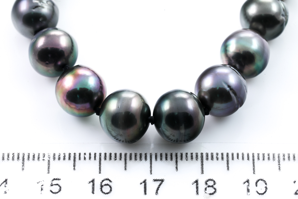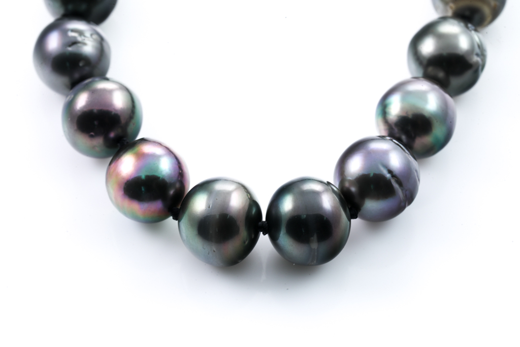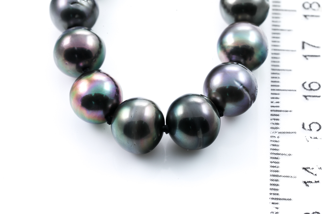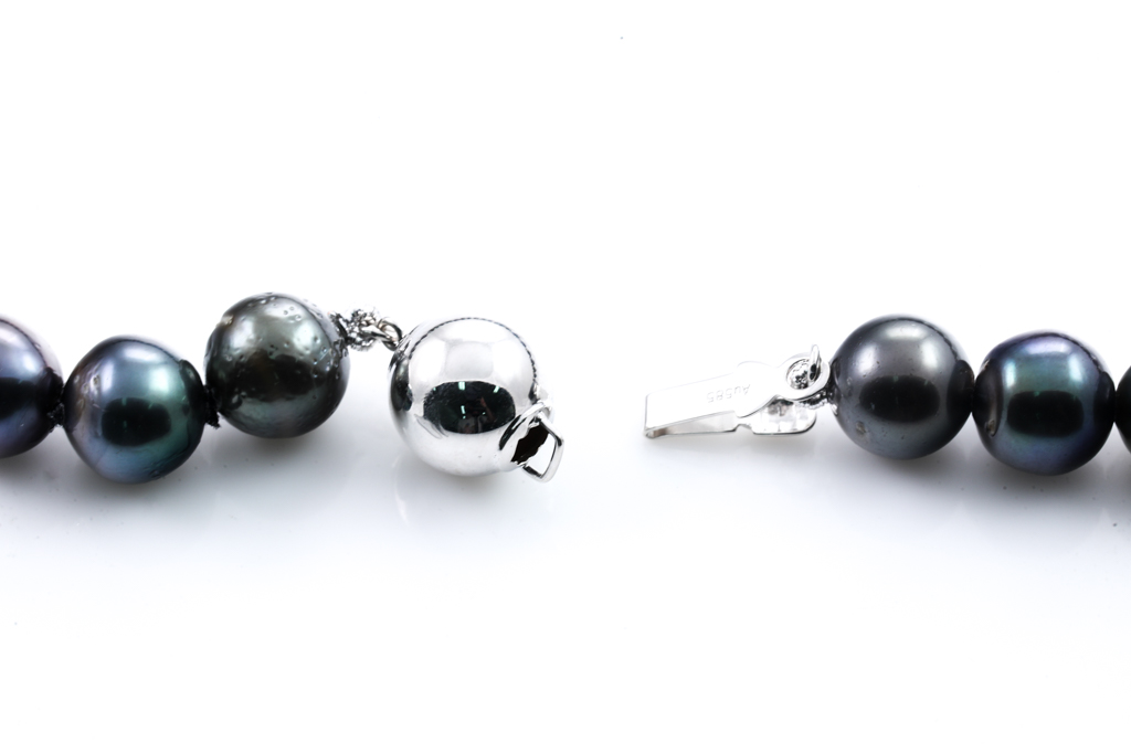 Pearl necklace with graduated Tahitian Pearl of 10.5mm-8mm. 14ct white gold 9mm clasp. Length: 45cm. Weight: 48.4g. (New)