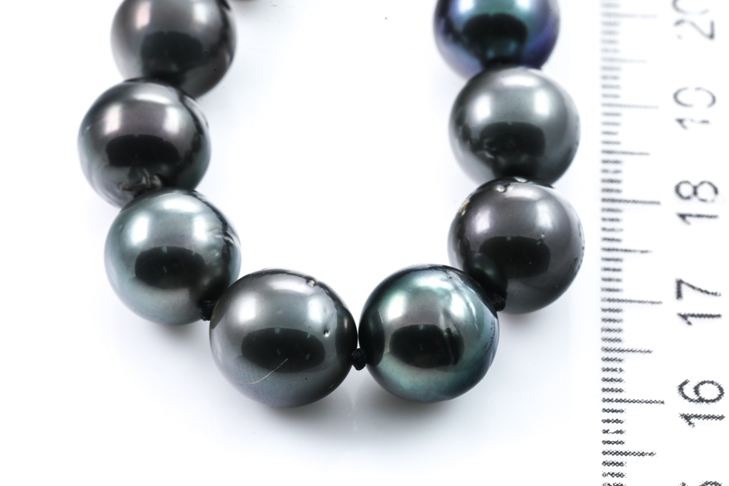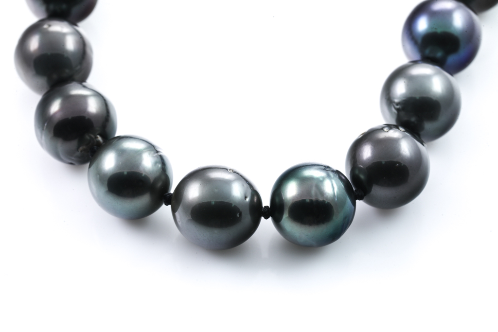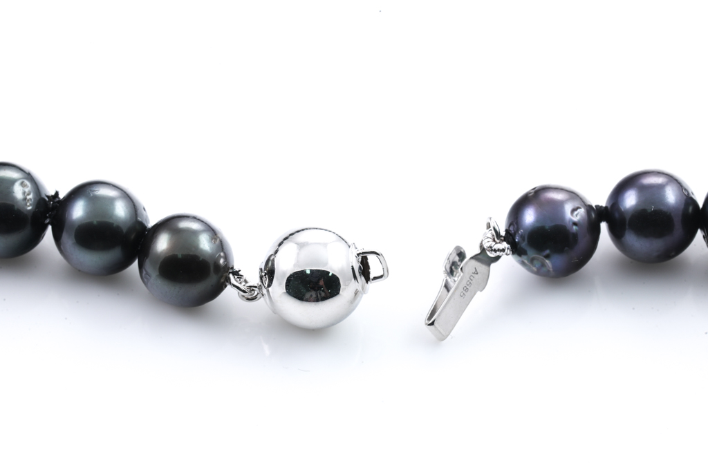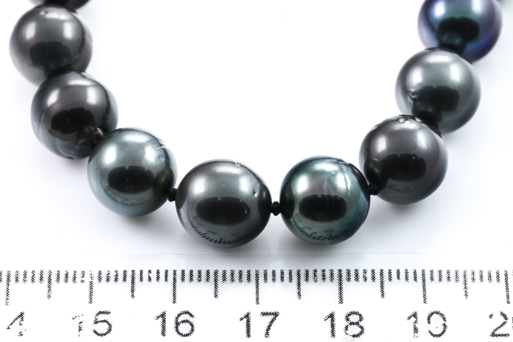 Pearl necklace with graduated Tahitian Pearl of 10.8-8mm. 14ct white gold 9mm clasp. Length: 45cm. Weight: 55.3g. (New)