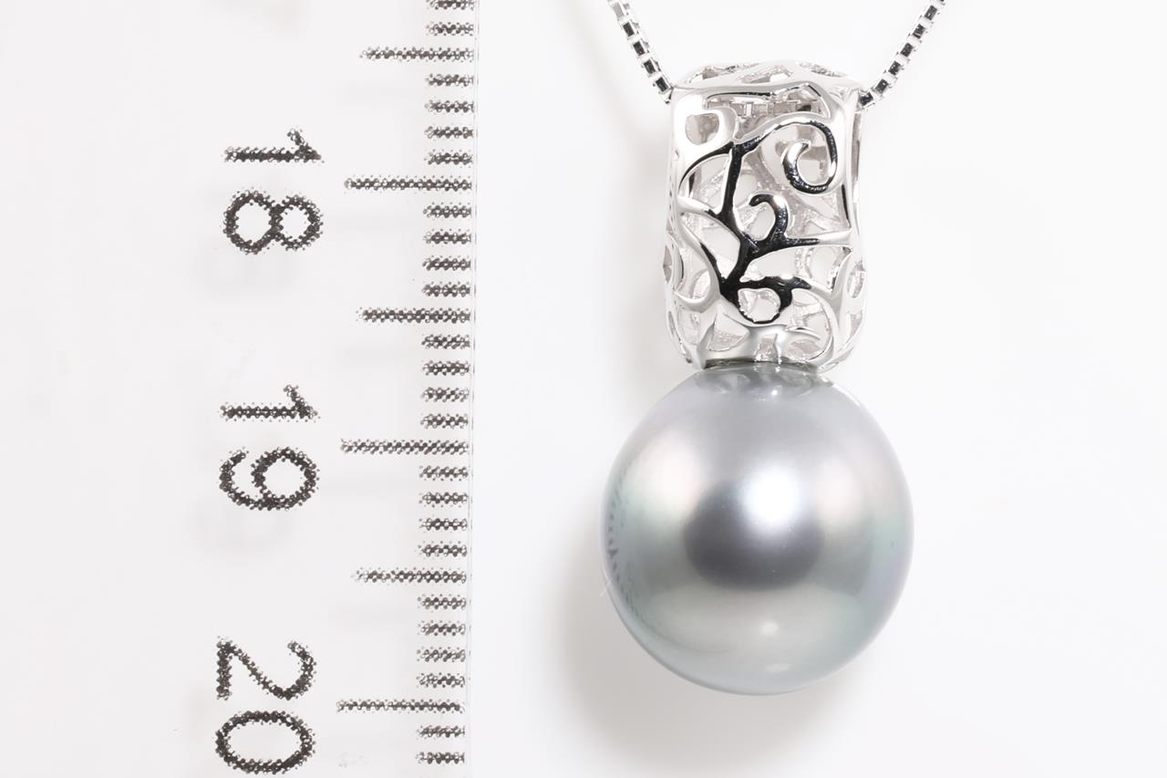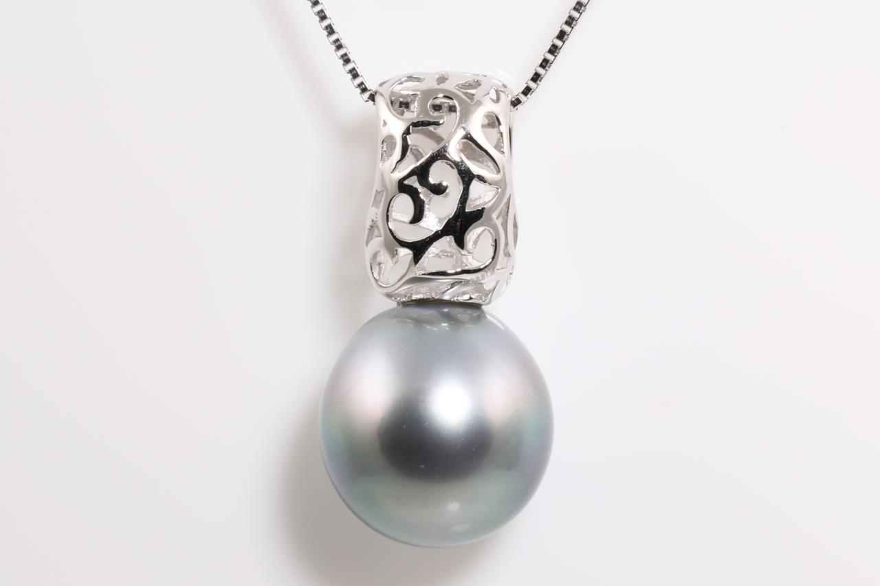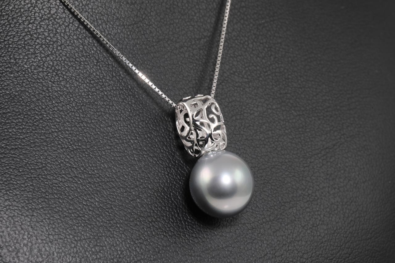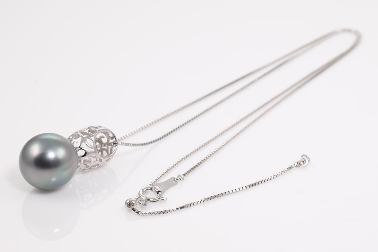 Tahitian Pearl Pendant with Tahitian Pearl of 12.0mm. 18ct white gold with 44cm adjustable chain. Weight: 5.4g. (Pre-owned)