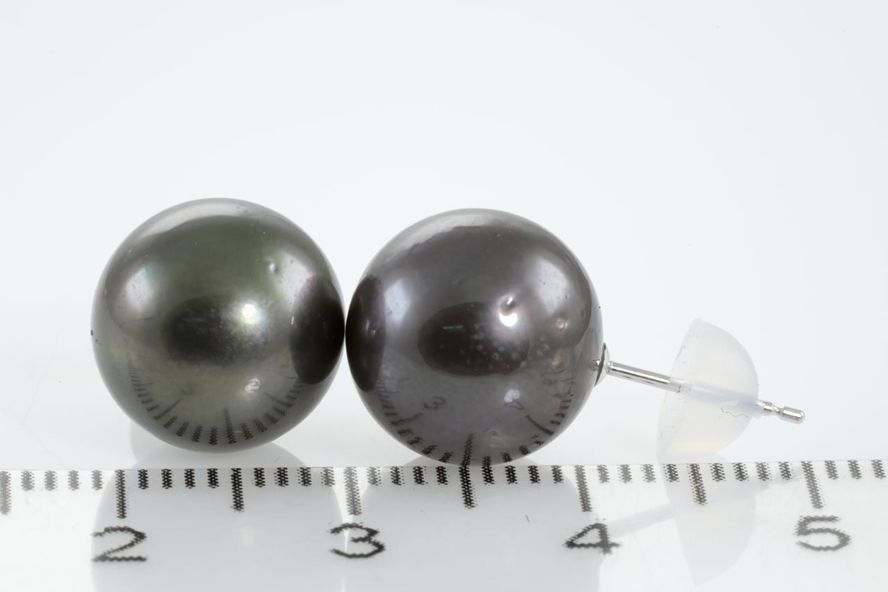 Pearl stud earrings with Tahitian Pearl of 11.2mm and 11.3mm. 14ct white gold (New).