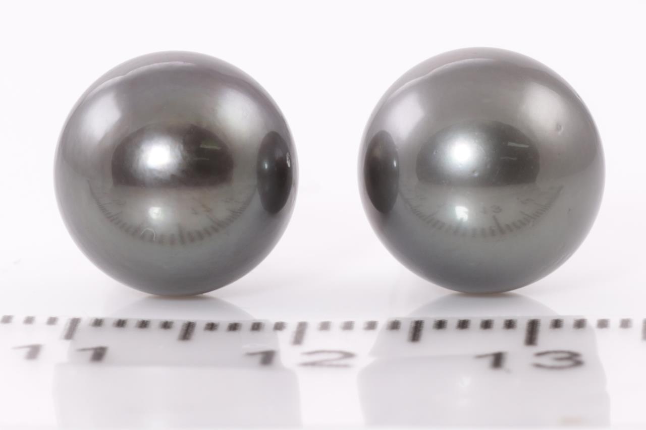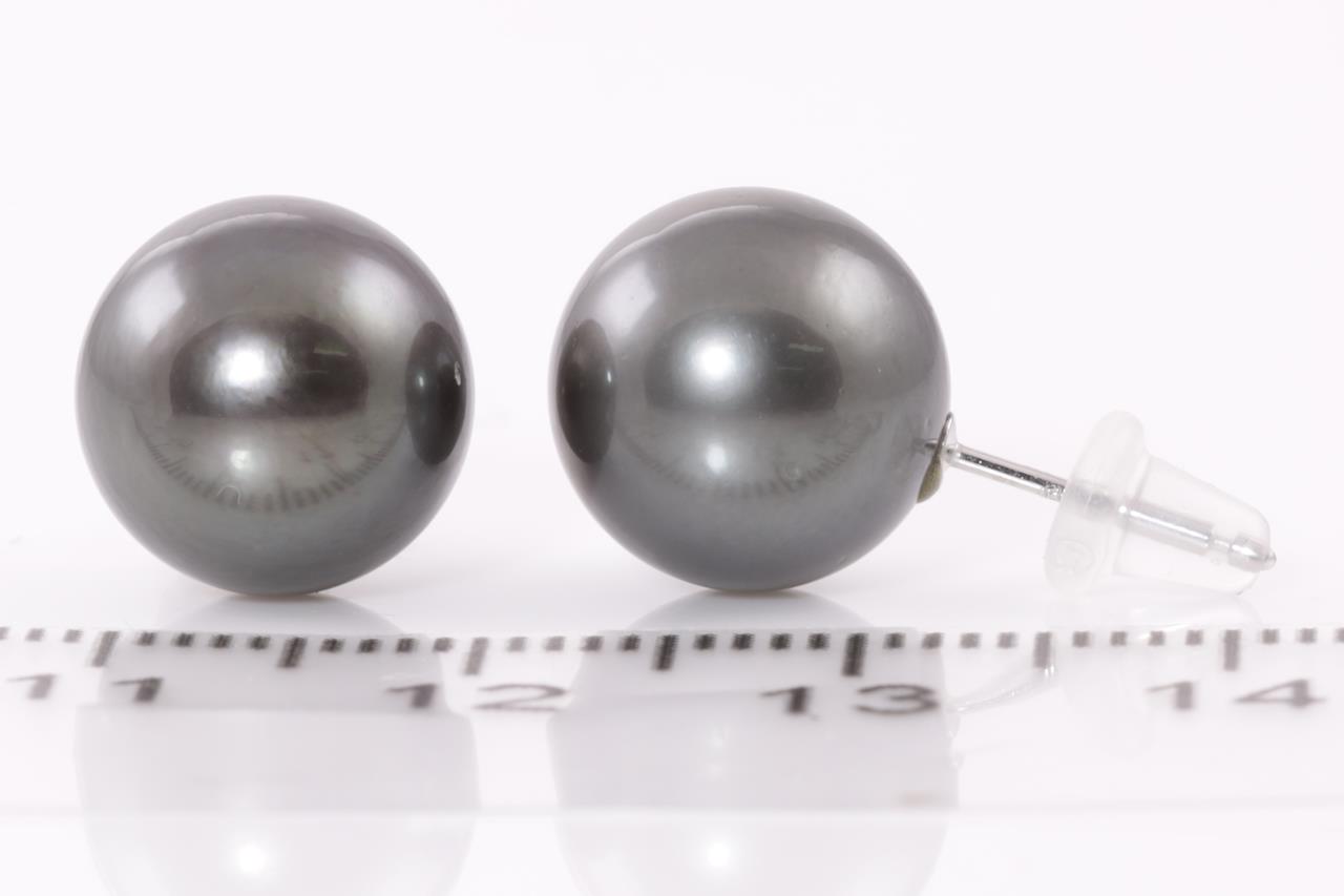 Pearl stud earrings with Tahitian Pearls of 10.8mm. 18ct white gold with silicon backs. Weight: 3.8g. (Pre-owned)