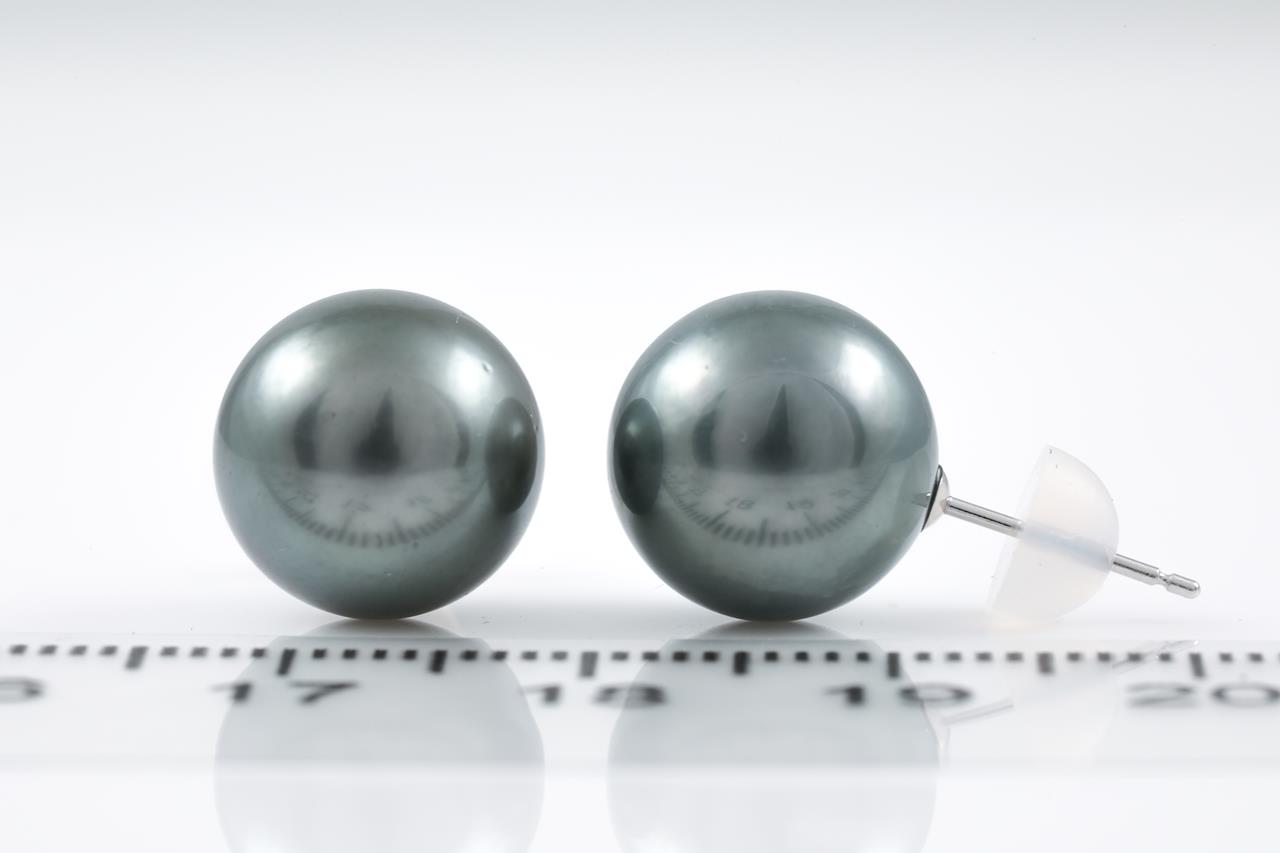Pearl stud earrings with Tahitian Pearls of 11.2mm. 18ct white gold with silicon backs. Weight: 4g. (Pre-owned)