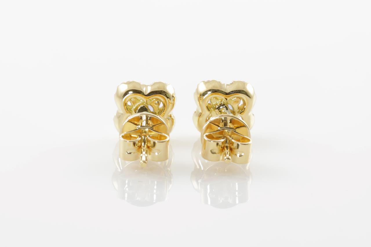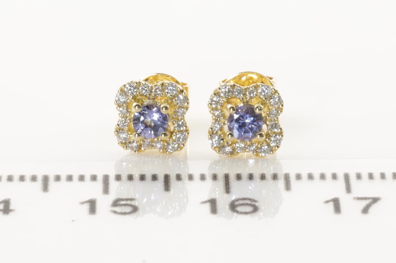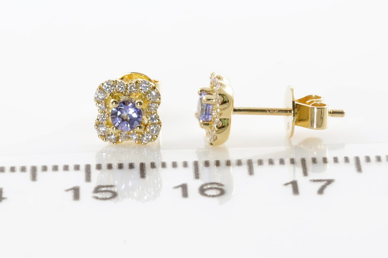 Tanzanite and Diamond earrings with round Tanzanite totalling 0.25cts and Diamonds totalling 0.13cts. 18ct yellow gold. Weight: 1.8g. (New)