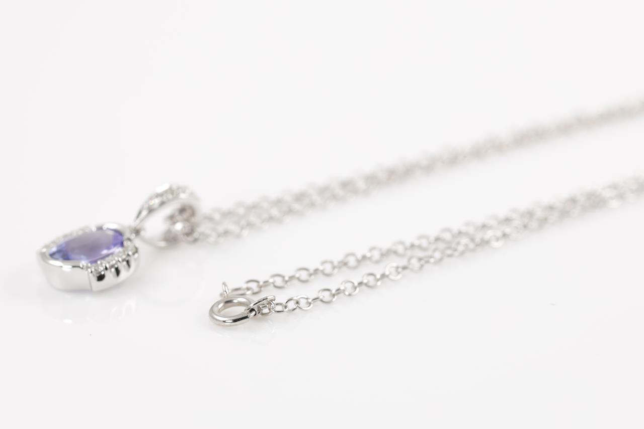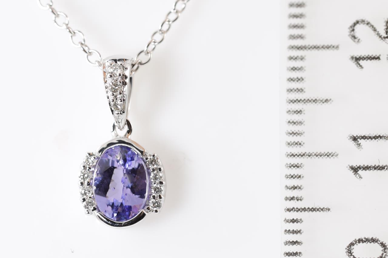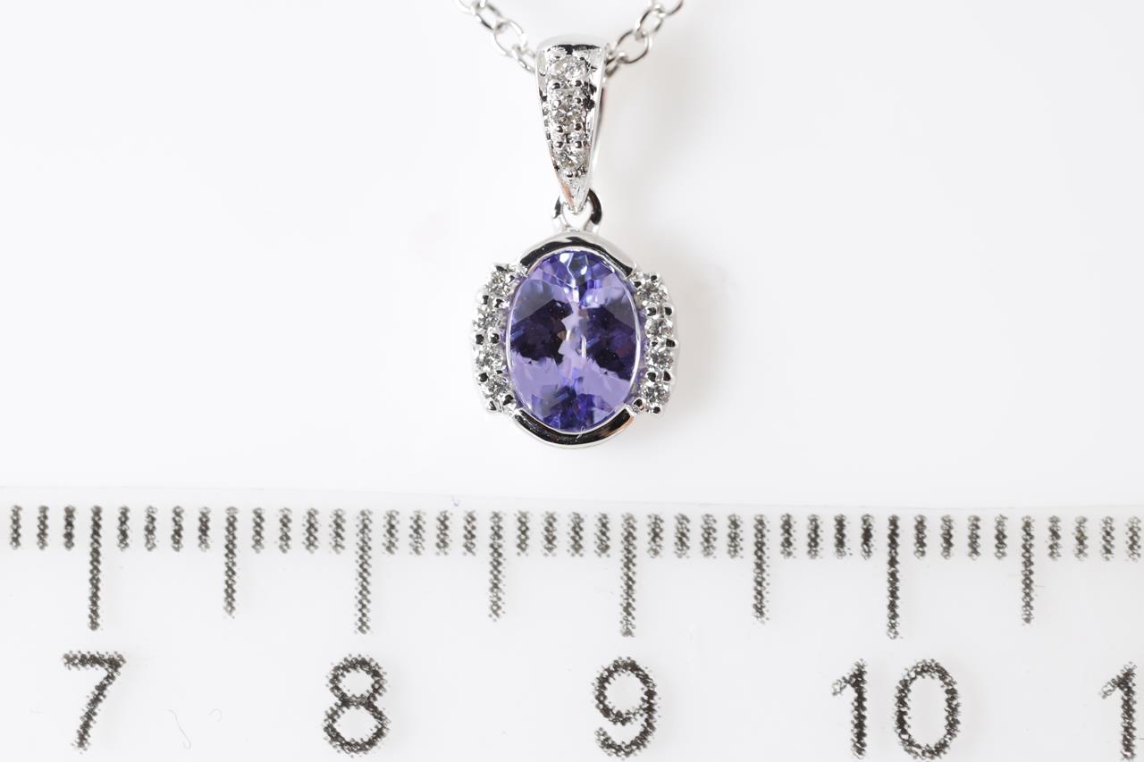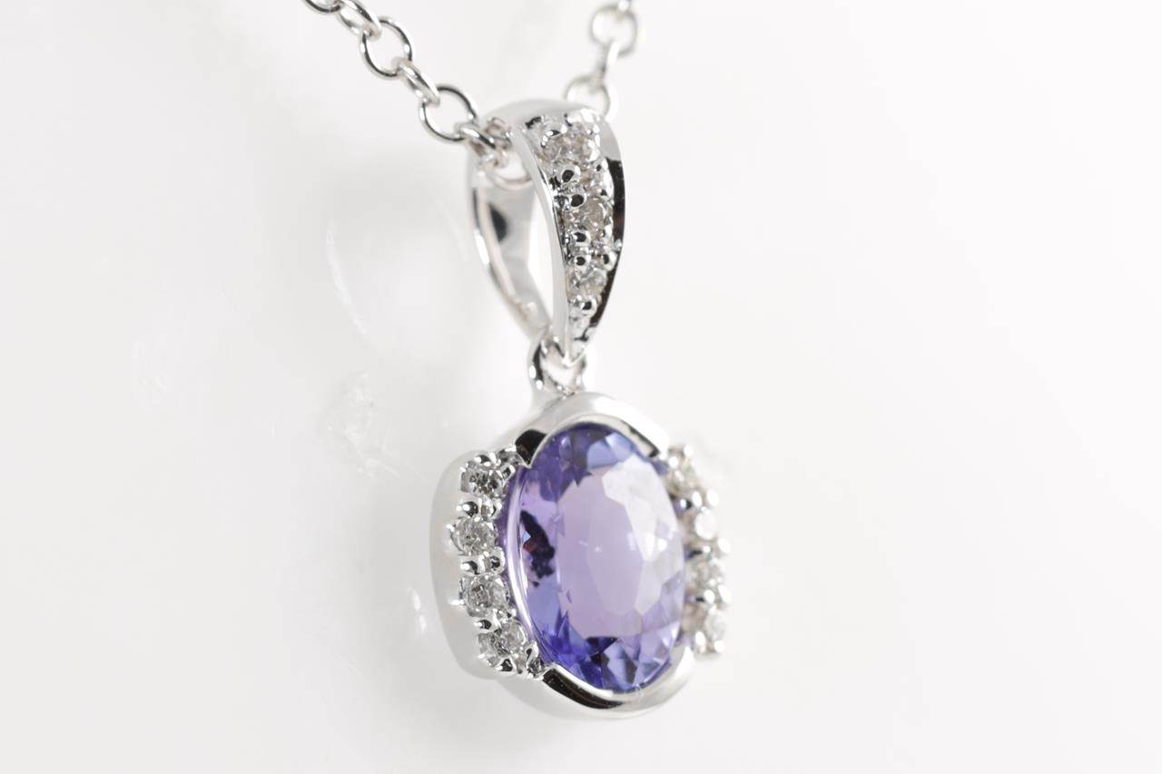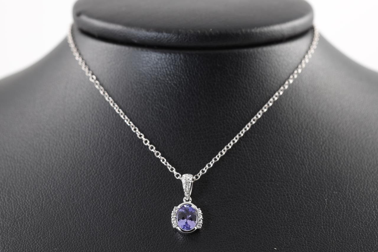 Tanzanite and Diamond pendant with an oval Tanzanite of 0.76ct and Diamonds totalling 0.07cts. 18ct white gold with 14ct gold 44cm chain. Weight: 2.4g. (New)