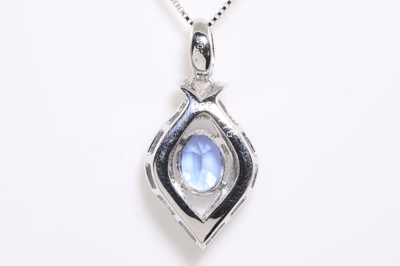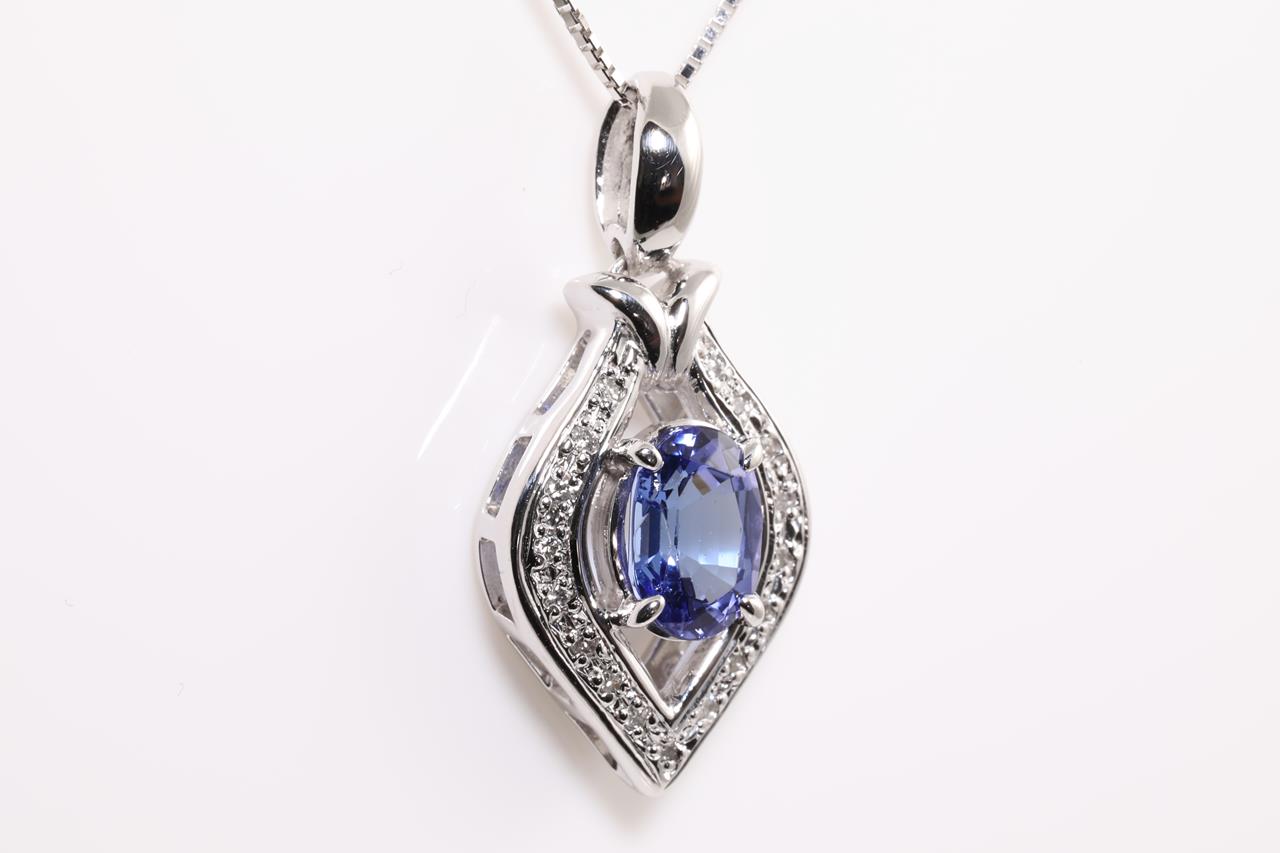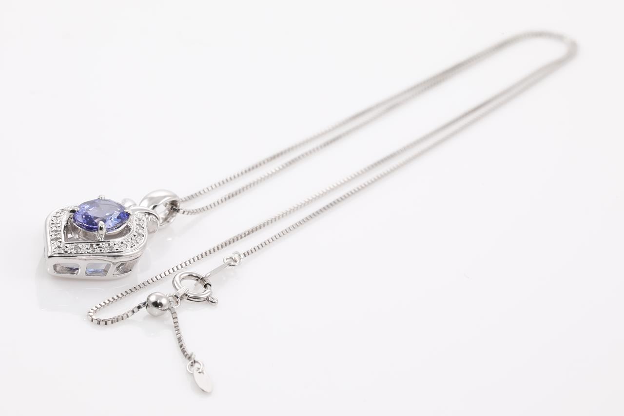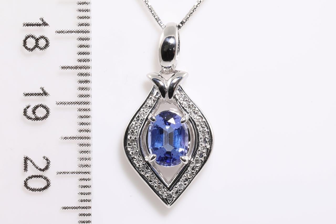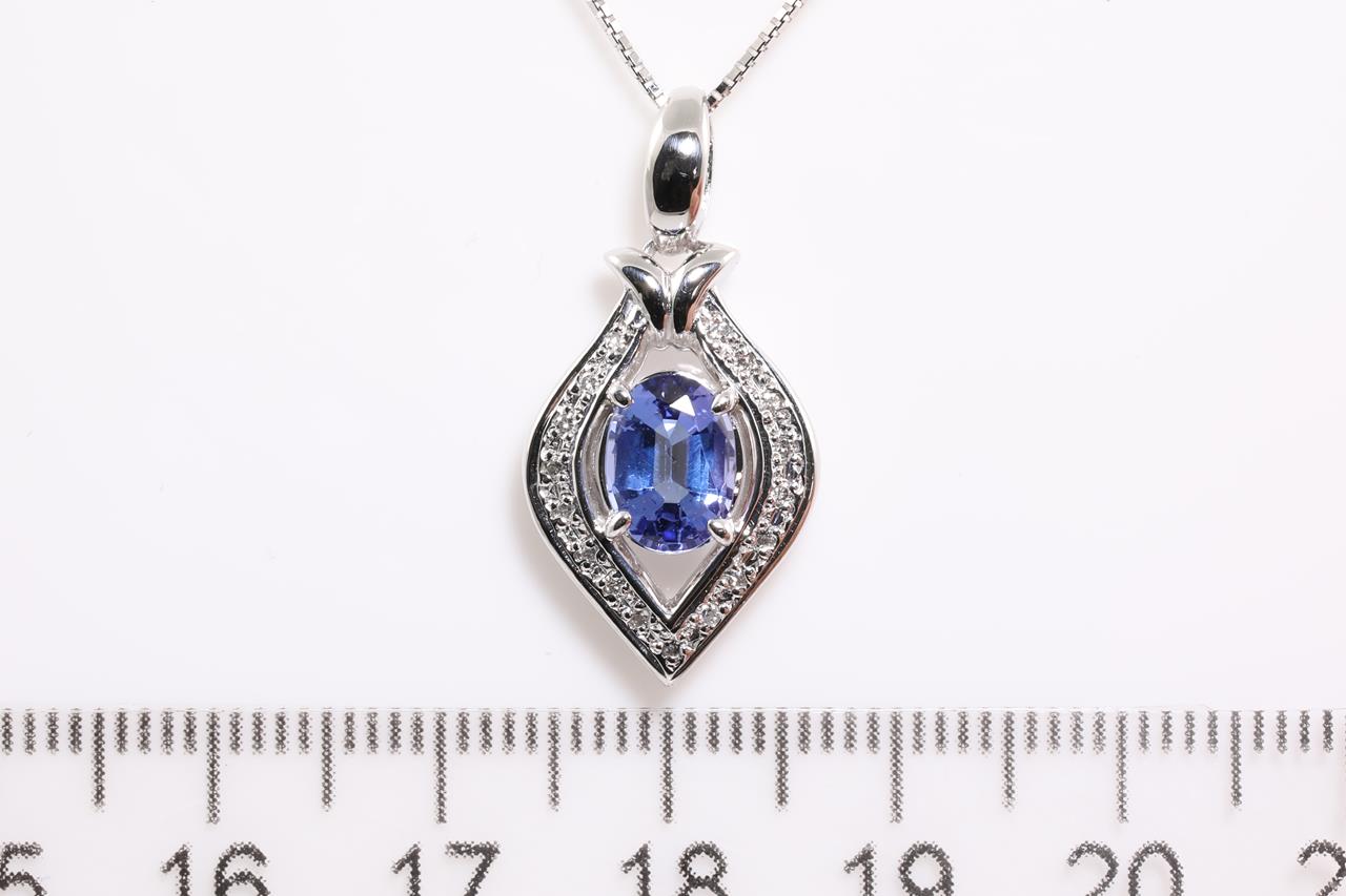 Tanzanite and Diamond pendant with an oval Tanzanite of 1.16ct and Diamonds totalling 0.08cts. Platinum with 18ct white gold adjustable 44cm chain. Weight: 7.5g. (Pre-owned)
