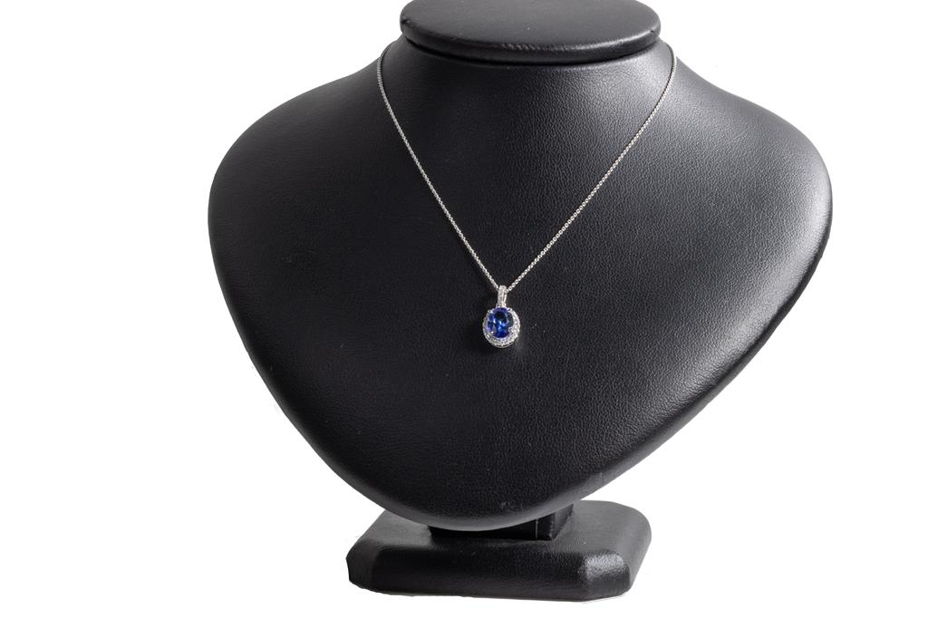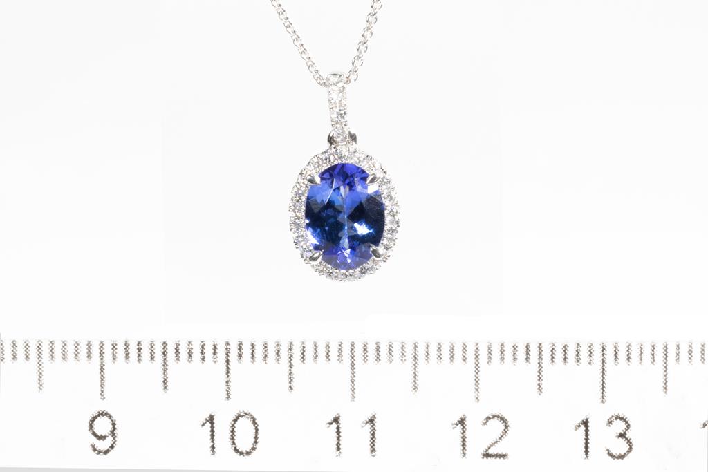 Tanzanite and Diamond Pendant with oval Tanzanite of approximately 0.58ct and round Diamonds totalling approximately 0.14cts. 18ct white gold with 18ct white gold 45cm chain. Weight 2.9g. (As New)