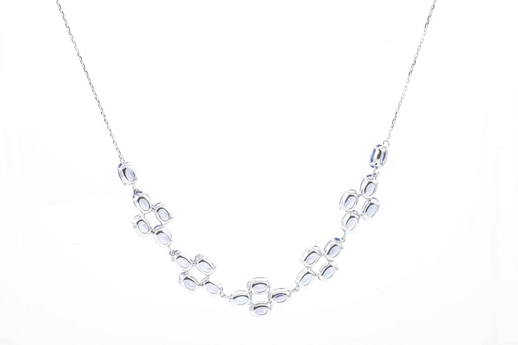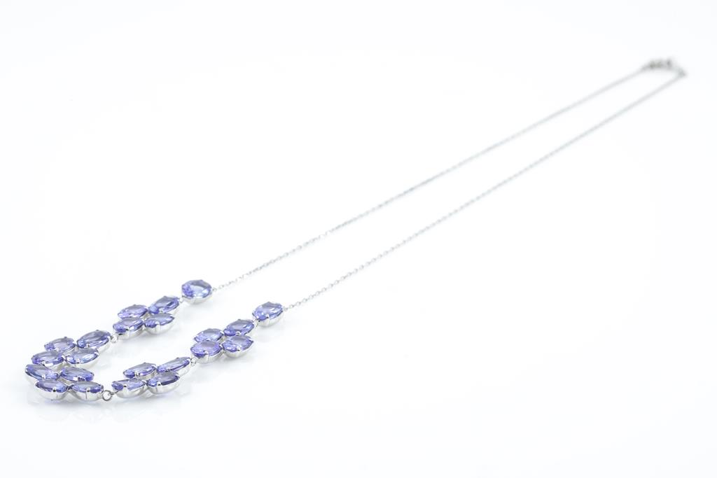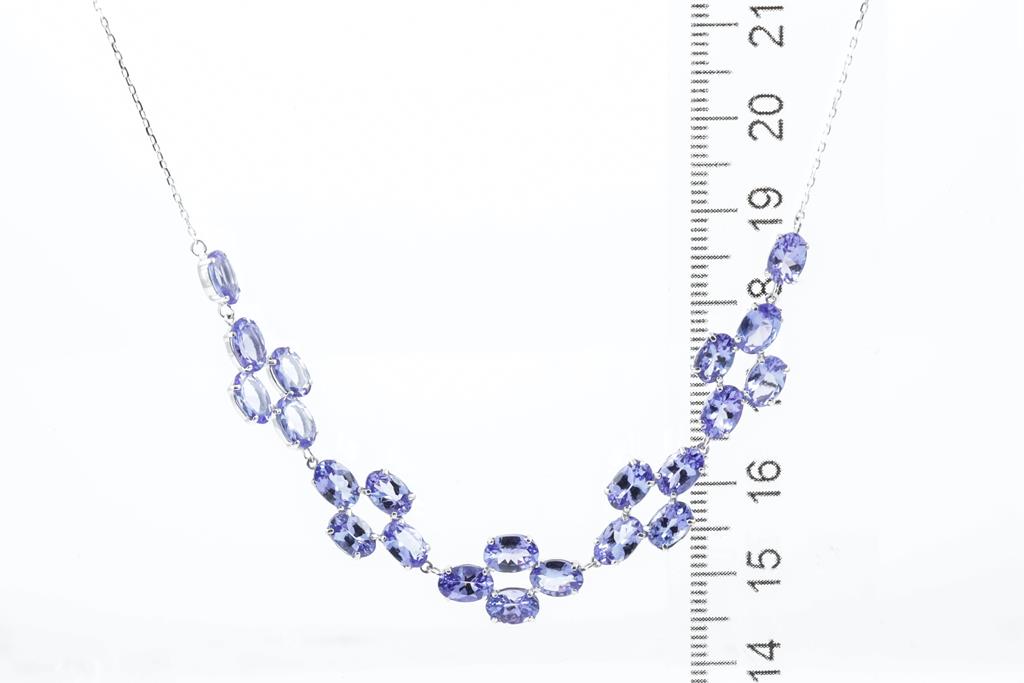 Tanzanite necklace with oval shape Tanzanites totalling 9.09cts. Platinum. Length: 40cm. Weight: 5.3g. (Pre-owned)