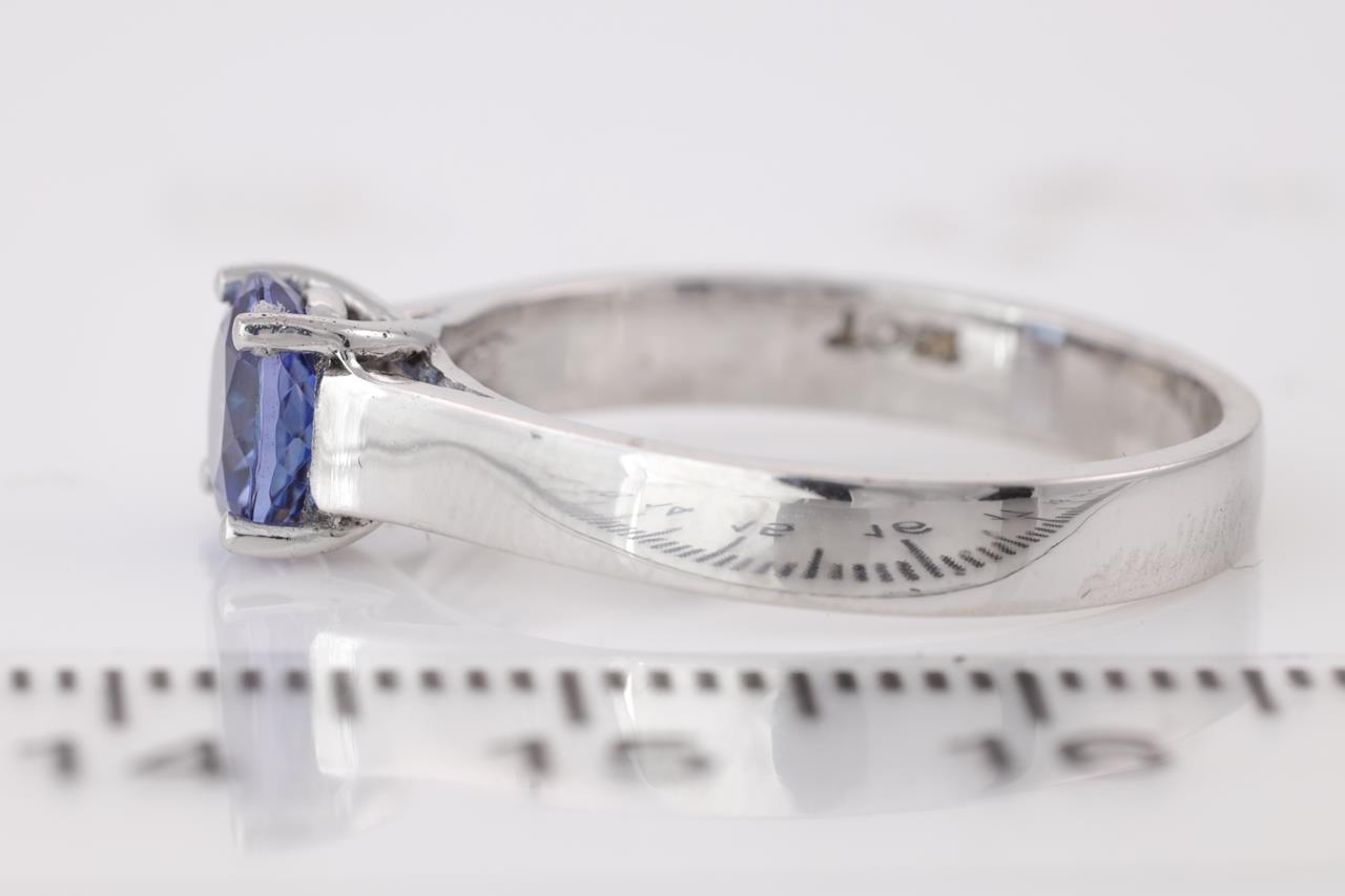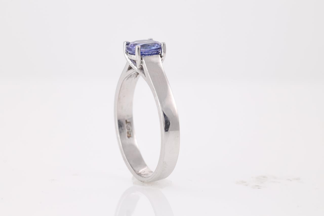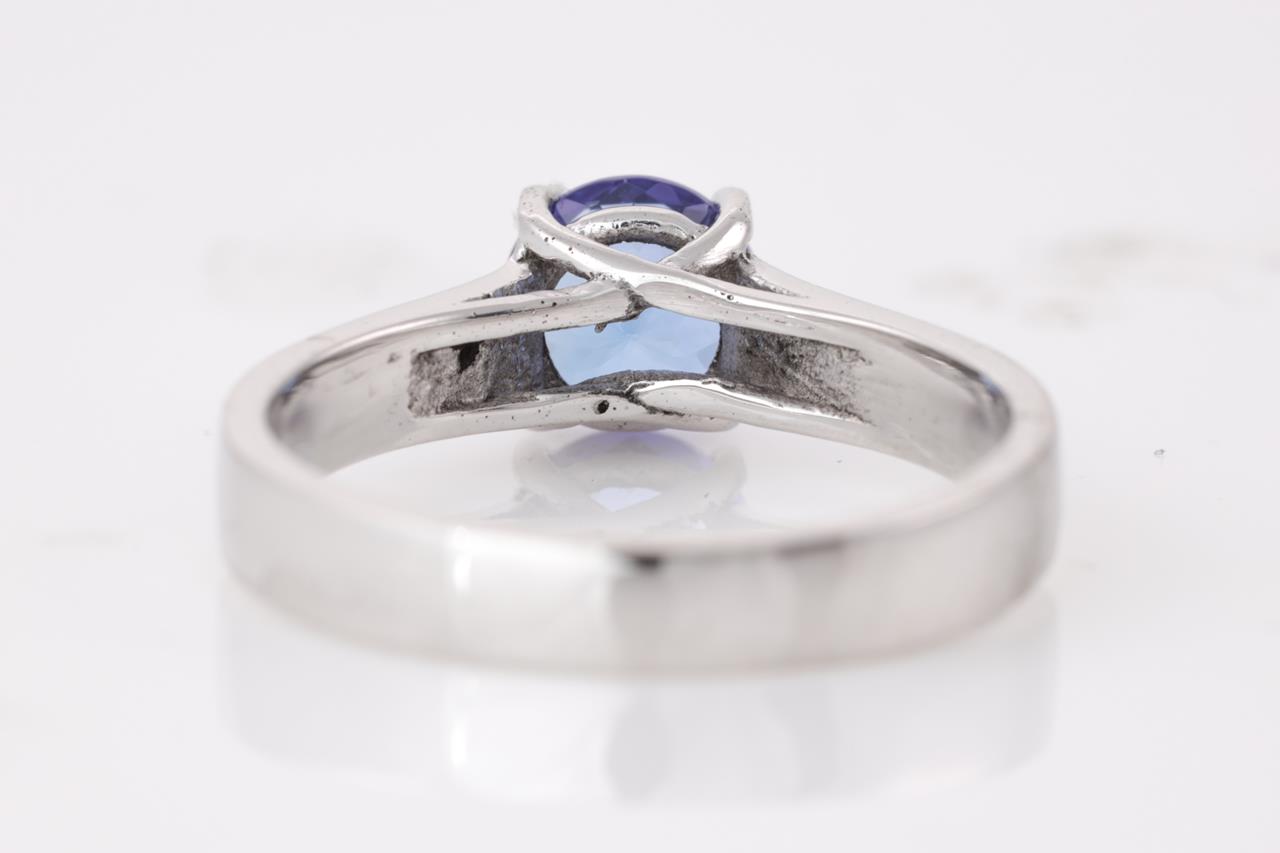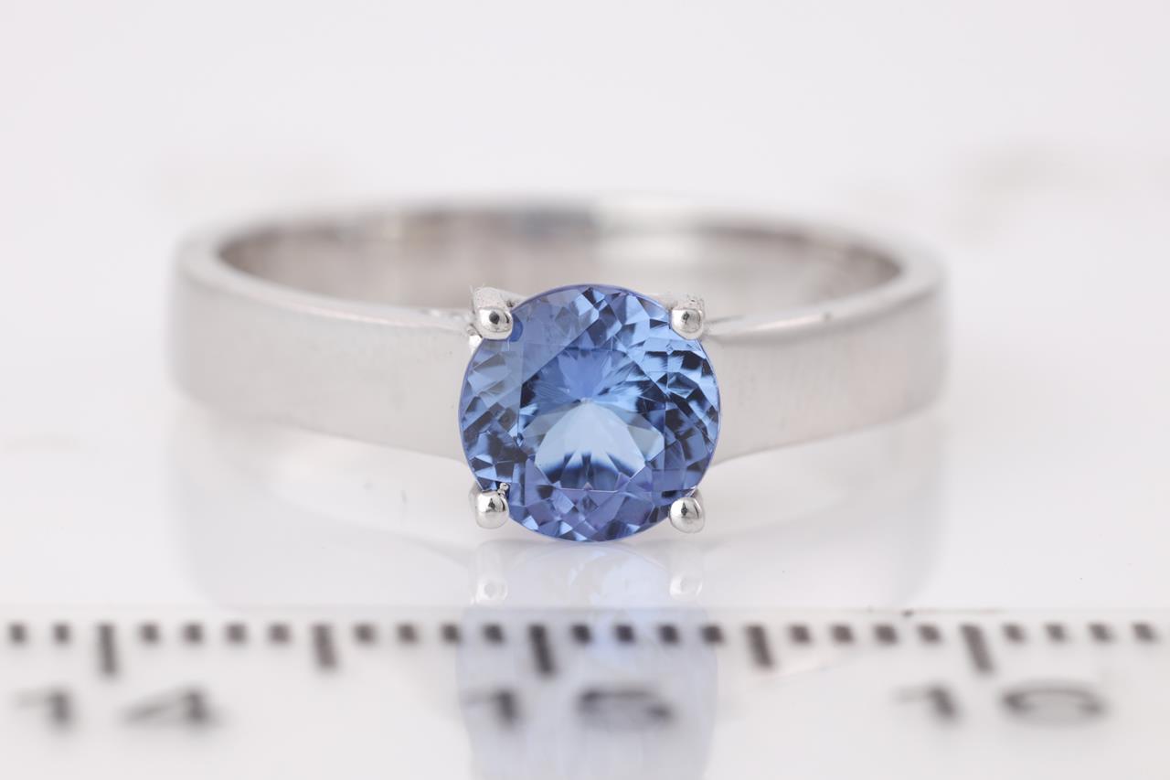 Tanzanite Ring with round Tanzanite of 0.75ct. 18ct white gold Ring size L 1/2. Weight 3.8g. (As New)
