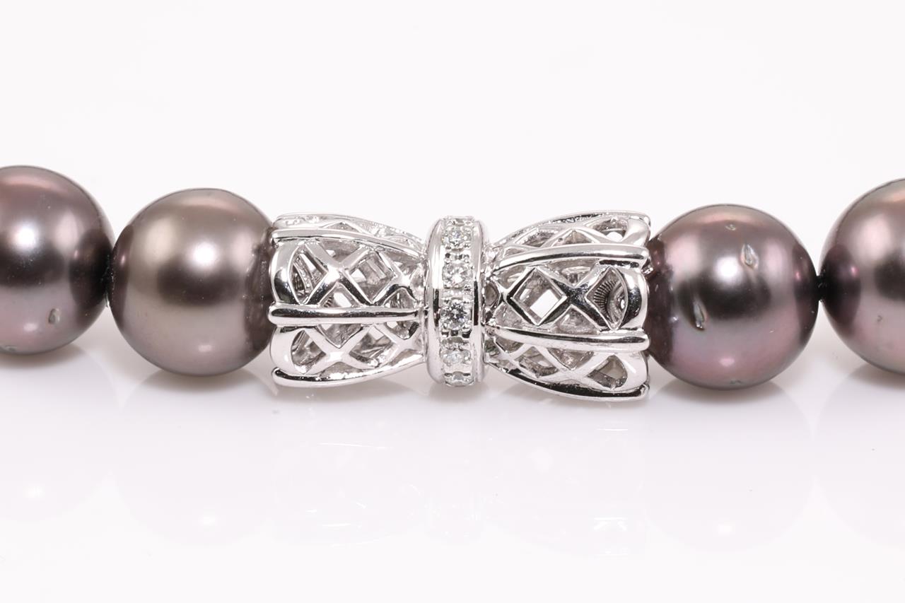 Tasaki Tahitian Pearl Necklace with 41 graduated pearls of 9.2mm-11.8mm. 14ct white gold clasp with Diamonds totalling 0.12cts. Length: 45cm Weight: 72.9g (Pre-owned)