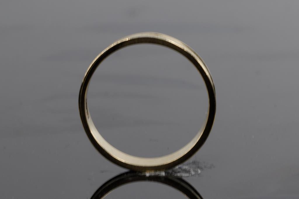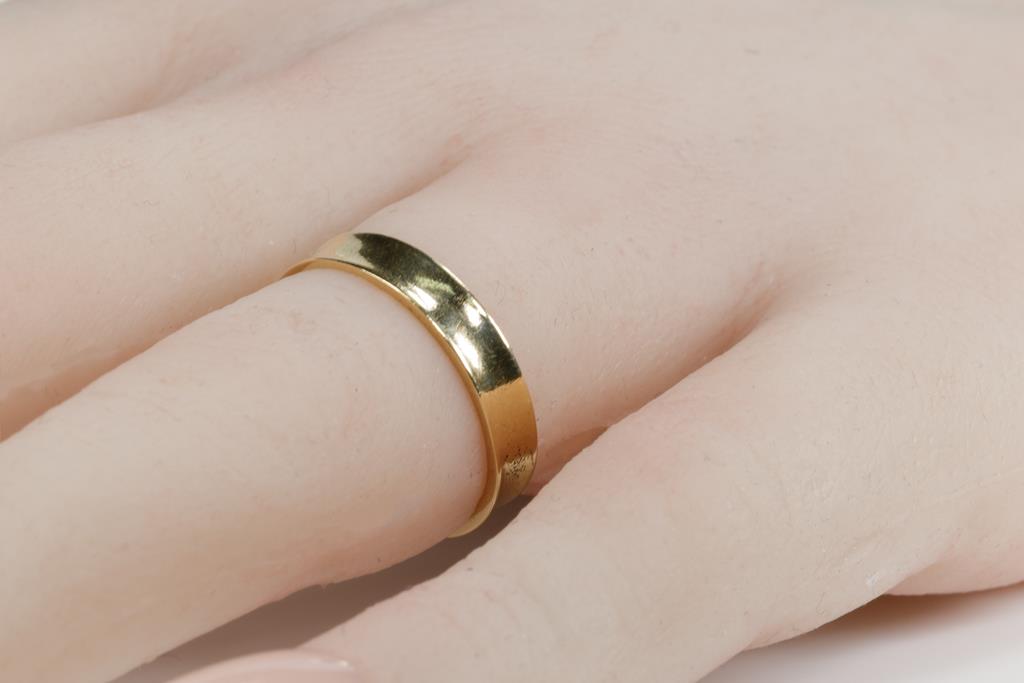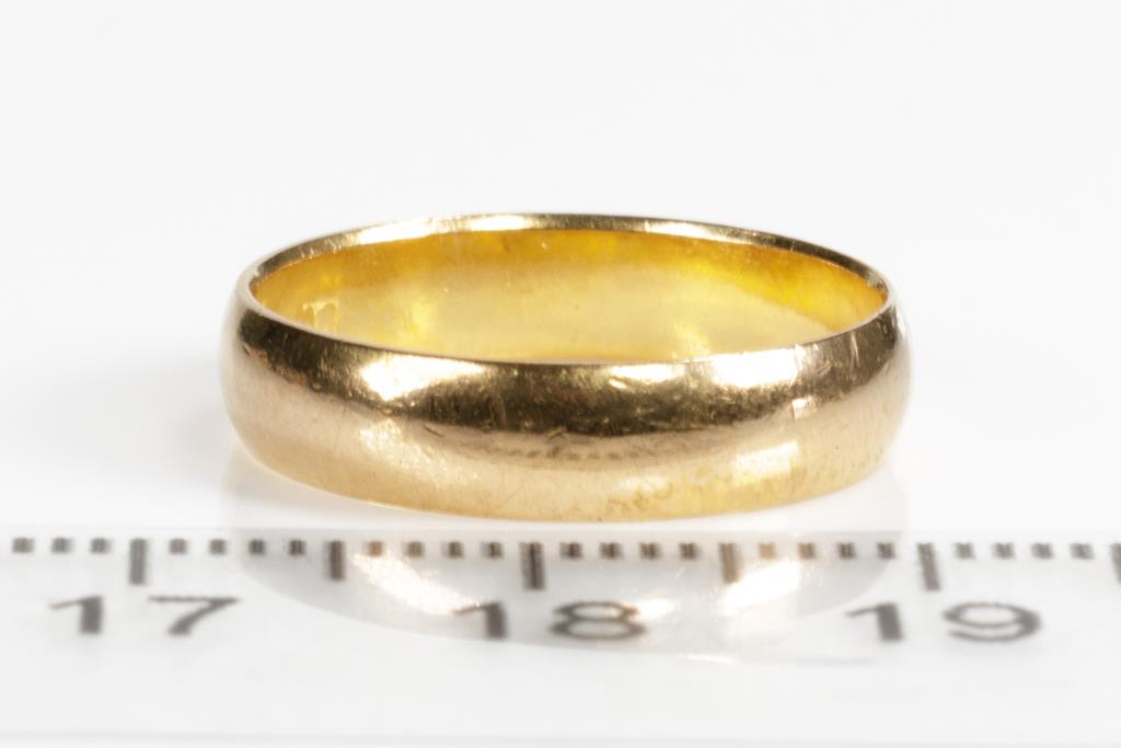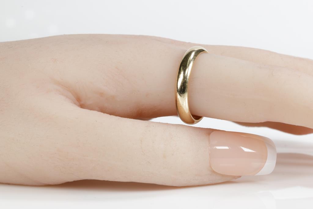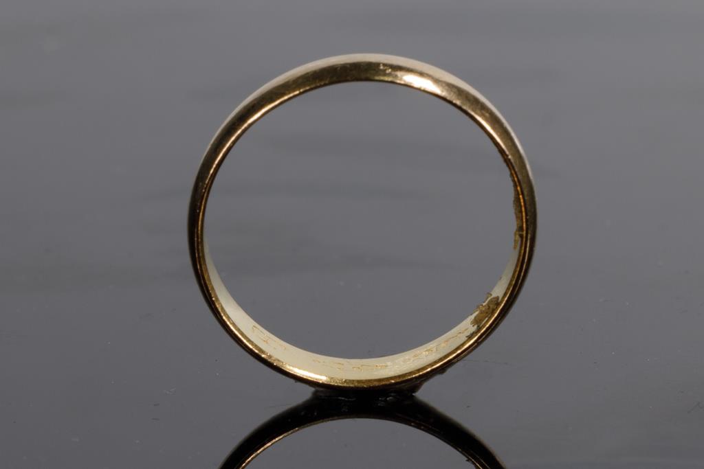 Three Wedding Rings. Plain design. 18ct yellow gold. Ring sizes K 1/2, L, Q 1/2. Combined weight 10.6g. (Pre-owned)