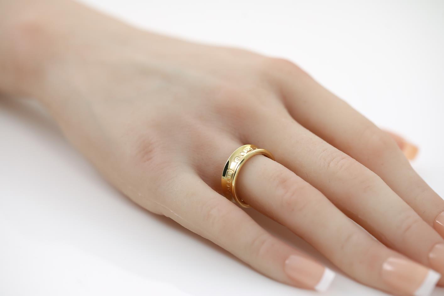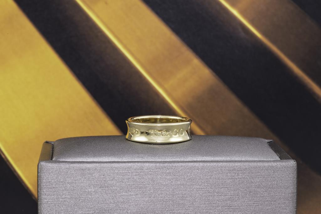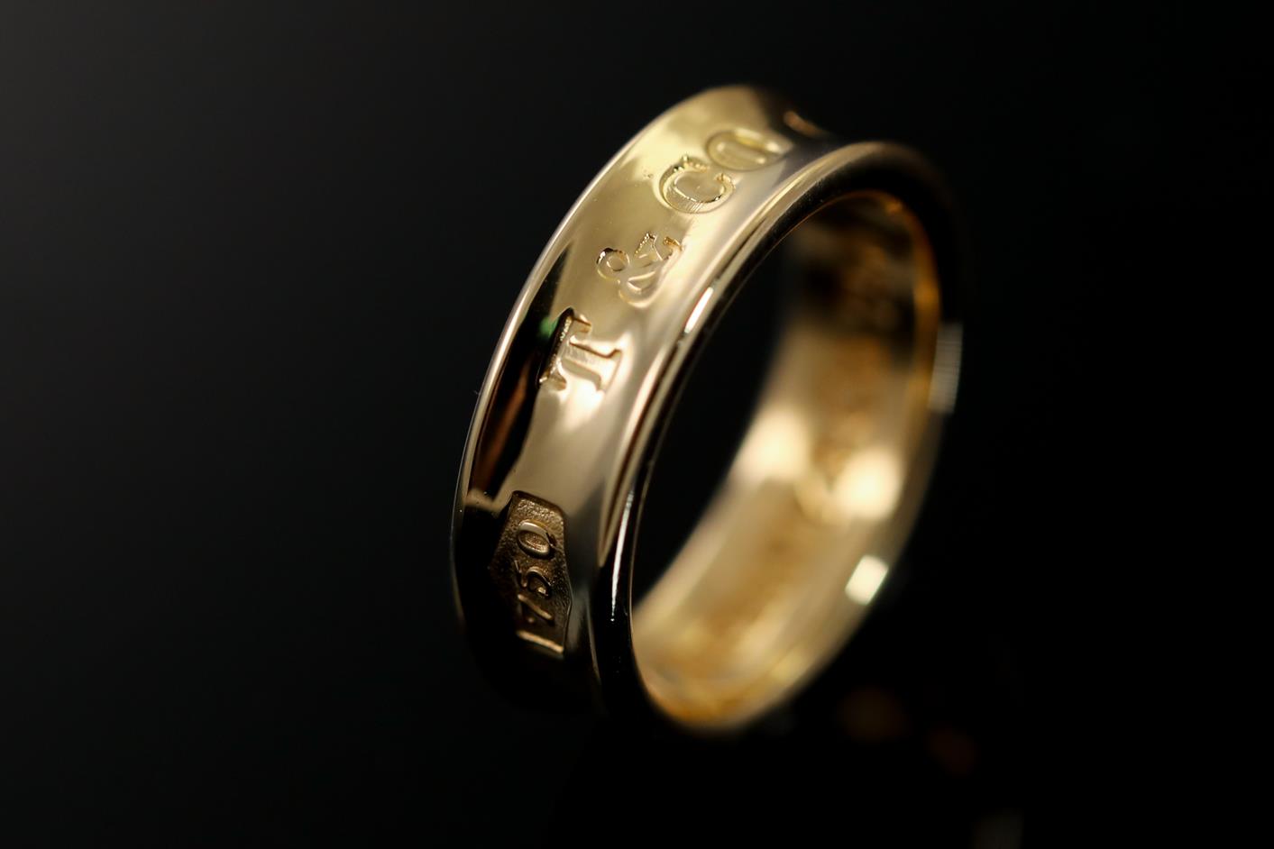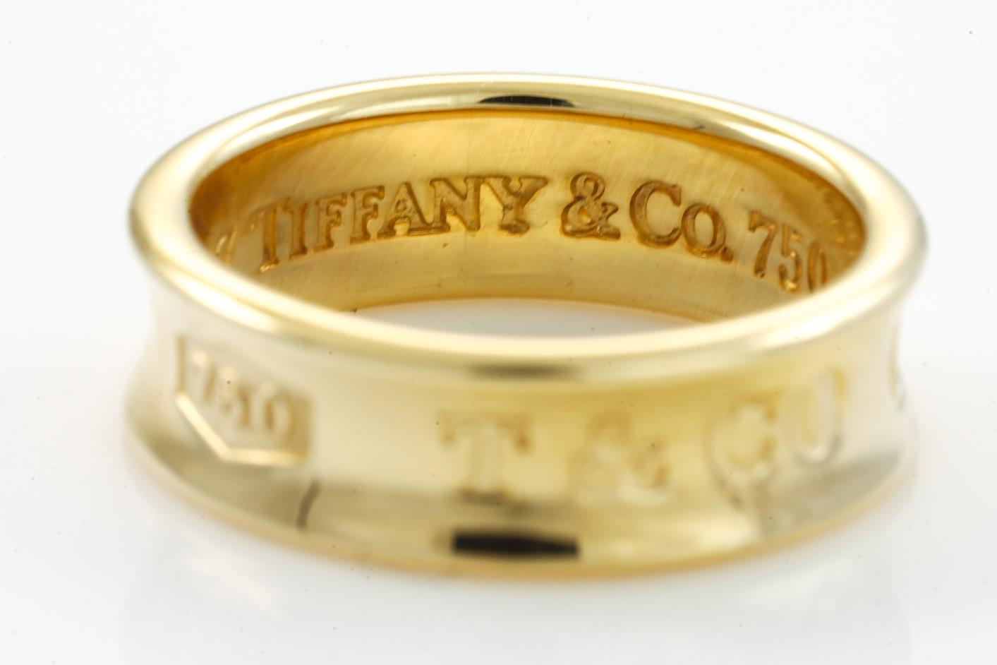 Tiffany & Co 1837 logo ring. 18ct yellow gold. Circa 1997. Ring size K1/2 - ring resizing is not recommended. Weight: 7g. (Pre-owned)
