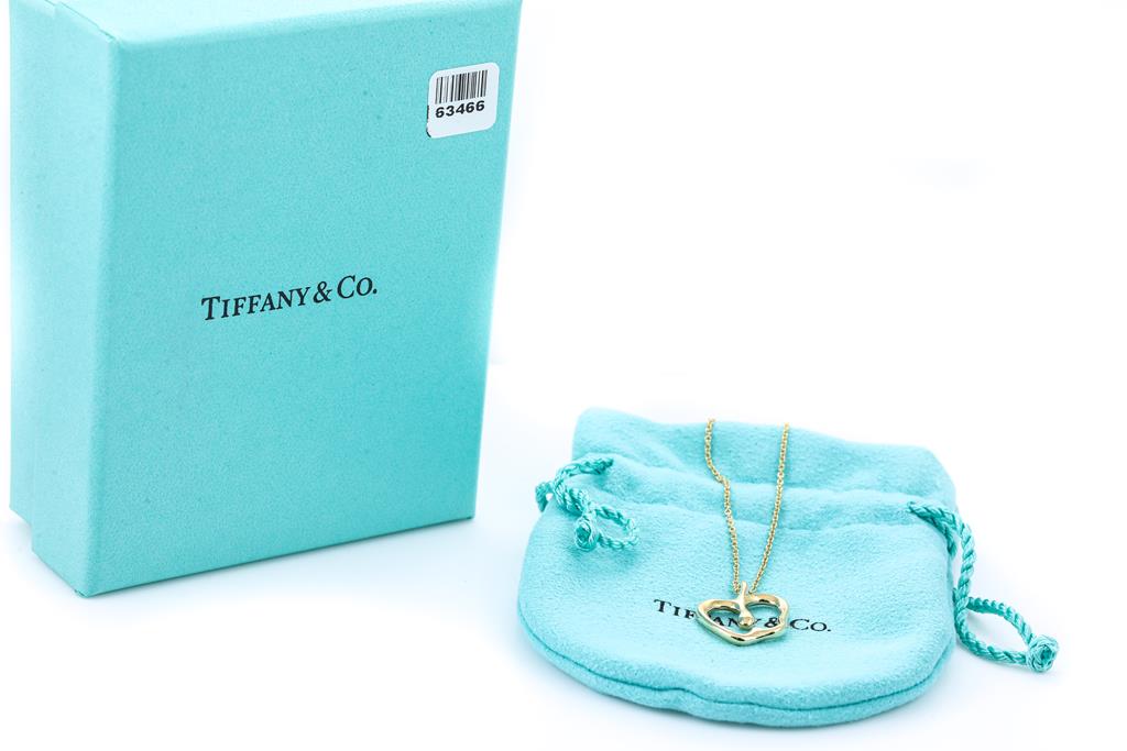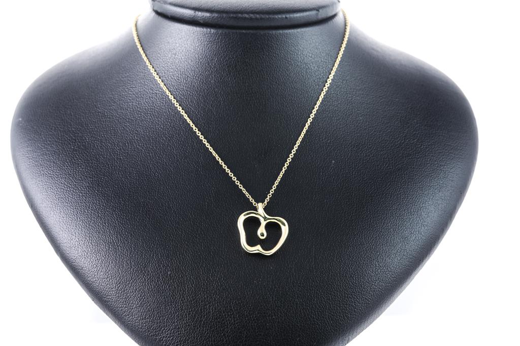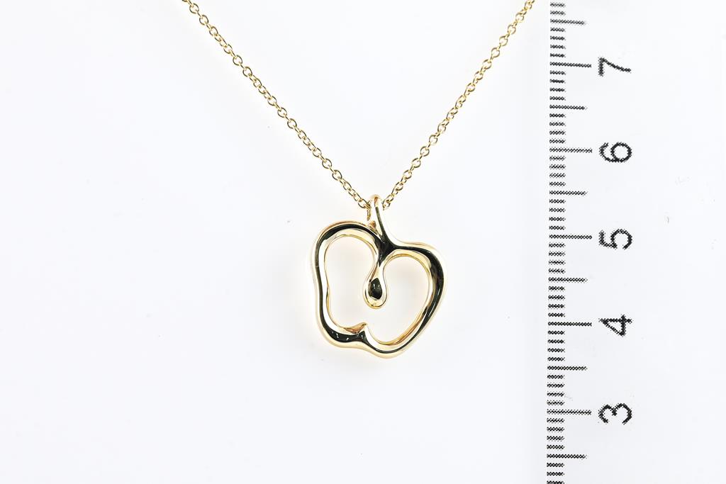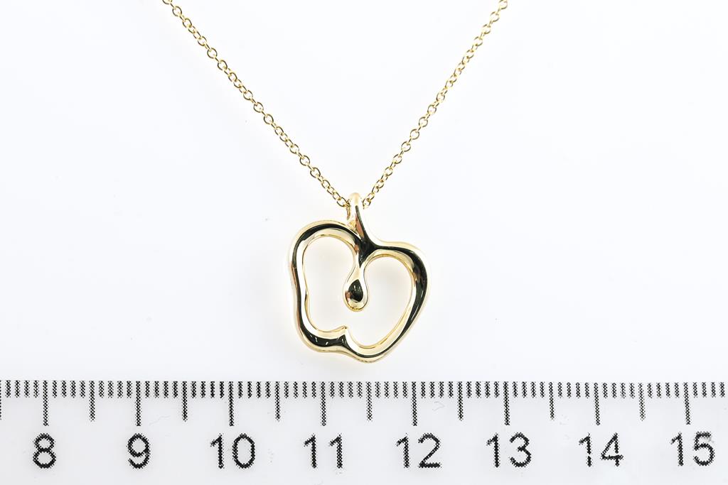 Tiffany & Co Elsa Peretti Apple pendant. Pendant size 6mm x 7.7mm. 18ct yellow gold with 18ct yellow gold 40cm chain. Weight: 4.5g. With Tiffany & Co box. (Pre-owned)