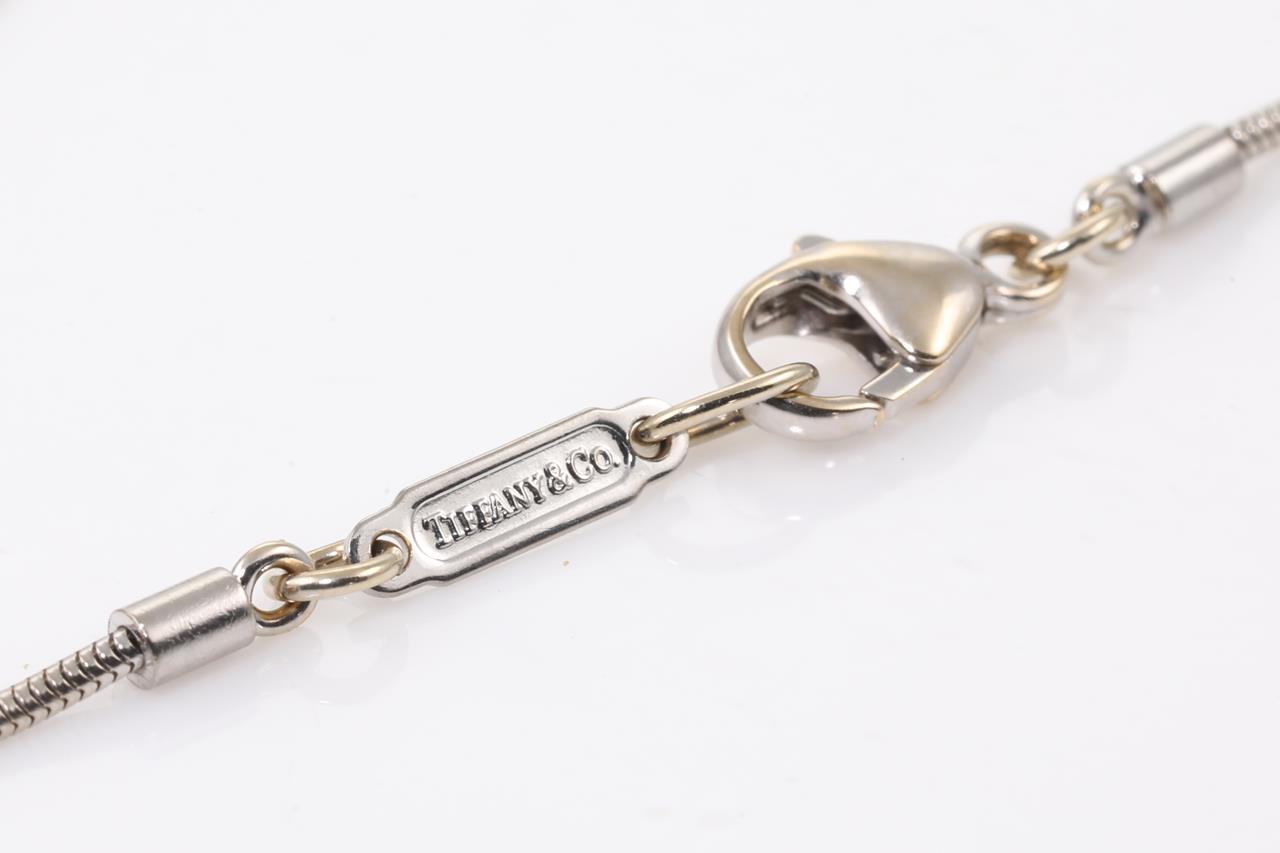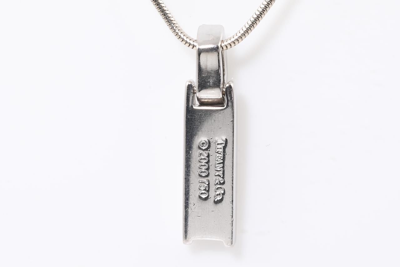 Tiffany & Co Atlas bar pendant with 3 round Diamonds totalling 0.07cts. Circa 2000. 18ct white gold with 41cm chain. Weight: 7.2g. (Pre-owned)