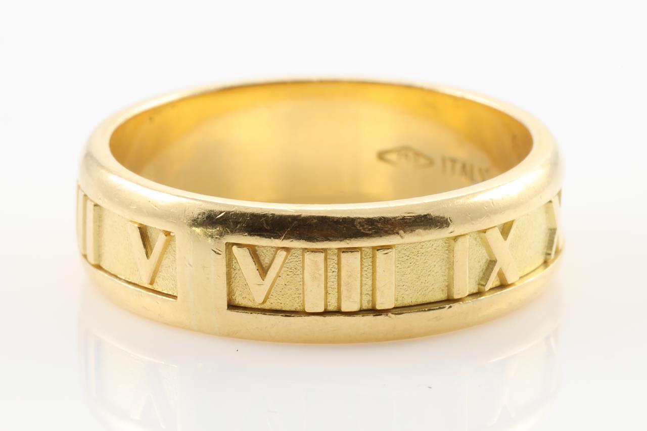 Tiffany & Co Atlas 18ct yellow gold mens ring. Ring size W. Weight: 10.7g. Made in Italy. Circa 1995. (Pre-owned)