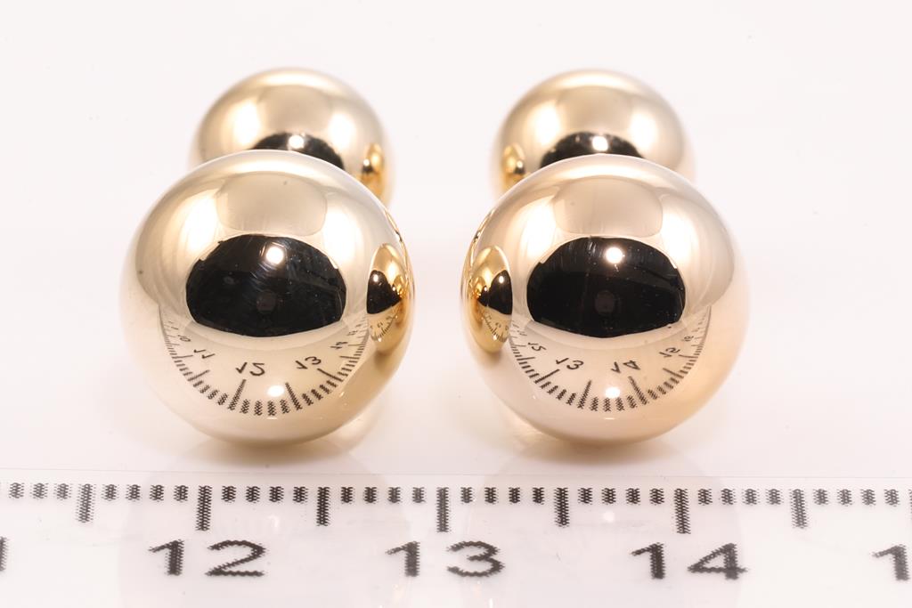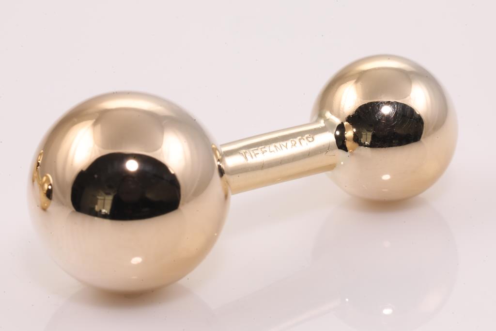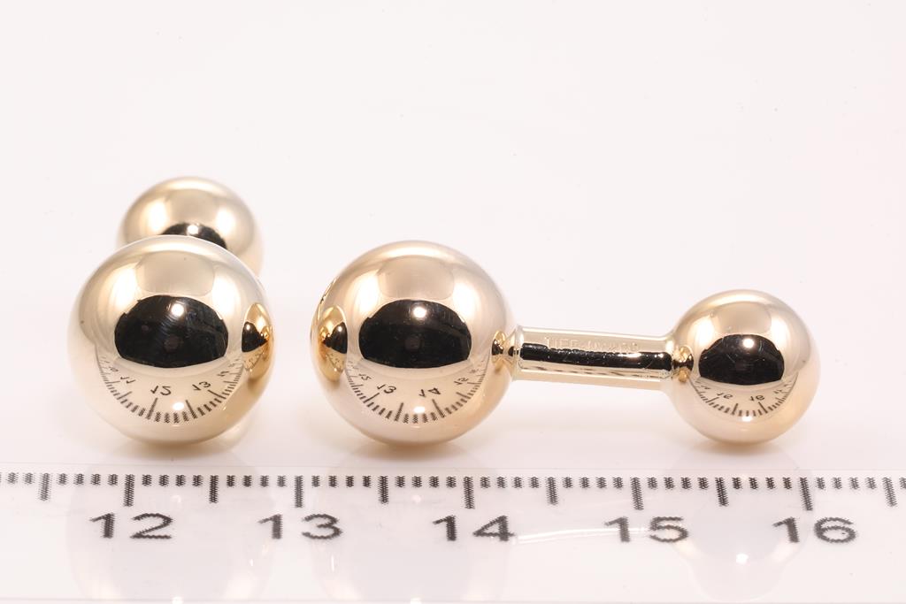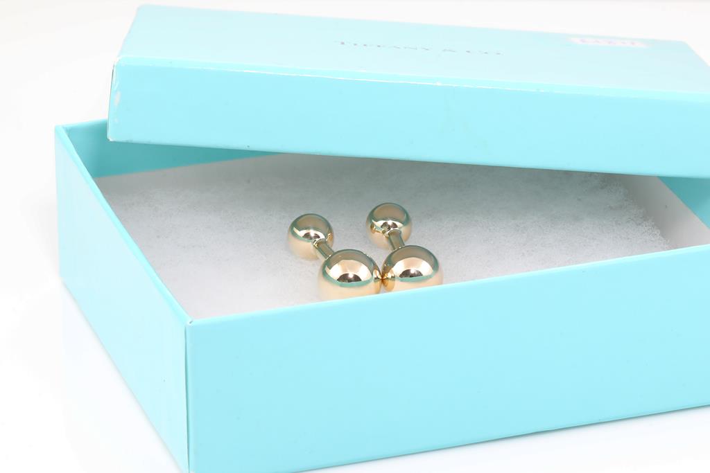 Tiffany & Co Barbell Ball hollow cufflinks. Width: 12mm & 9mm. 14ct yellow gold. Weight: 9.4g. With Tiffany & Co box. (Pre-owned)
