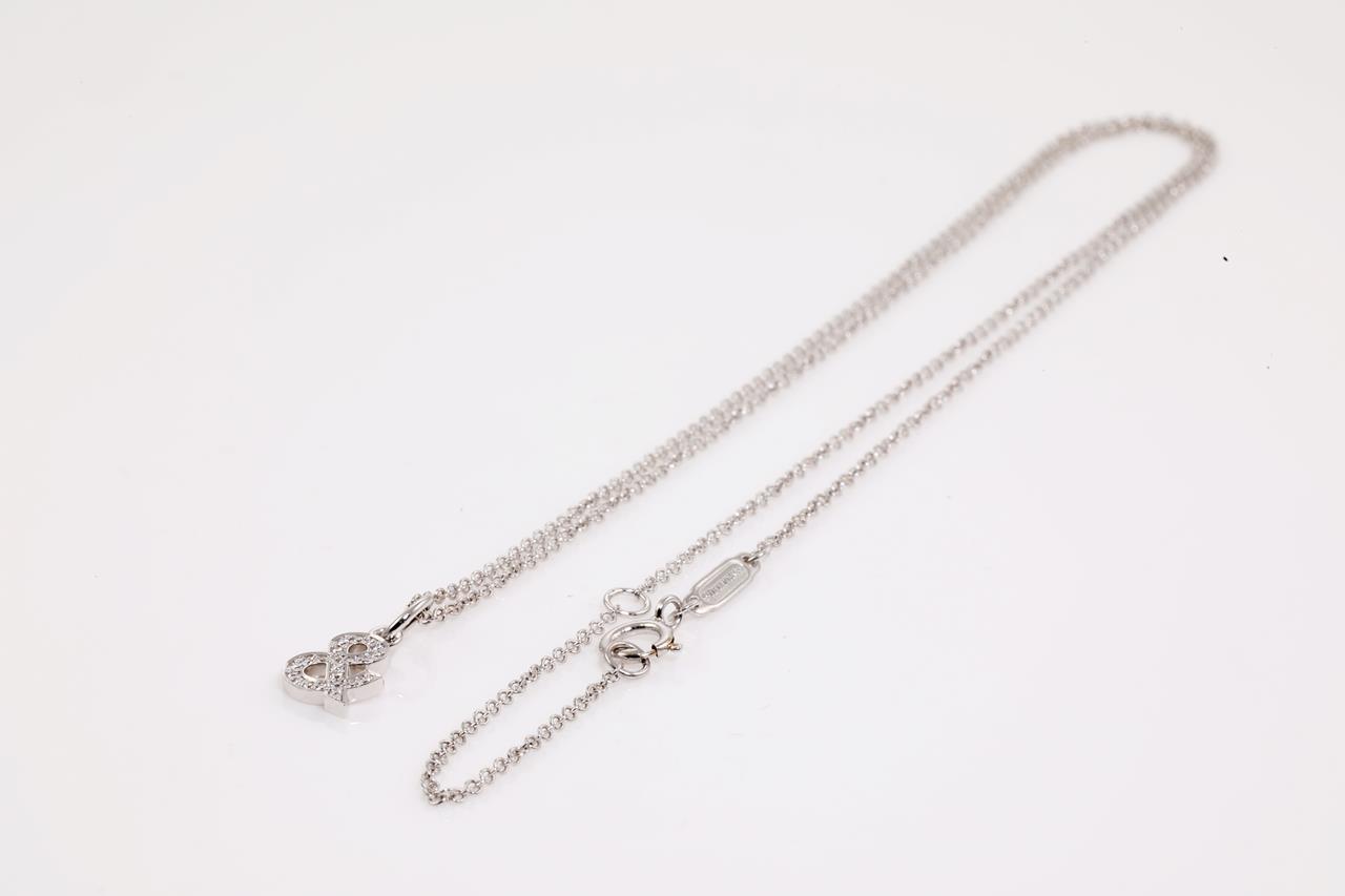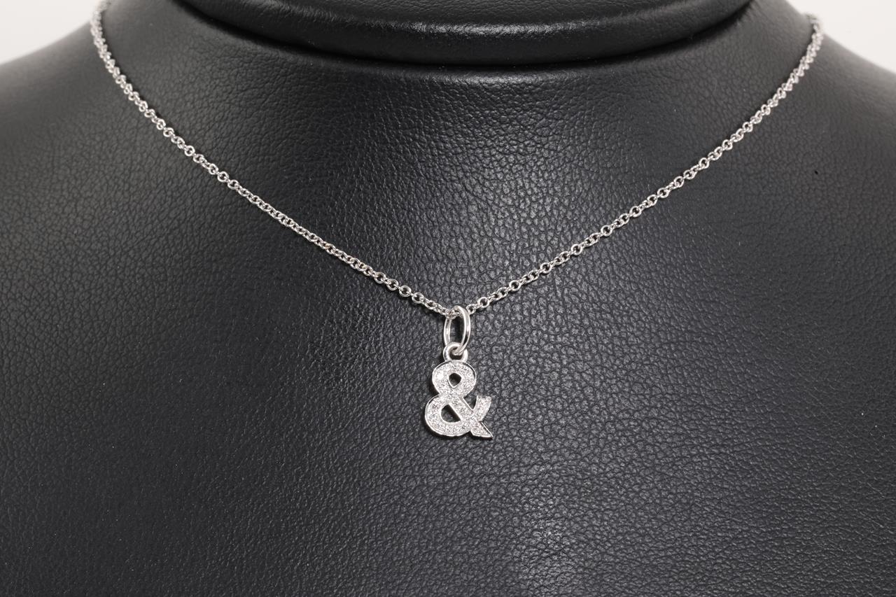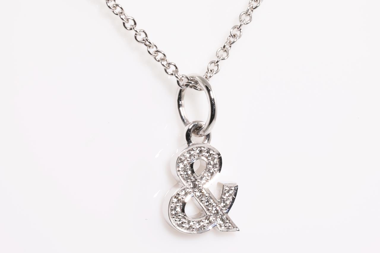 Tiffany & Co medium Ampersand pendant width Diamonds totalling 0.07cts. 18ct white gold with adjustable 45cm chain. Weight: 2.3g. With Tiffany & Co box. (Pre-owned)
