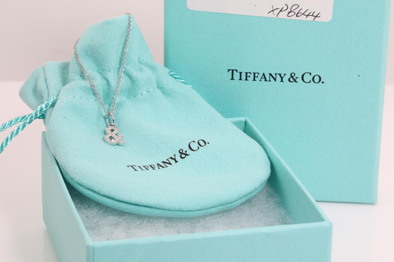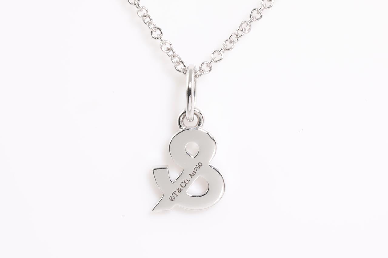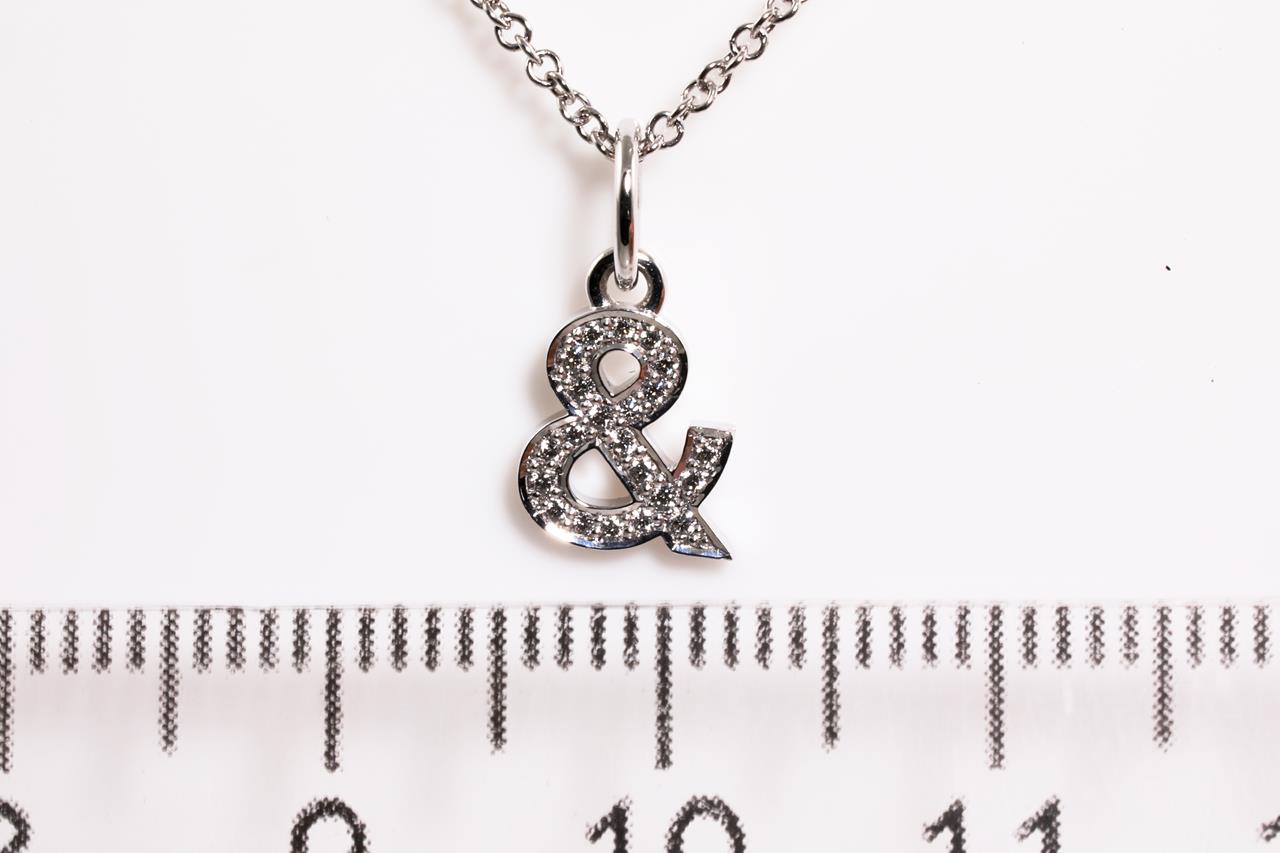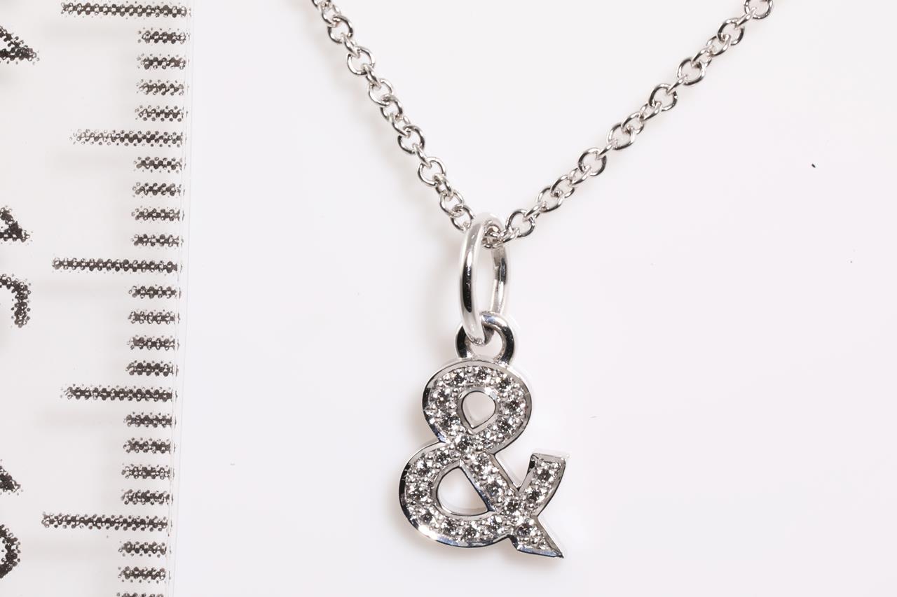 Tiffany & Co medium Ampersand pendant width Diamonds totalling 0.07cts. 18ct white gold with adjustable 45cm chain. Weight: 2.3g. With Tiffany & Co box. (Pre-owned)
