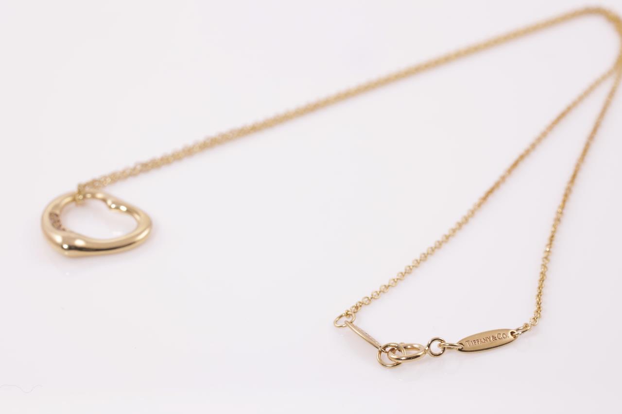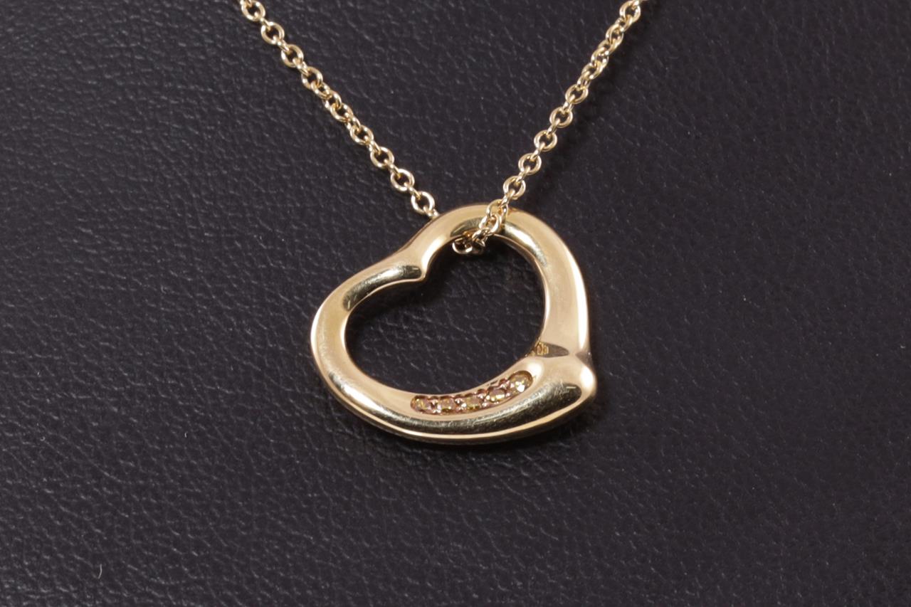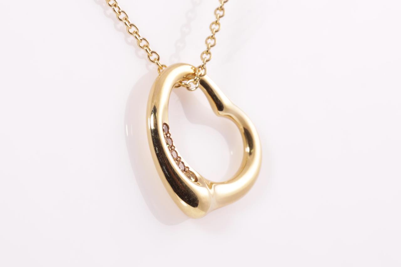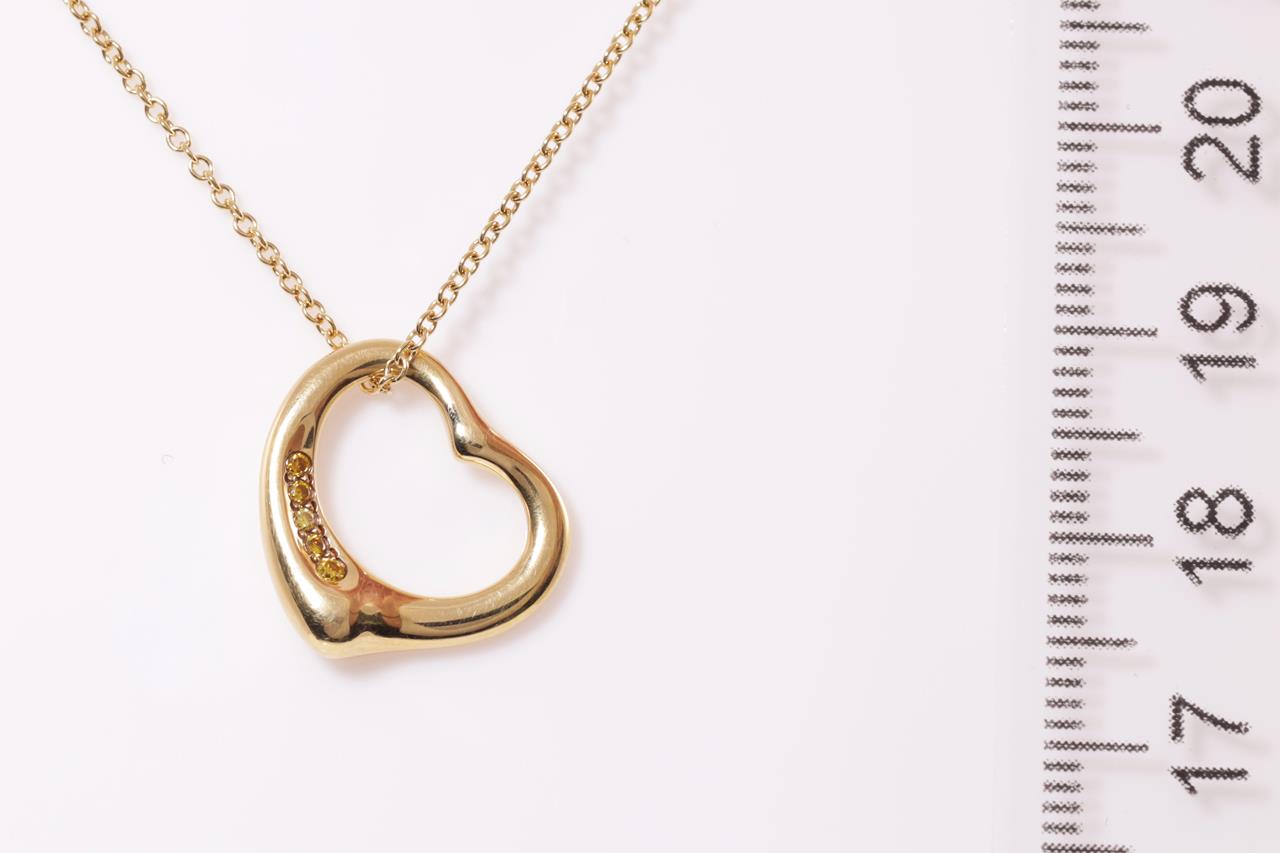 Tiffany & Co Elsa Peretti Open Heart Diamond Pendant with 5 round yellow Diamonds totalling 0.04cts. 16mm wide. 18ct yellow gold with 40cm chain. Weight: 4.1g (Pre-owned)