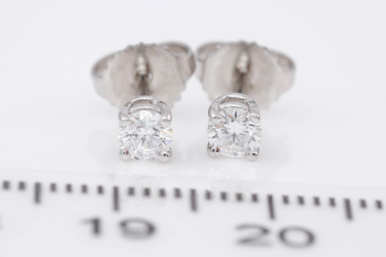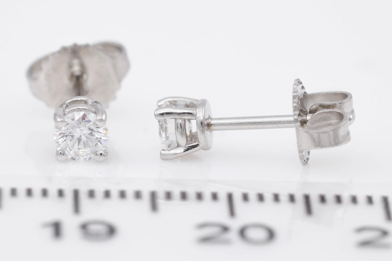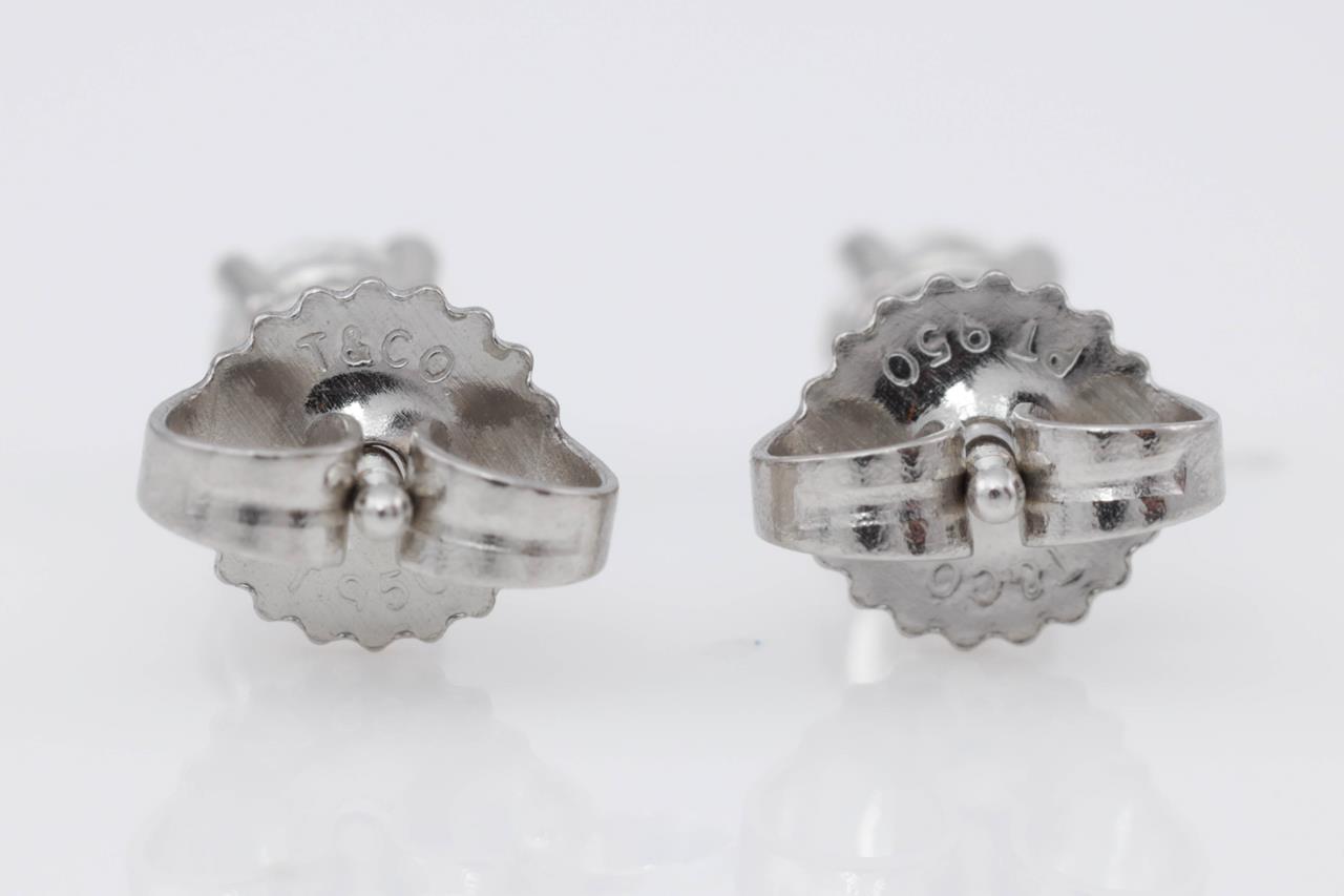 Tiffany & Co solitaire stud earrings with 2 round brilliant cut Diamonds totalling approximately 0.36cts (Estimated grading: F VS). Platinum. Weight: 1.4g. (Pre-owned)