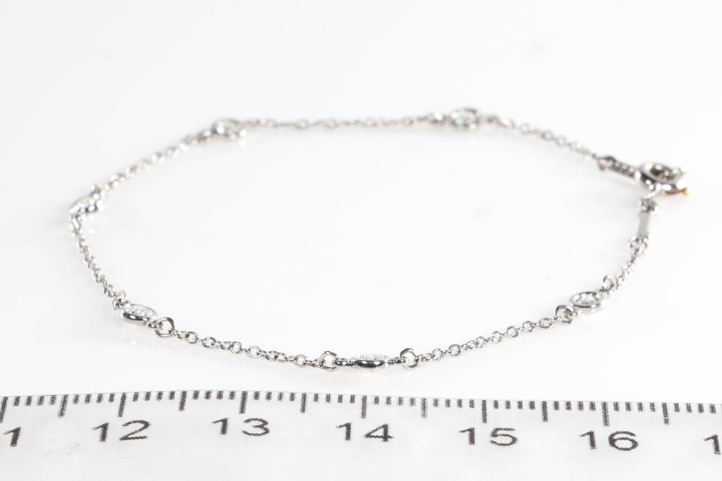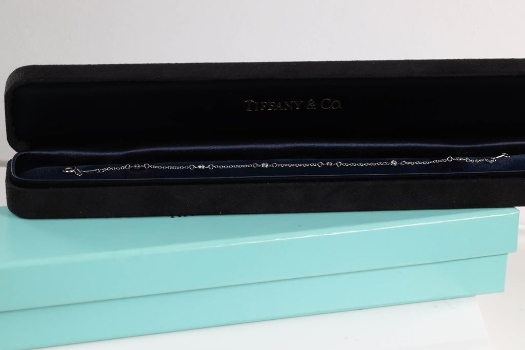 Tiffany & Co Elsa Peretti Diamonds by the Yard bracelet with 6 round Diamonds totalling 0.30cts (Estimated grading: F VS). Platinum. Length: 17.5cm. Weight: 1.8g. With Tiffany & Co box. (Pre-owned)