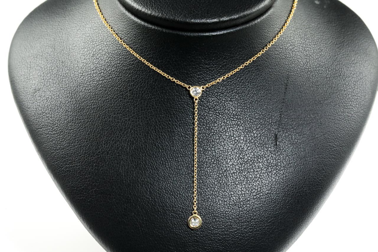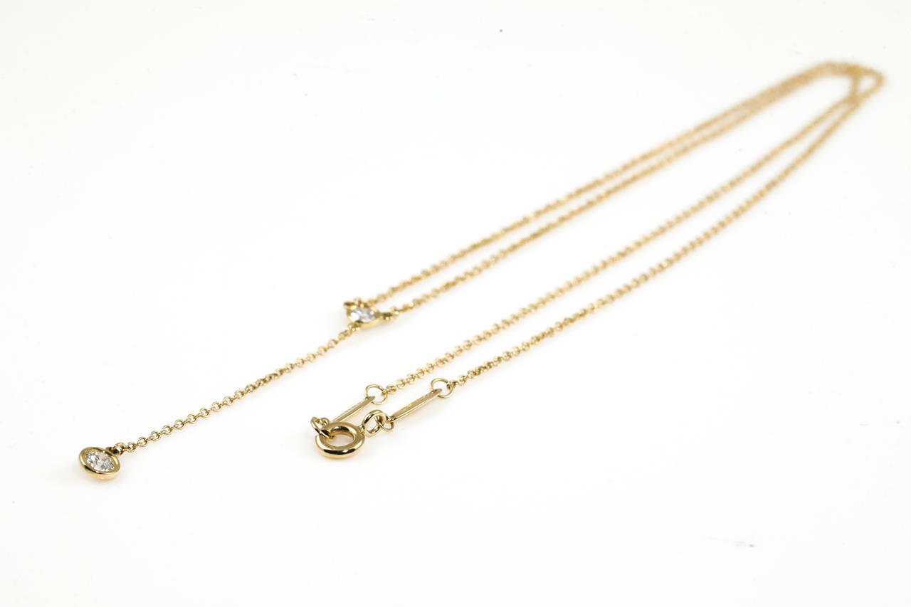 Tiffany & Co Elsa Peretti Diamonds by the Yard Necklace with 2 round Diamonds totalling 0.19cts. 18ct yellow gold. Length: 40cm. Weight: 2.2g (Pre-owned)