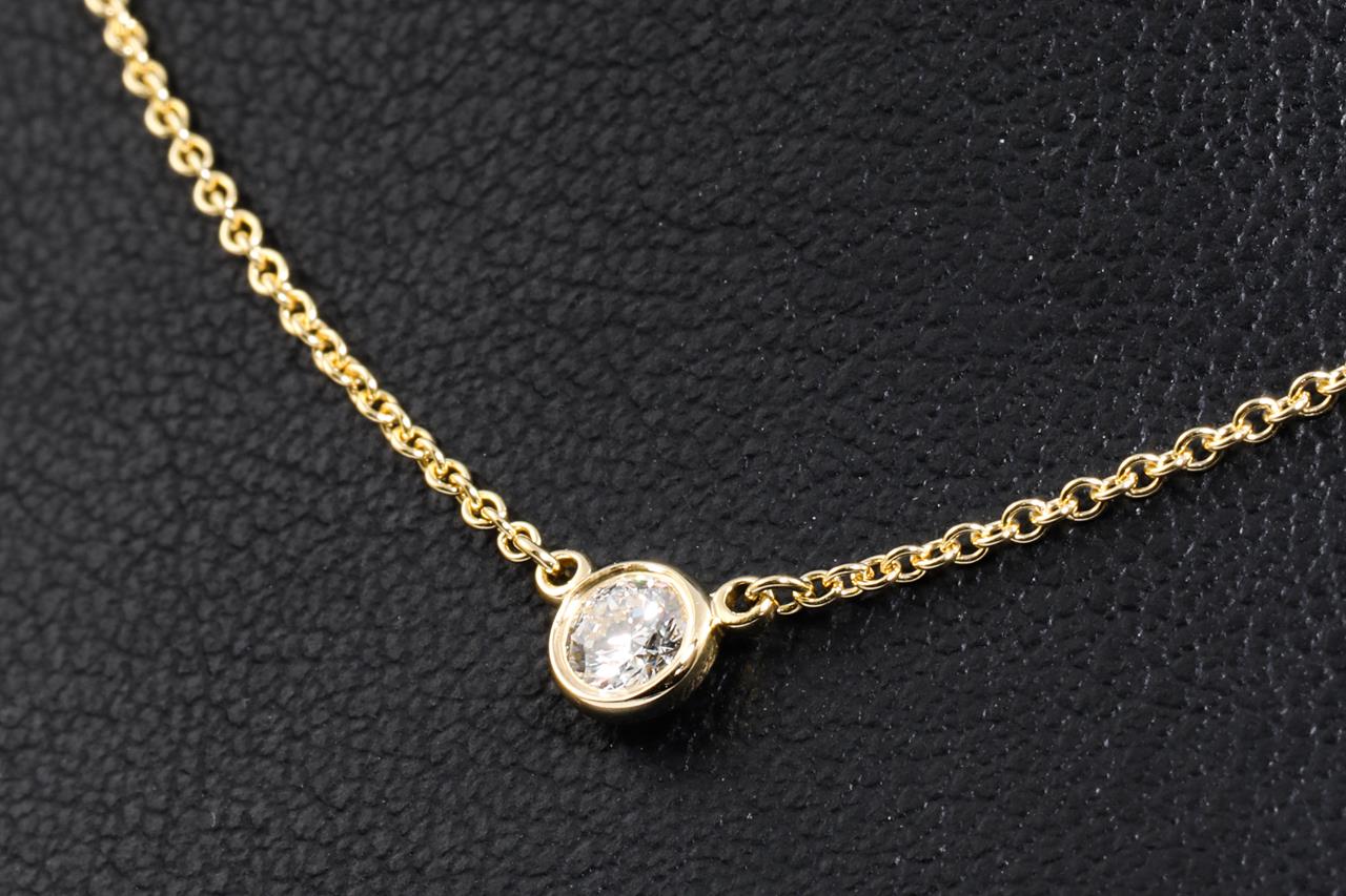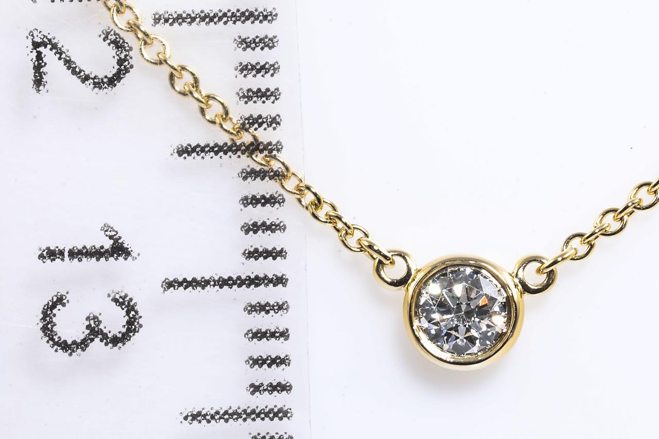 Tiffany & Co Elsa Peretti Diamonds By The Yard single Diamond pendant with a round Diamond of 0.17ct. 18ct yellow gold. Length: 40cm Weight: 2g (Pre-owned)