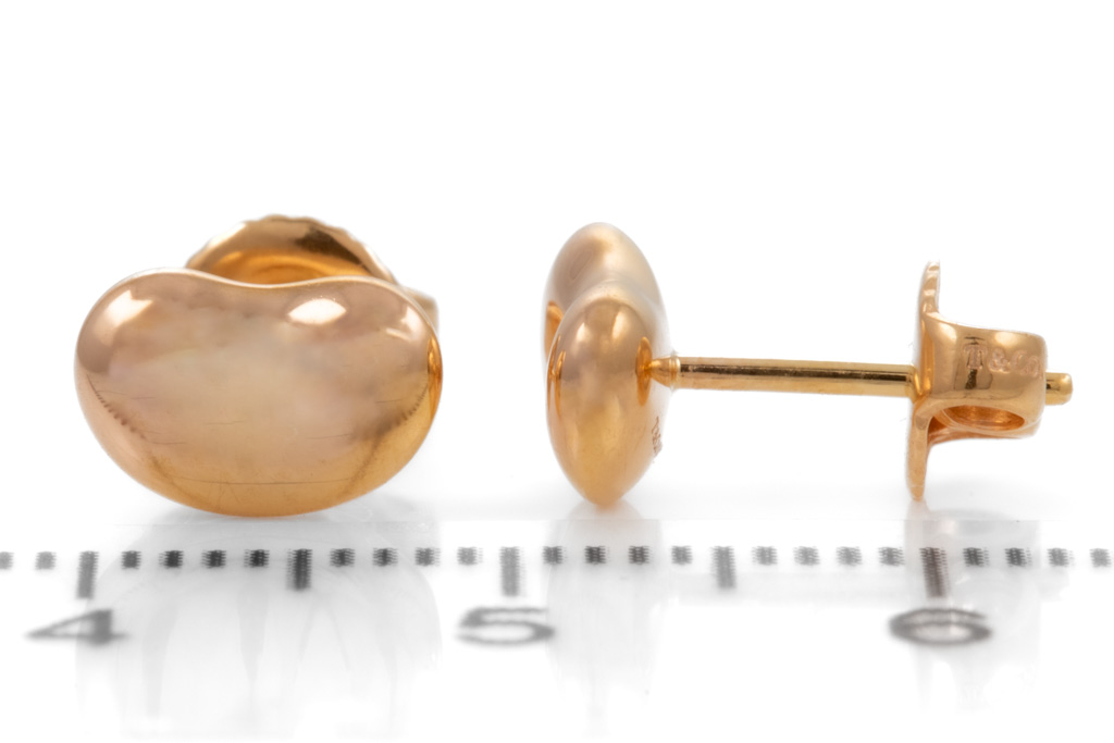 Tiffany & Co Elsa Peretti Bean design earrings. 18ct rose gold. Made in Spain. Weight: 3.5g. Motif width: 9mm. With Tiffany & Co box. (Pre-owned)