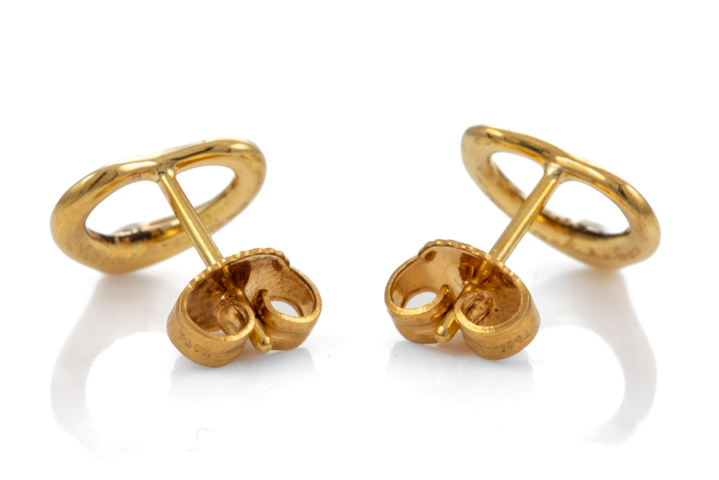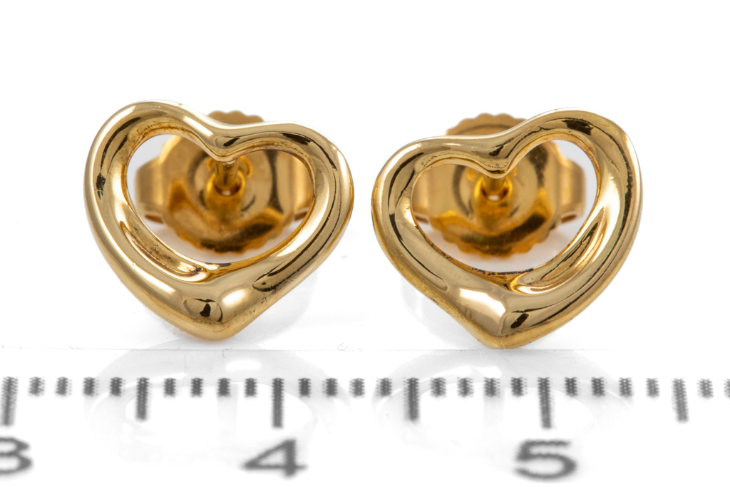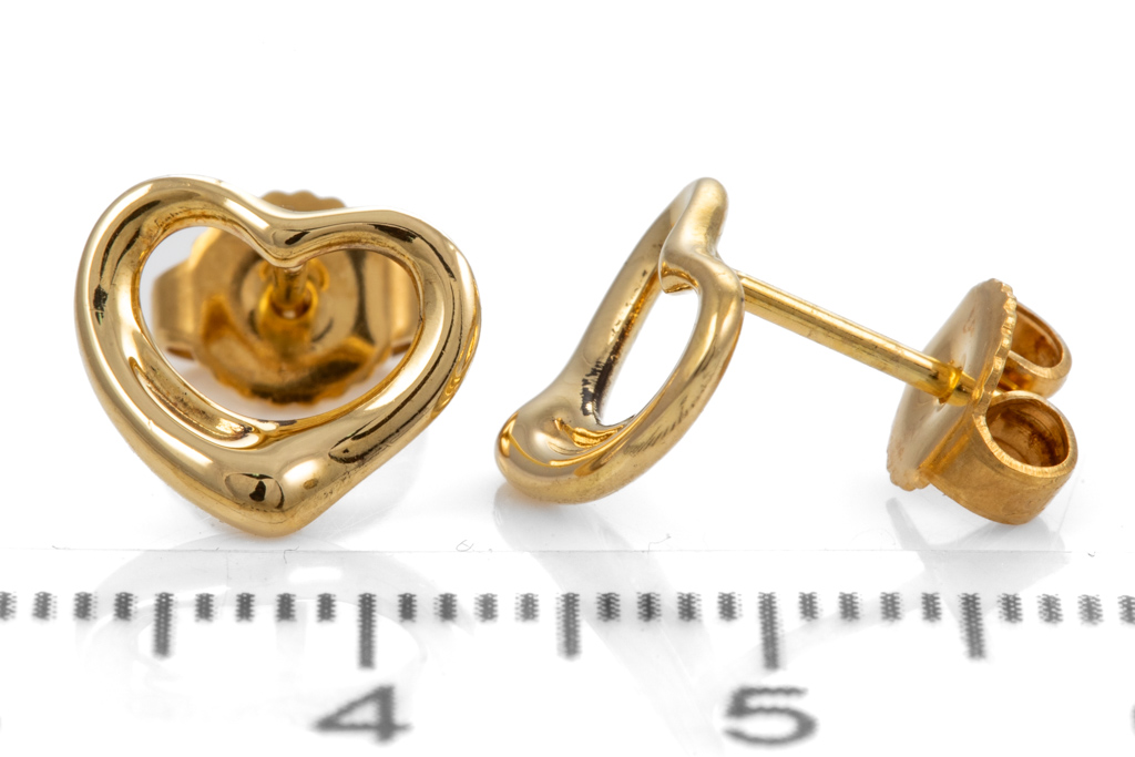 Tiffany & Co Elsa Peretti Open Heart stud earrings. 18ct yellow gold. Motif width: 11mm. Made in Span. Weight: 2.3g. (Pre-owned)