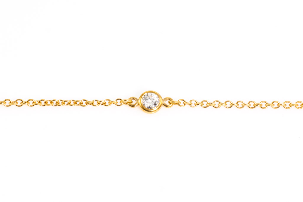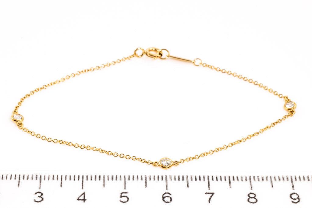Tiffany & Co. Elsa Peretti Diamond by the Yards bracelet with 3 round Diamonds totalling 0.15cts. 18ct yellow gold. Length: 18cm. Weight: 1.1g (Pre-owned)