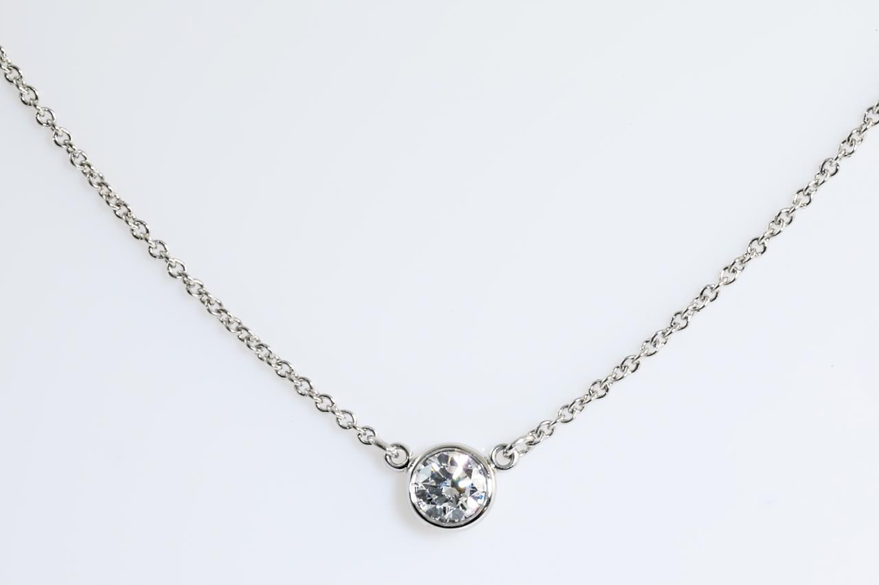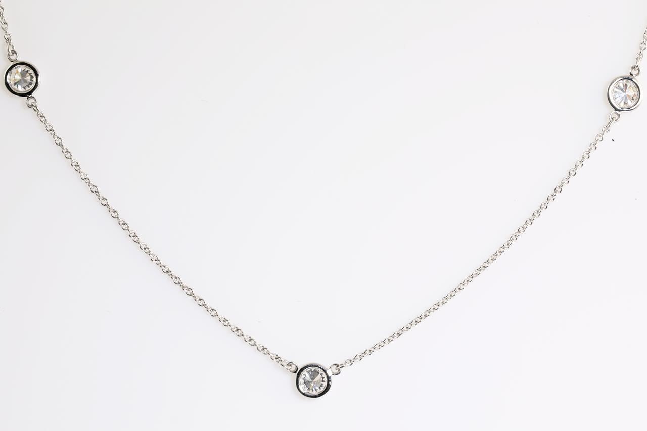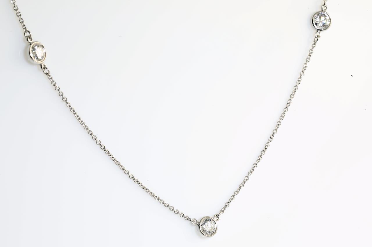 Tiffany & Co Elsa Perreti By The Yard Diamond necklace with round Diamonds totalling approximately 0.70cts (Estimated grading: G VS). Platinum with platinum 40cm chain. Weight: 2.9g (Pre-owned)