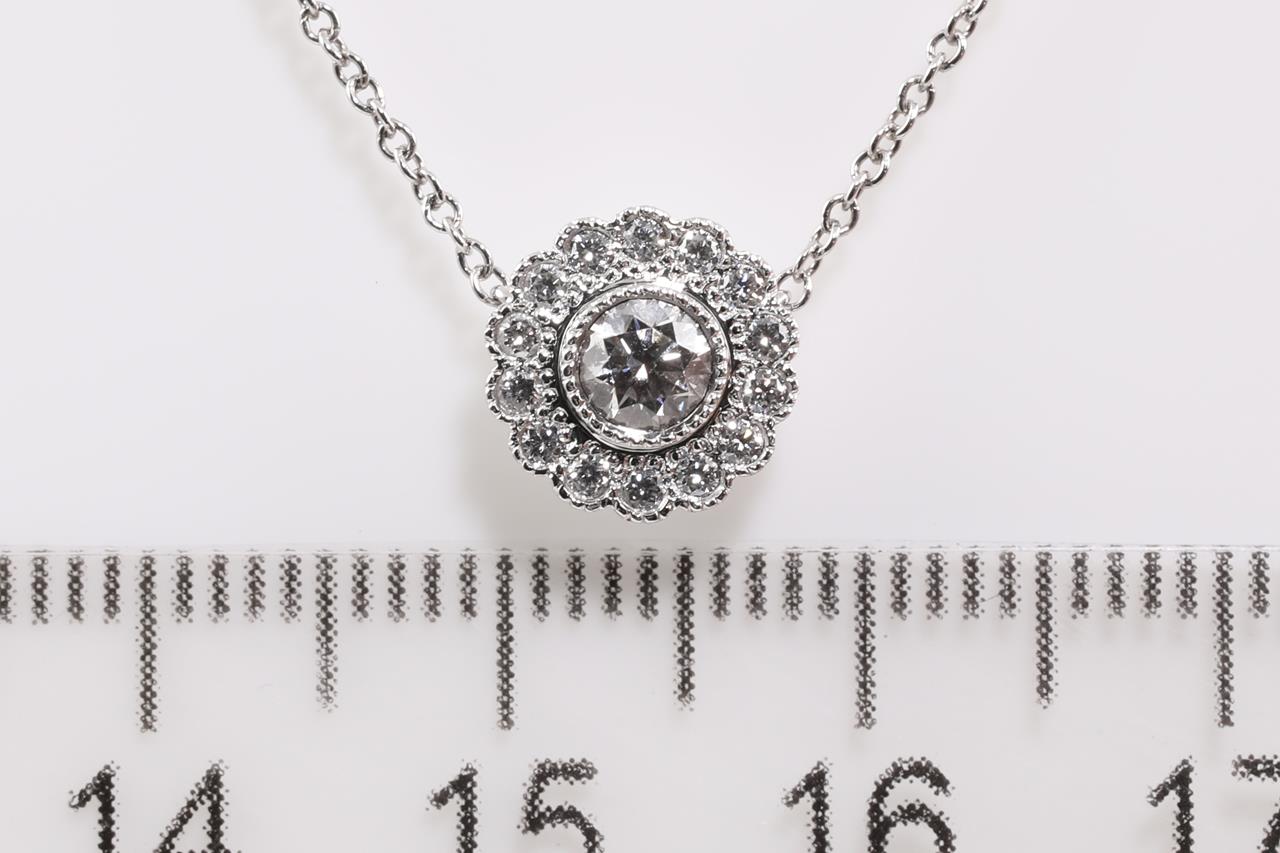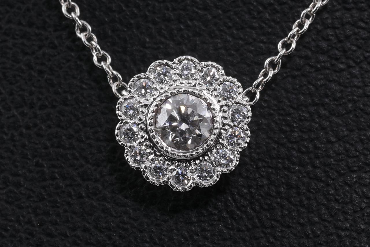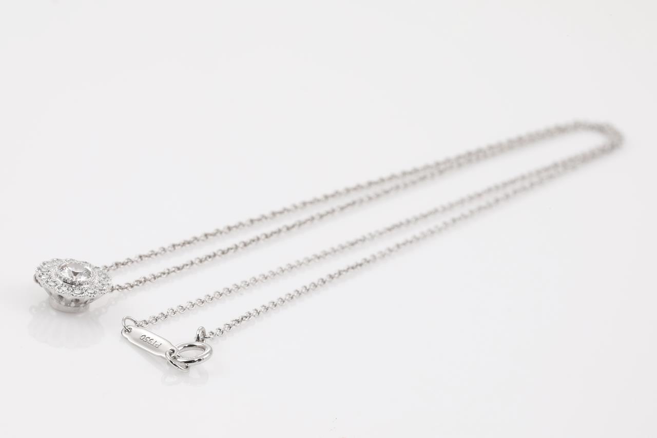 Tiffany & Co Enchantment Flower pendant with round Diamonds totalling approximately 0.25cts (Estimated grading: F VS). Platinum with attached chain. Length: 41cm. Weight: 3.6g. (Pre-owned)