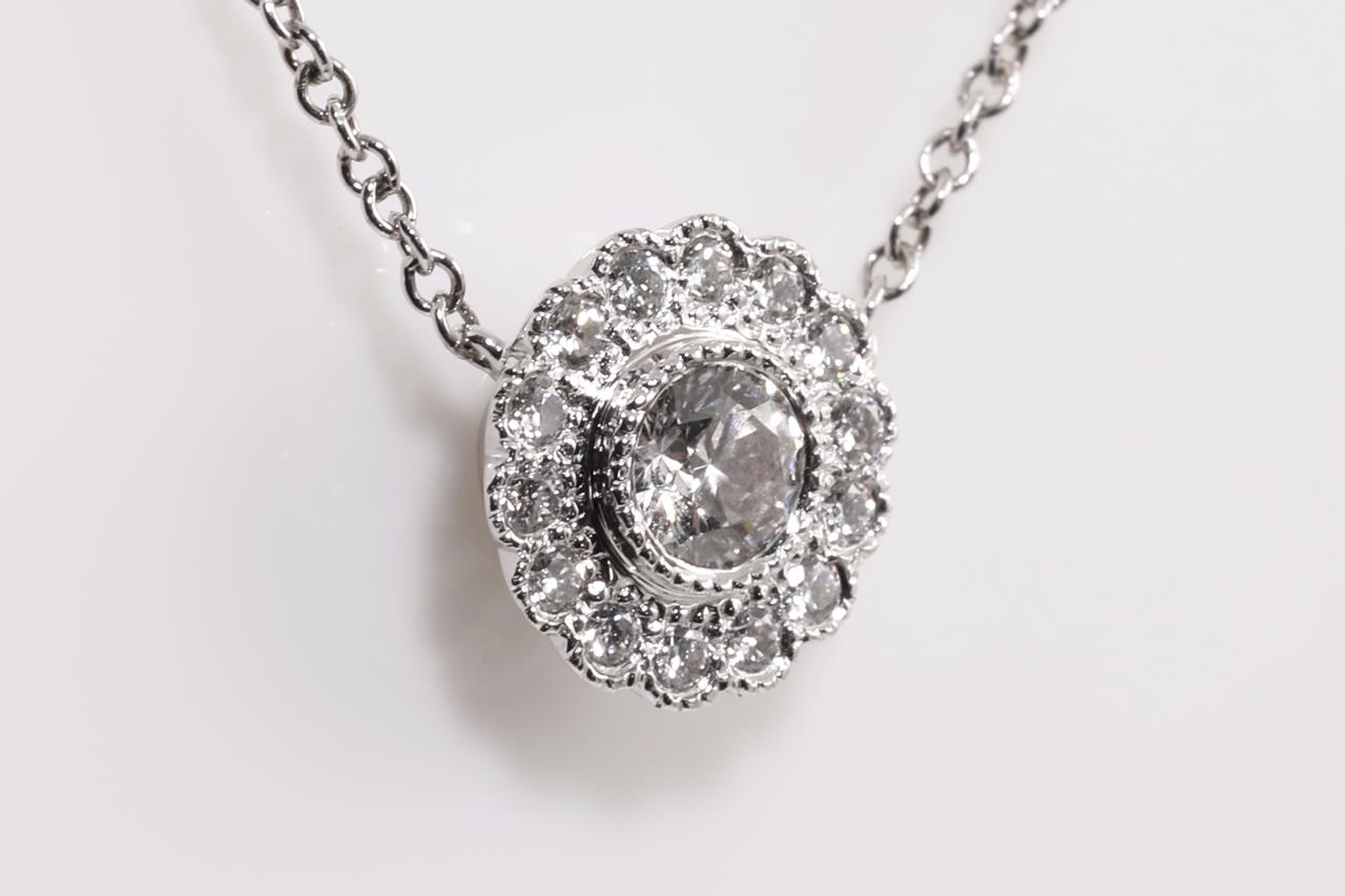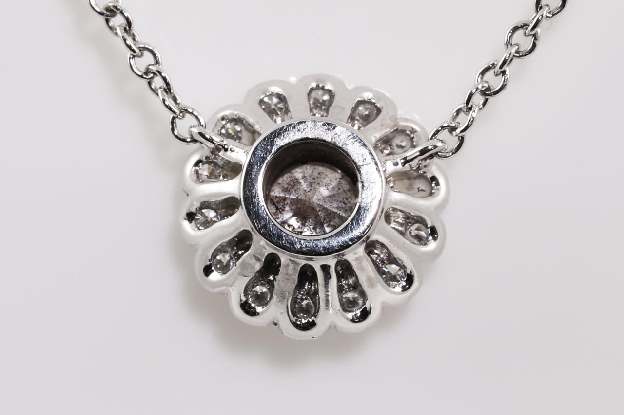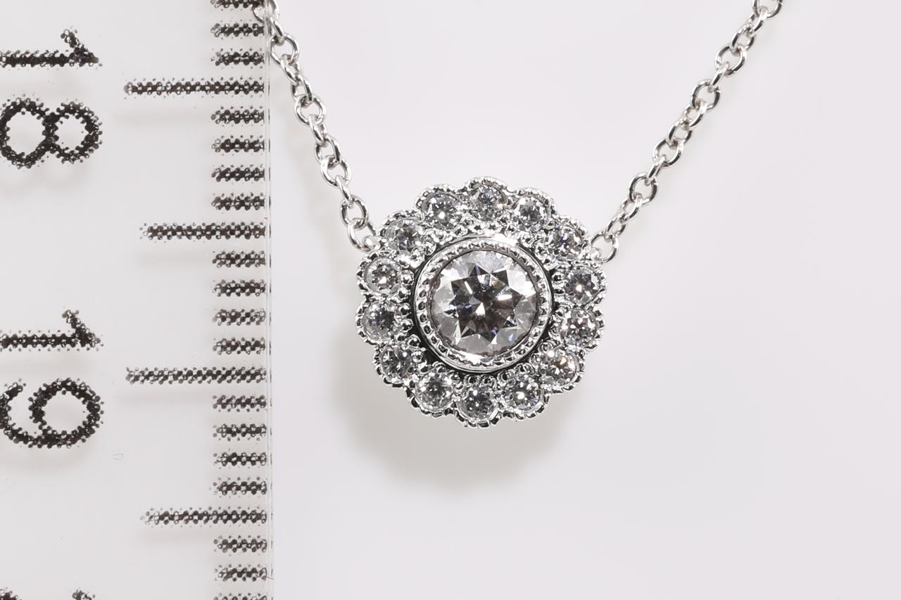 Tiffany & Co Enchantment Flower pendant with round Diamonds totalling approximately 0.25cts (Estimated grading: F VS). Platinum with attached chain. Length: 41cm. Weight: 3.6g. (Pre-owned)