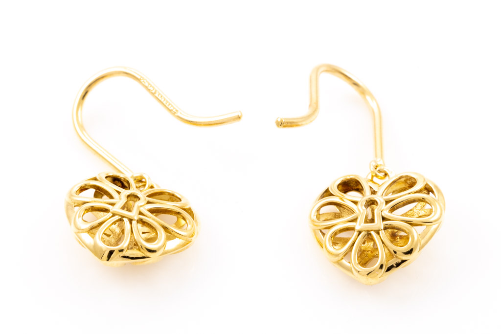 Tiffany & Co Filigree Heart shepherds hook drop earrings. 18ct yellow gold. Weight: 3.0g. With Tiffany & Co box and pouch. (Pre-owned)