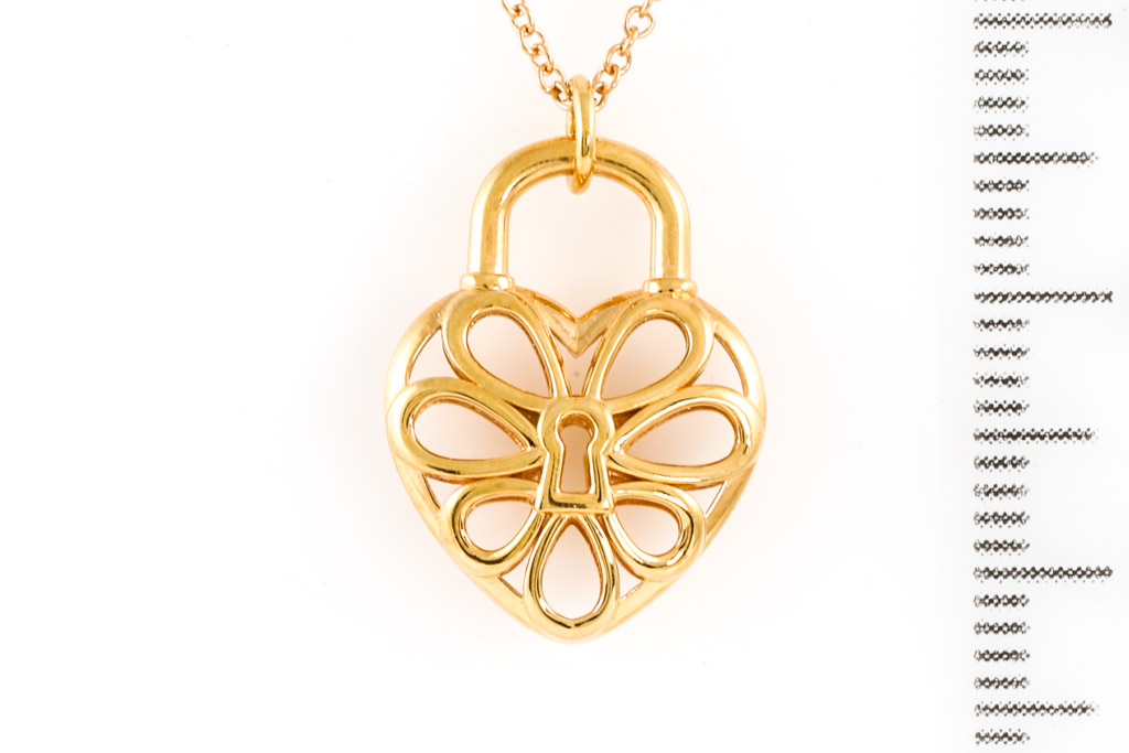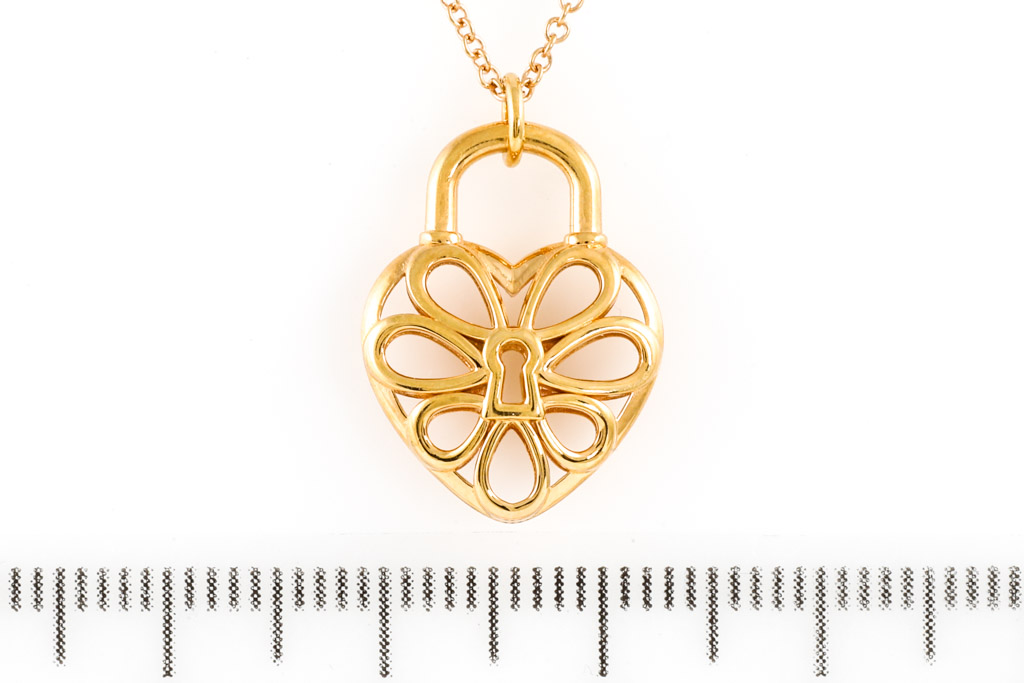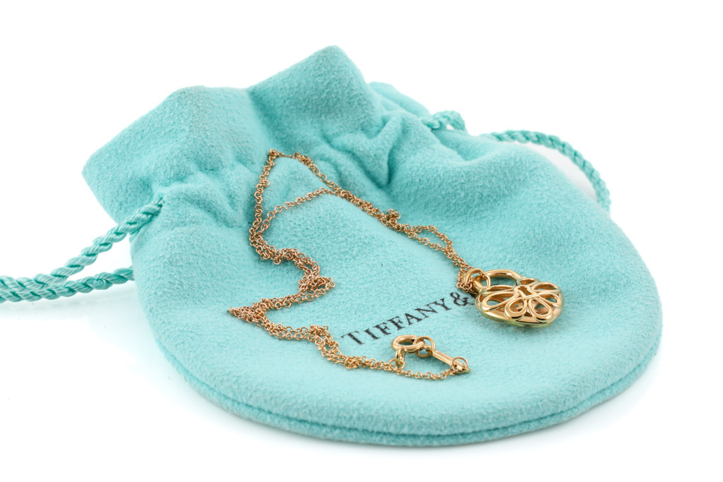 Tiffany & Co Filigree Heart necklace. 18ct rose gold with Tiffany & Co 18ct rose gold 40cm chain. Weight: 3.5g. With Tiffany & Co pouch. (Pre-owned)