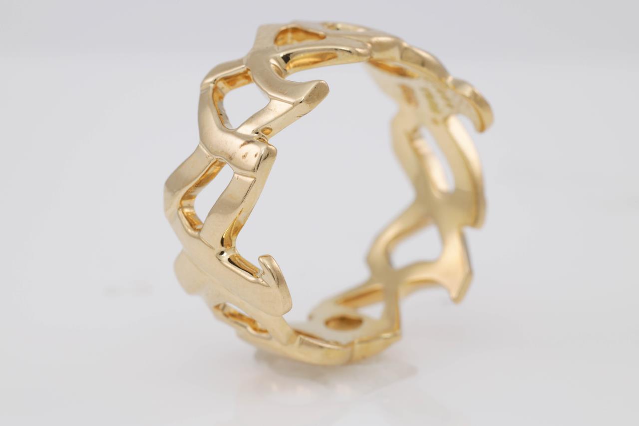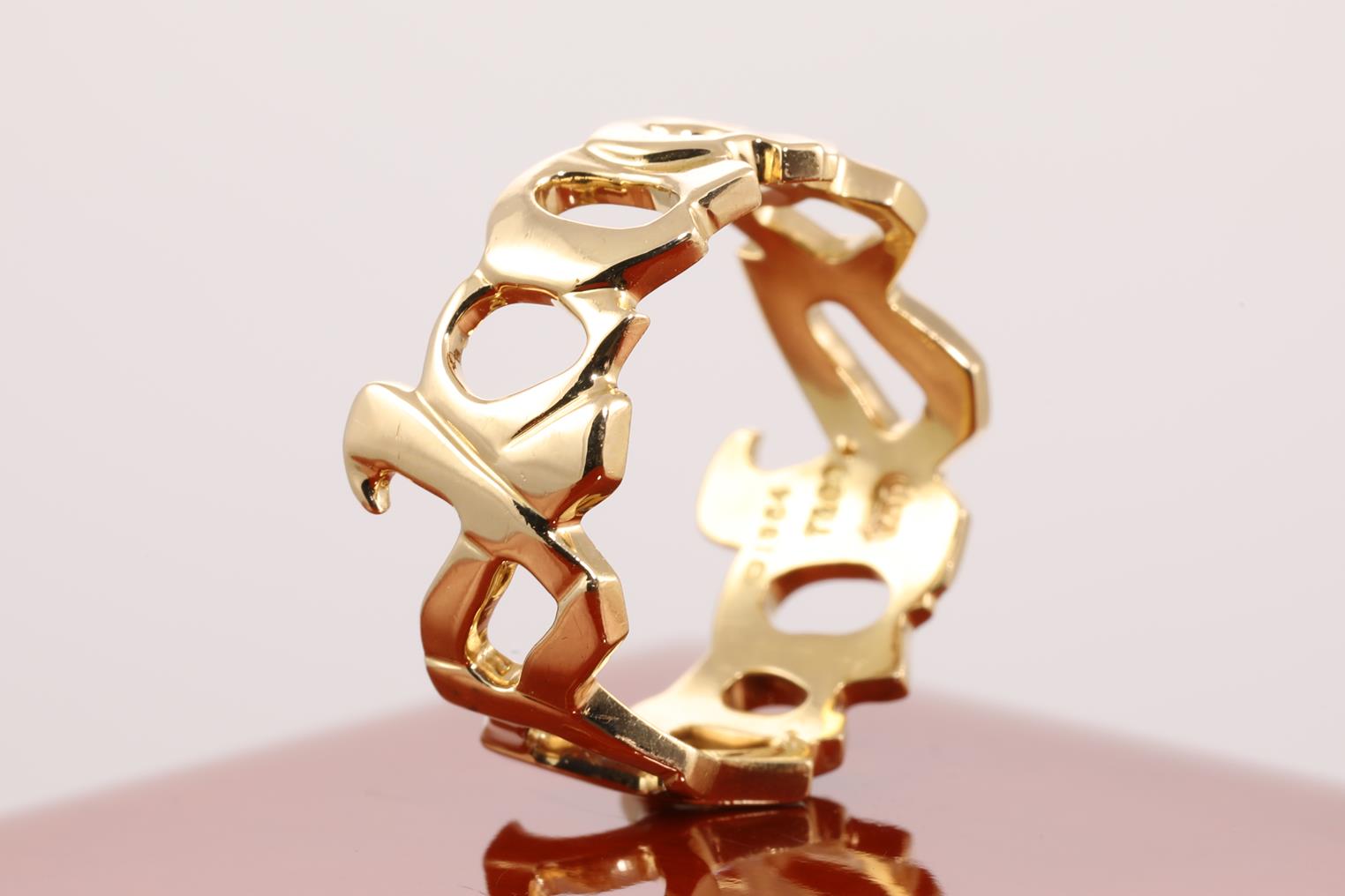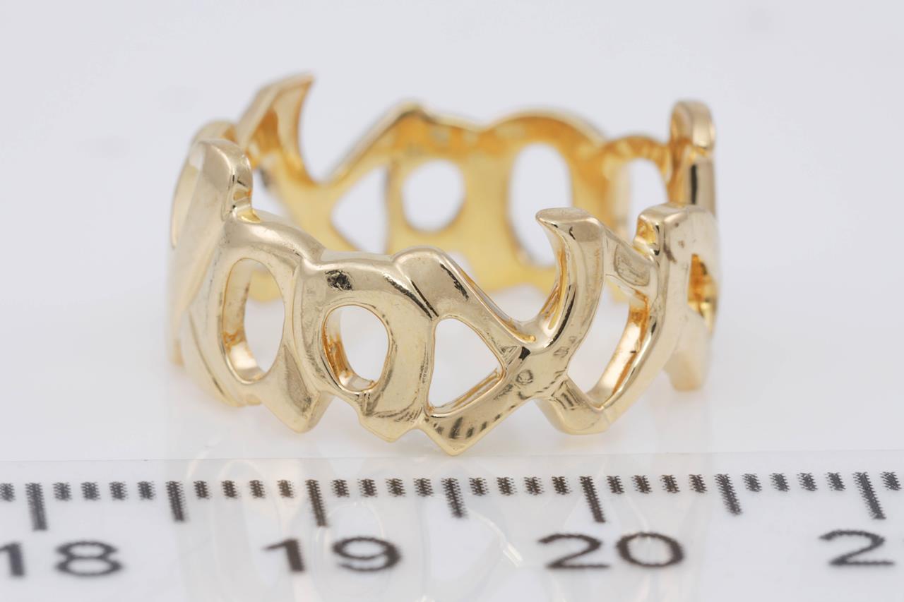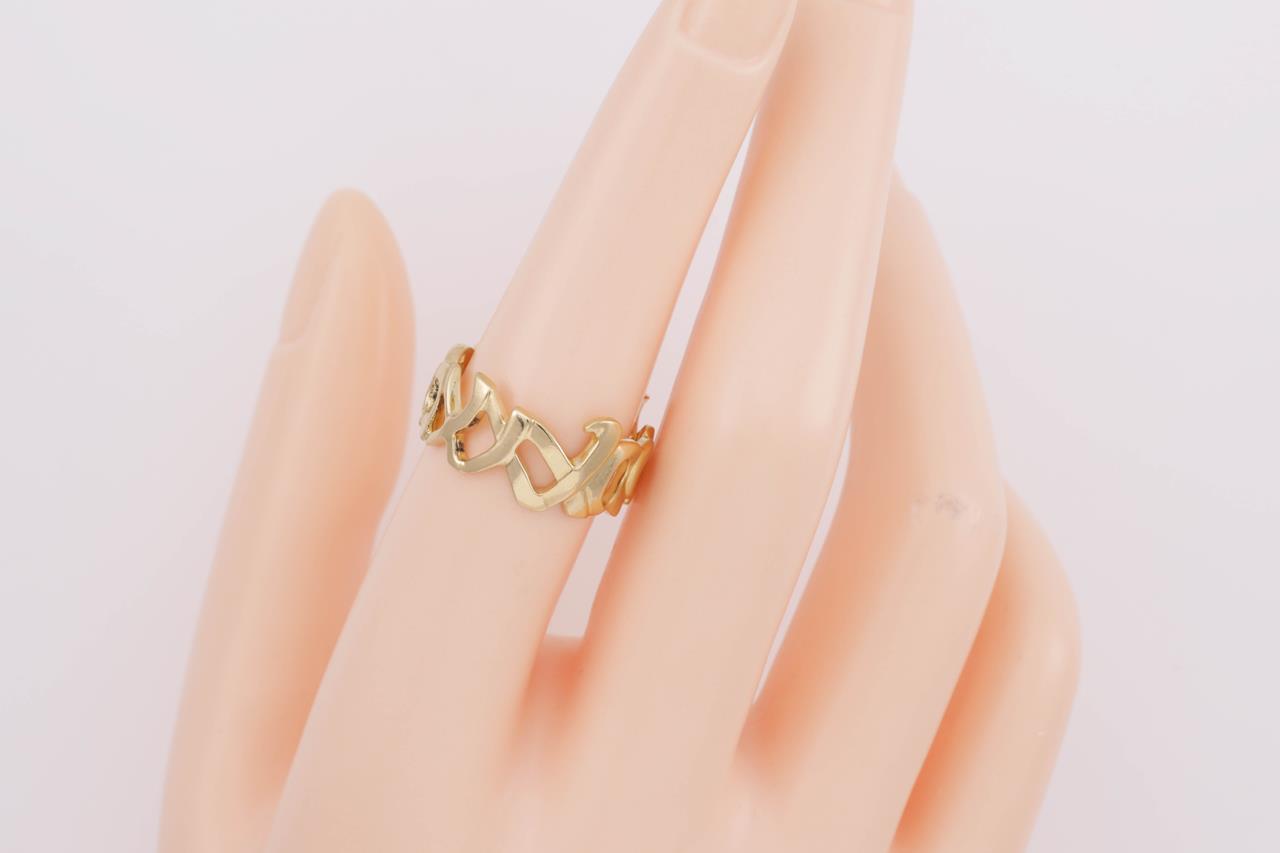 Tiffany & Co Paloma Picasso Graffiti Love and Kisses Ring. 18ct yellow gold. Circa 1984. Ring size N - ring resizing is not recommended. Weight: 6.1g. (Pre-owned)