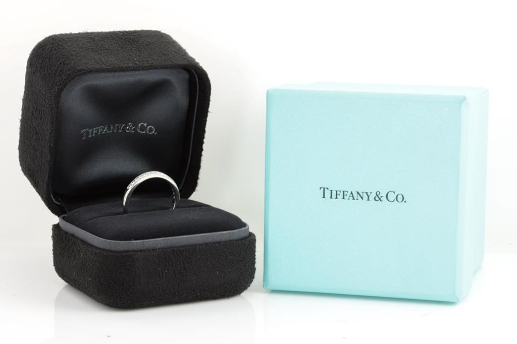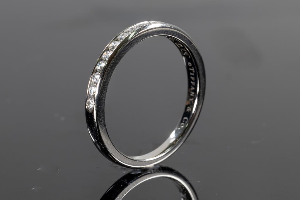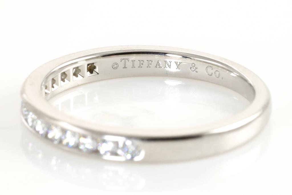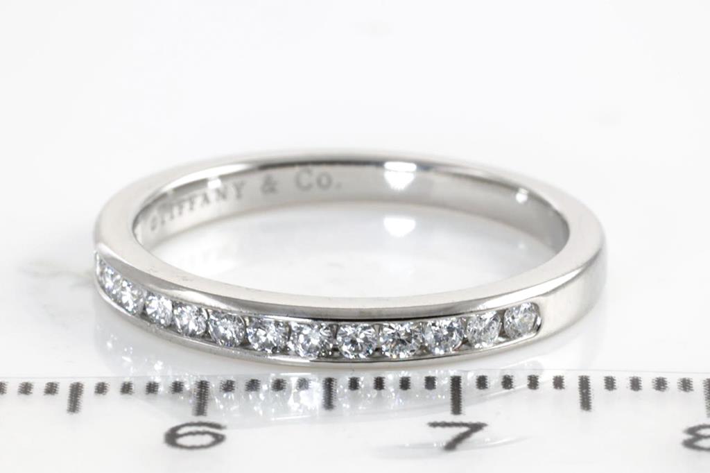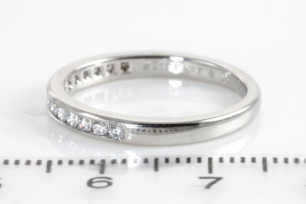 Tiffany & Co. Half Circle Channel Setting Diamond ring with Diamonds totalling approximately 0.21cts (Estimated grading: F-G VS). Platinum. Ring size O - ring resizing is not recommended. With Tiffany & Co. box. Weight: 4.2g (Pre-owned)