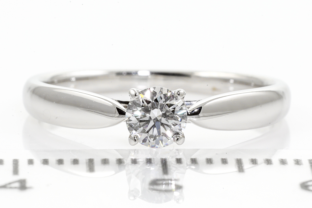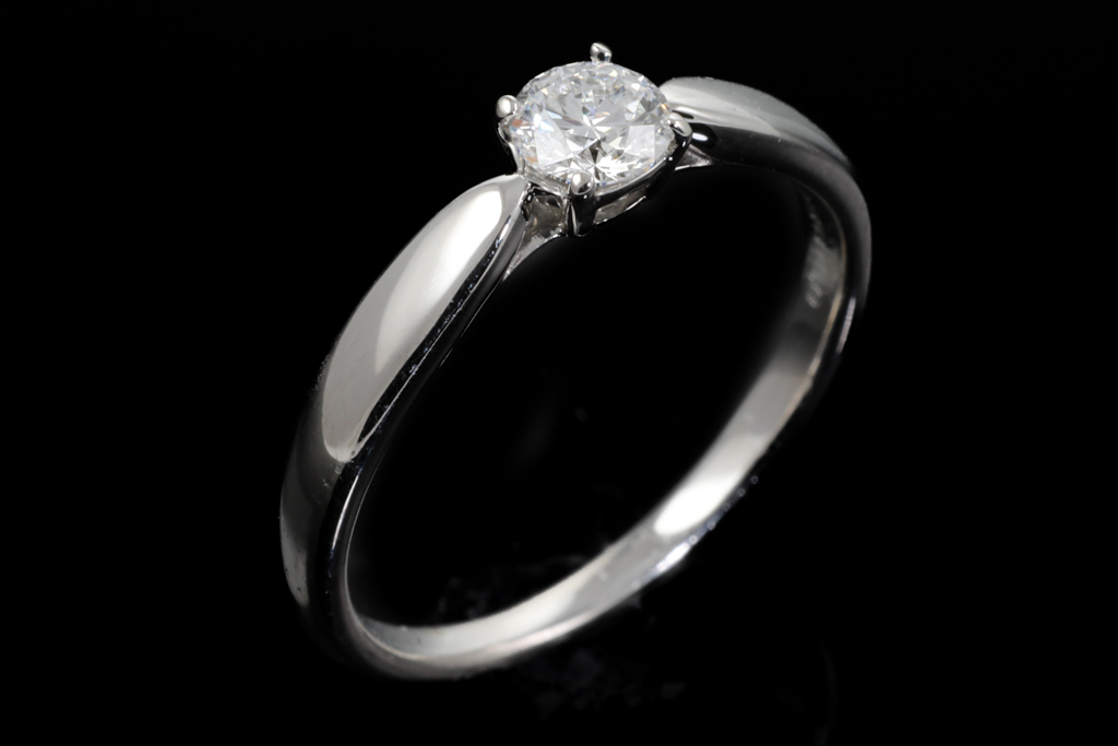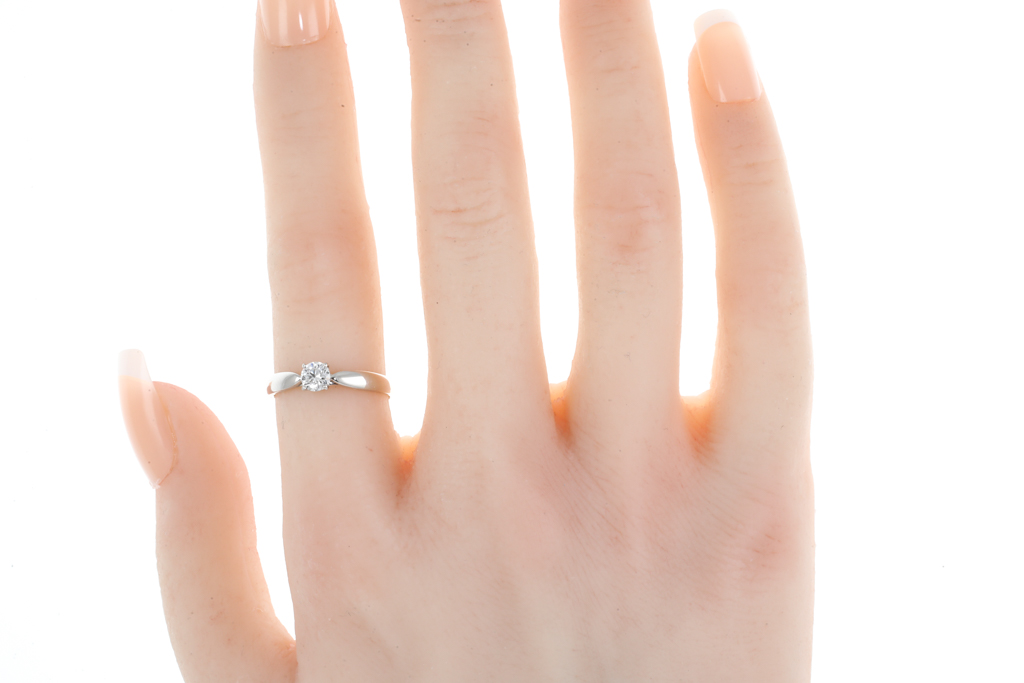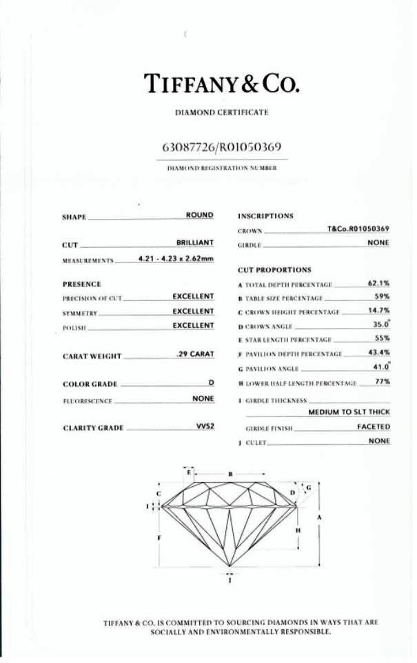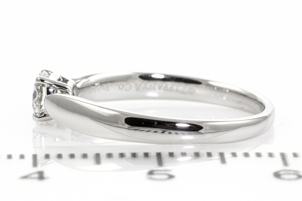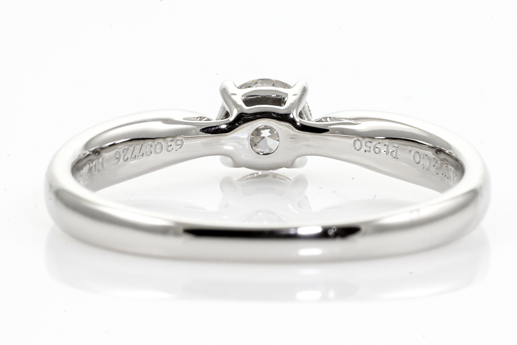 Tiffany & Co. Harmony Diamond ring with round brilliant Diamond of 0.29ct (Estimated grading: D VVS2). Platinum-950. Ring size K, - ring resizing is not recommended. Weight: 3.4g. With Tiffany & Co Diamond Certificate and Tiffany & Co box. (Pre-owned)