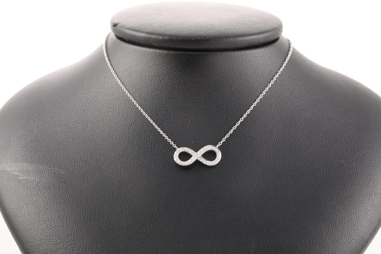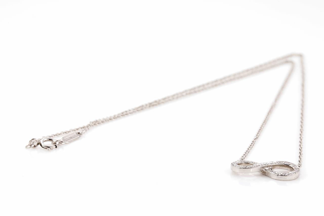 Tiffany & Co Infinity necklace with round Diamonds totalling 0.10cts. Platinum. Length: 42cm. Weight: 3.6g. (Pre-owned)