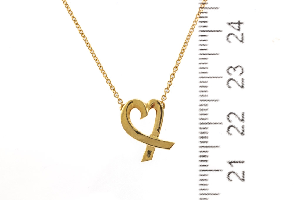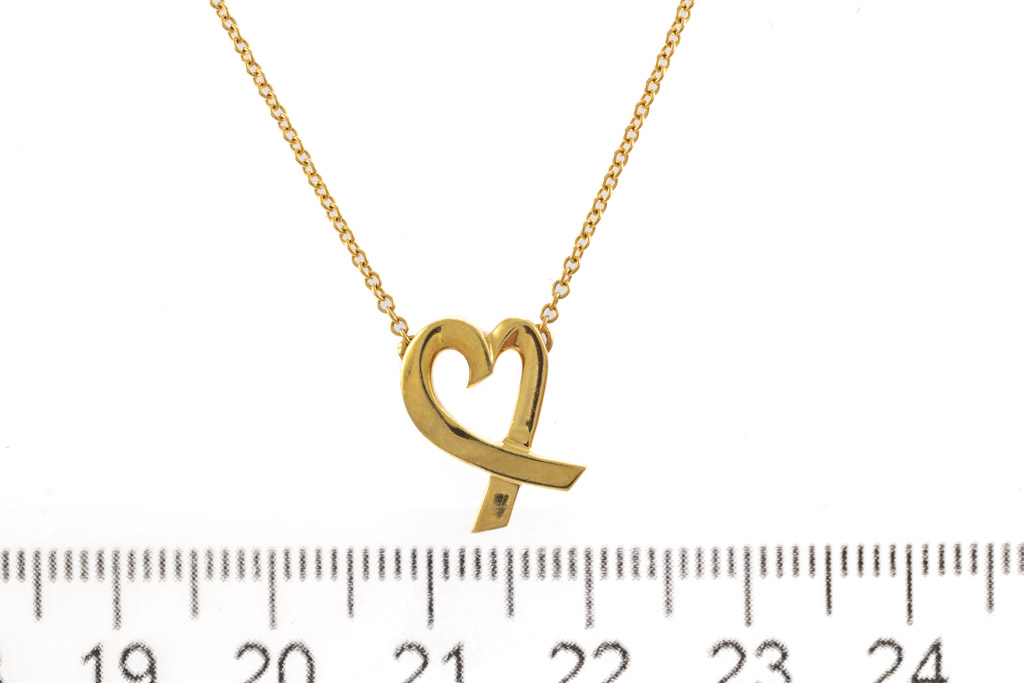 Tiffany & Co Paloma Picasso Loving Heart Pendant. 18ct yellow gold with attached chain. Length: 40cm. Weight: 2.9g. (Pre-owned)