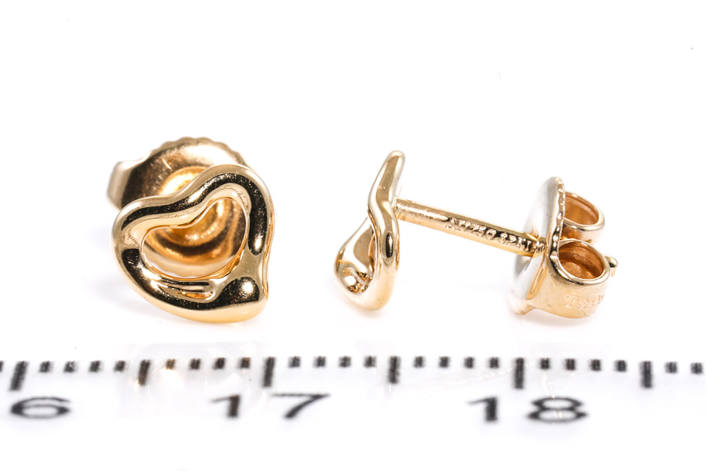 Tiffany & Co Elsa Peretti Open Heart Stud Earrings. Made in spain. 18ct rose gold. Weight: 2.0g. (Pre-owned)