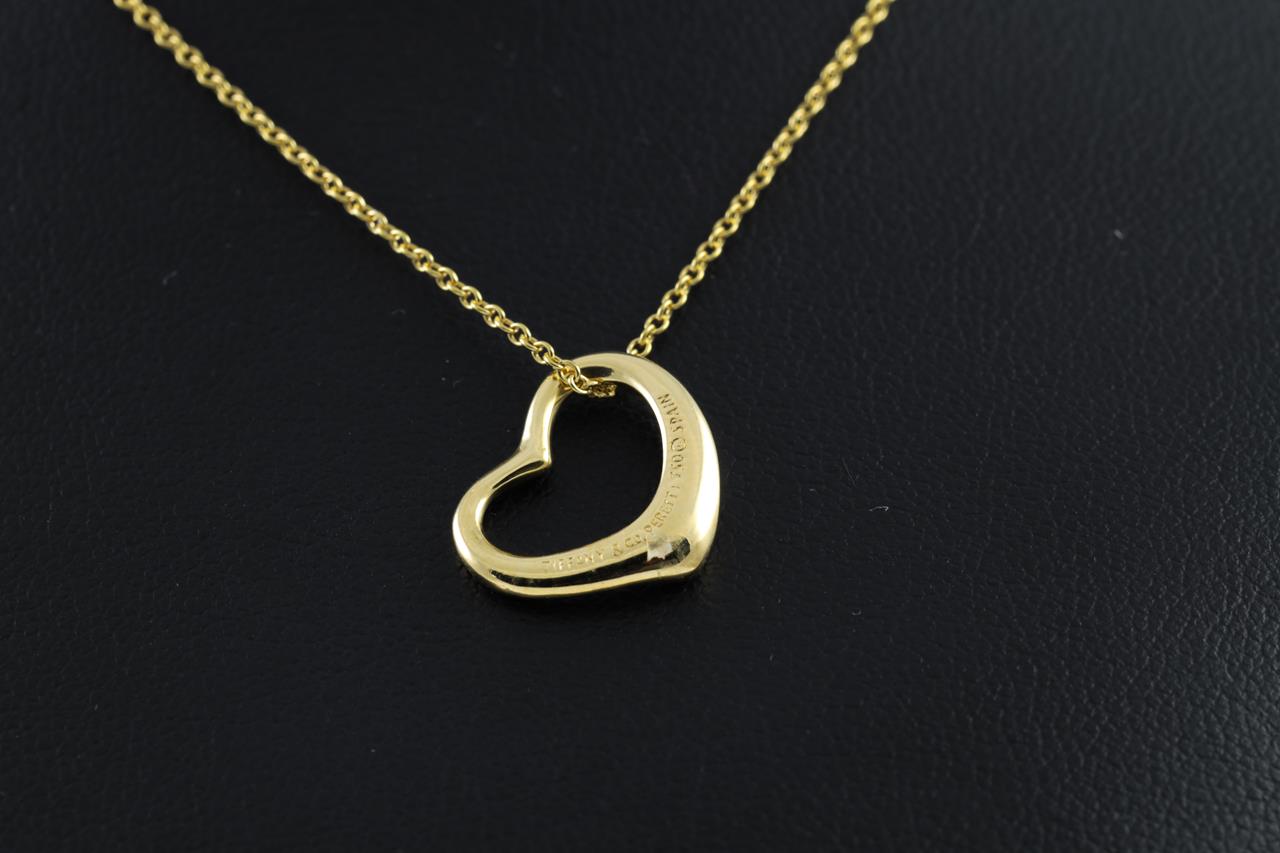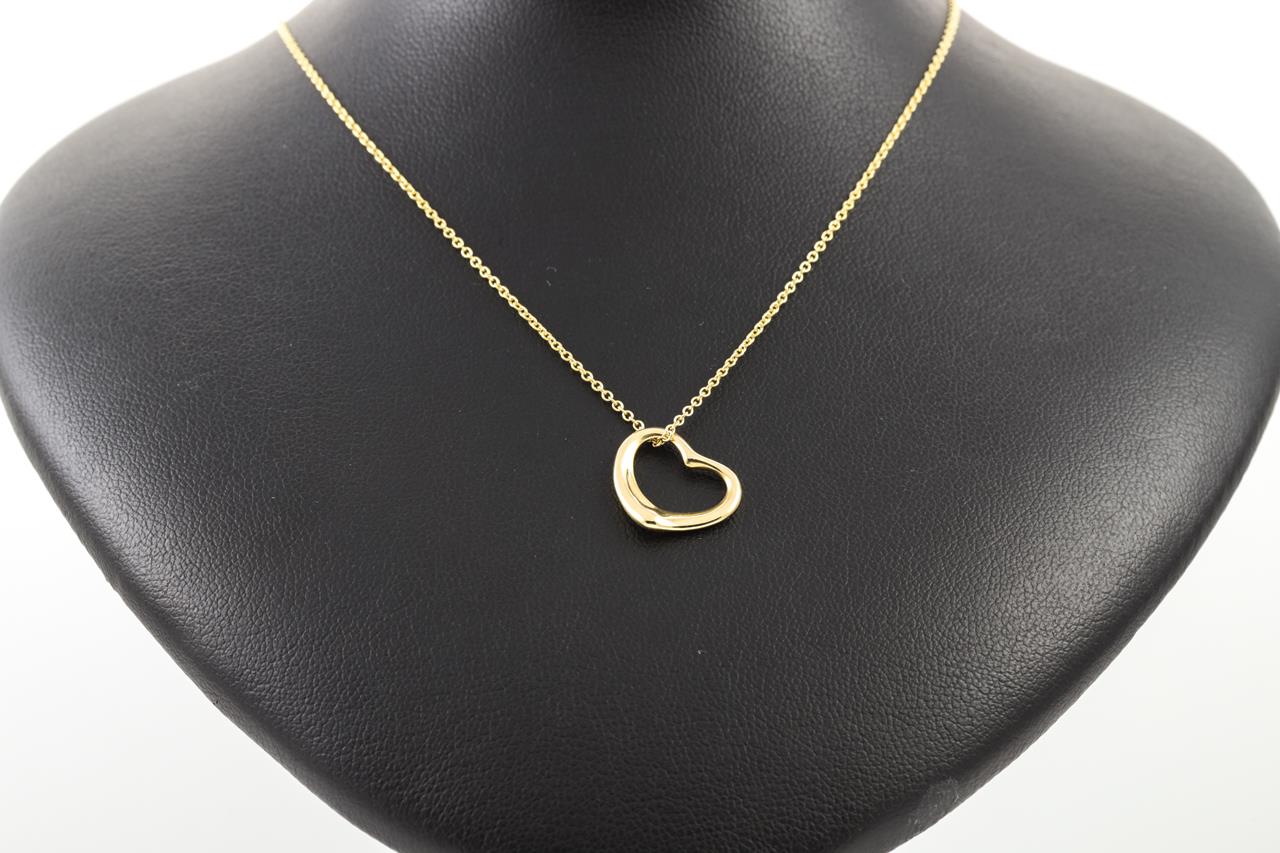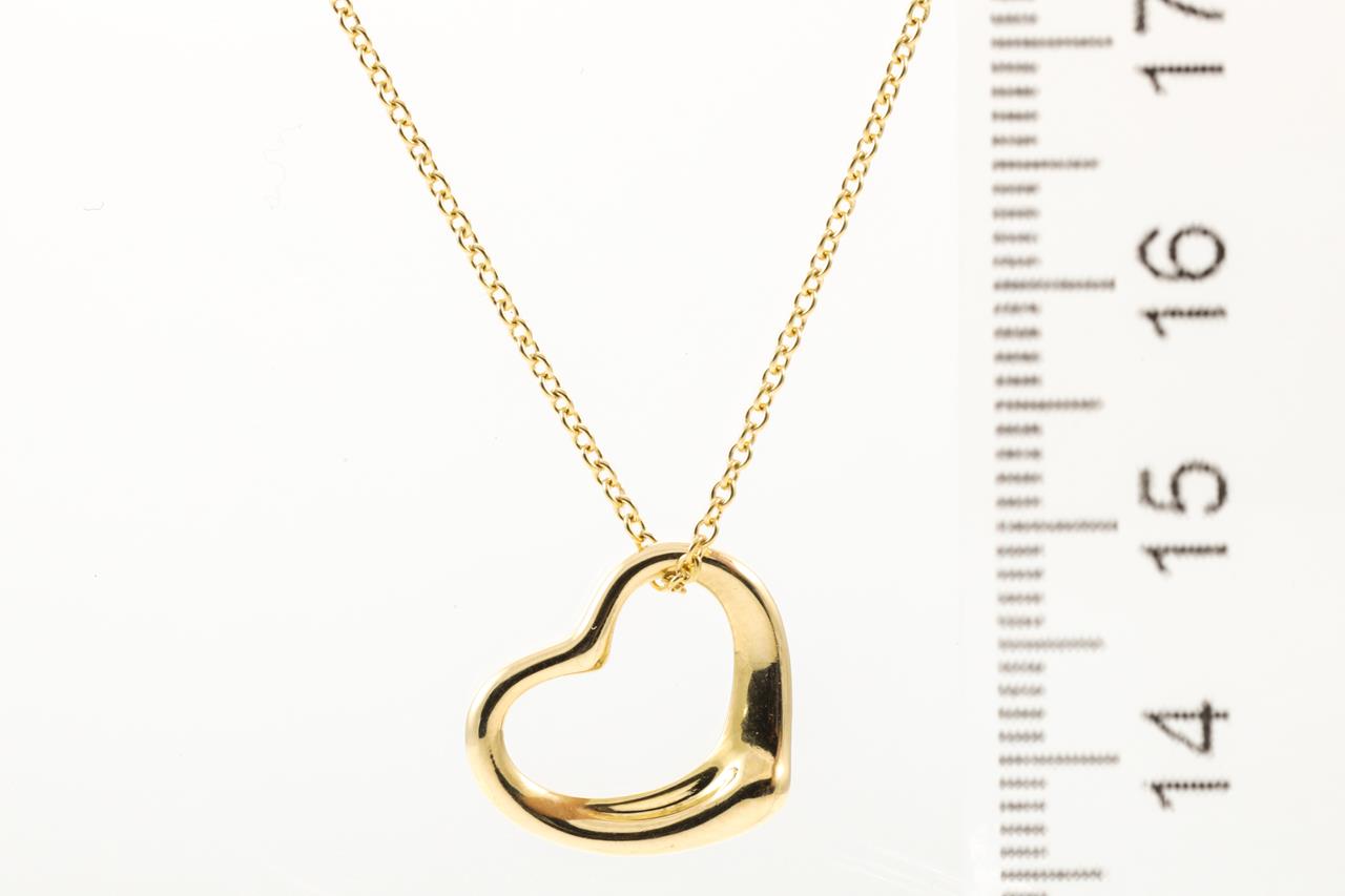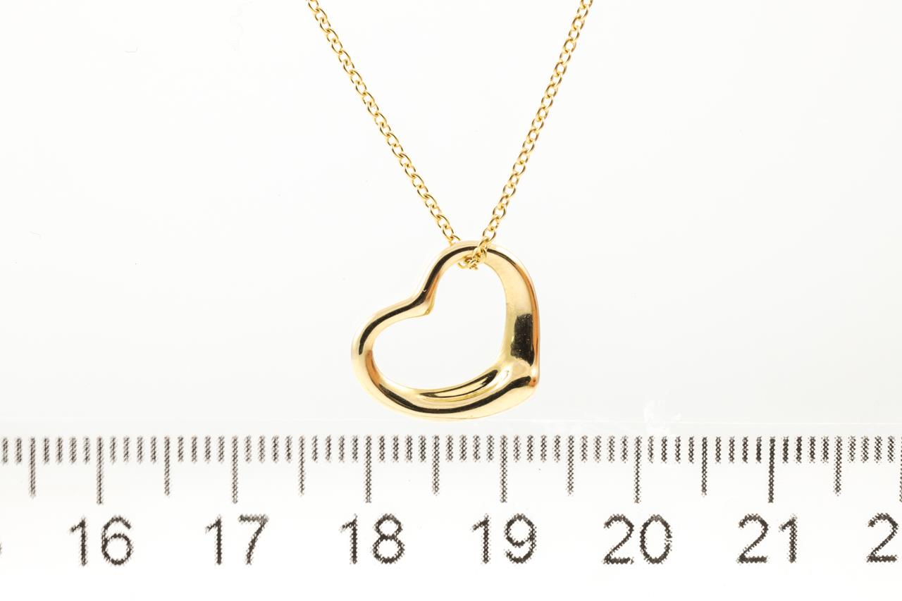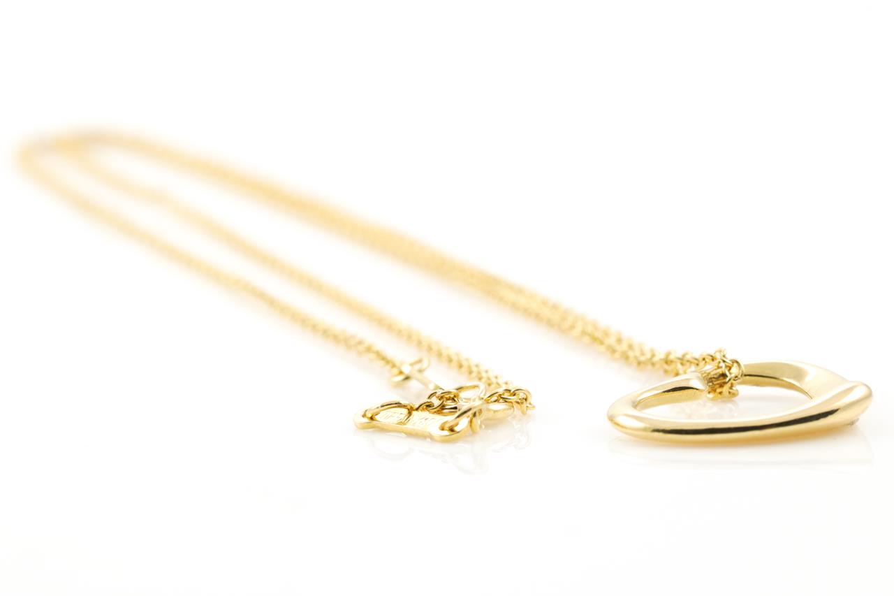 Tiffany & Co Elsa Peretti Open Heart pendant. Width 15mm. 18ct yellow gold. Made in Spain. Weight: 3.1gm. Length: 42cm. (Pre-owned)