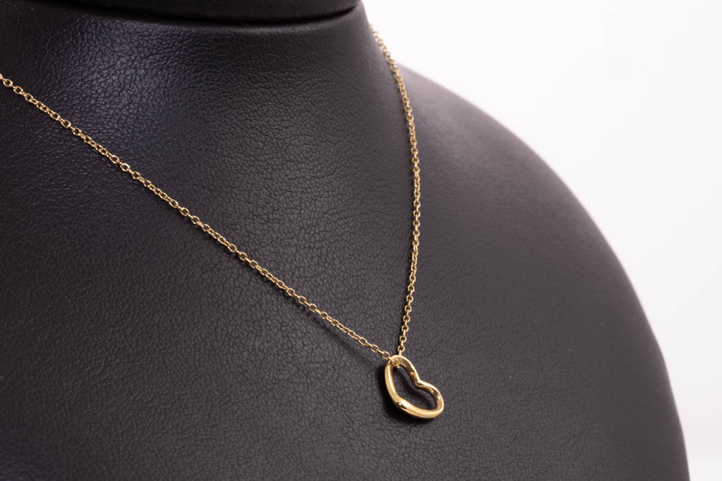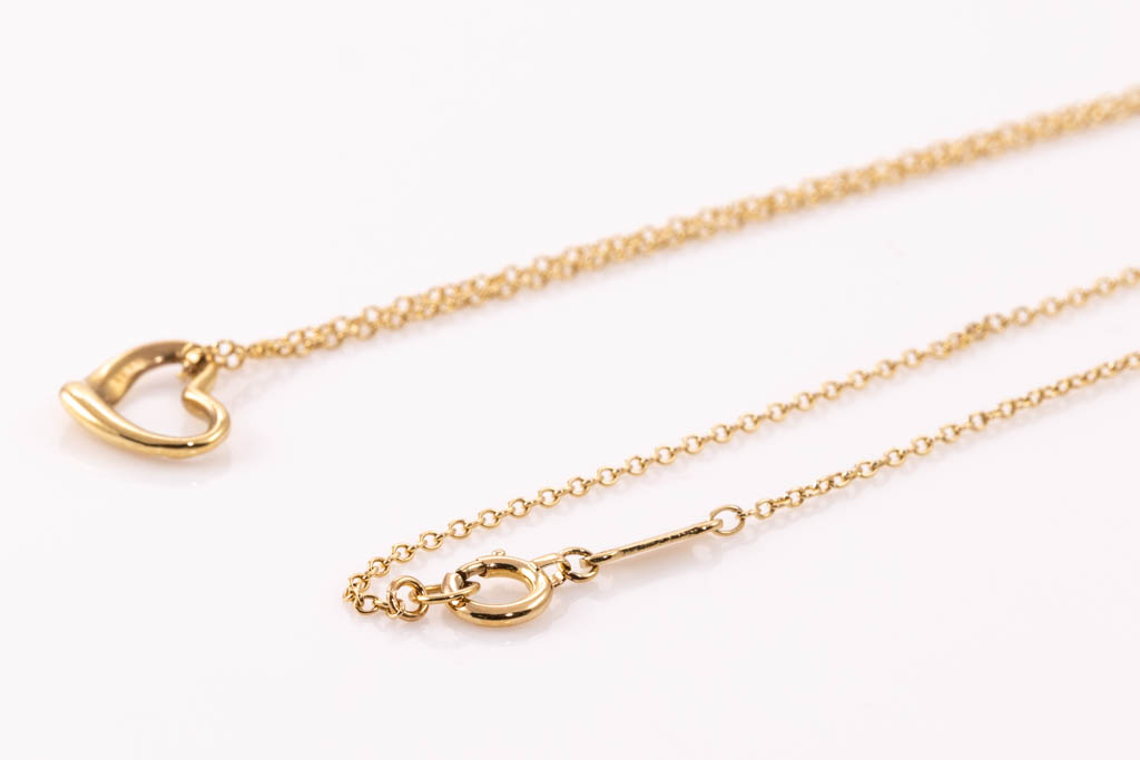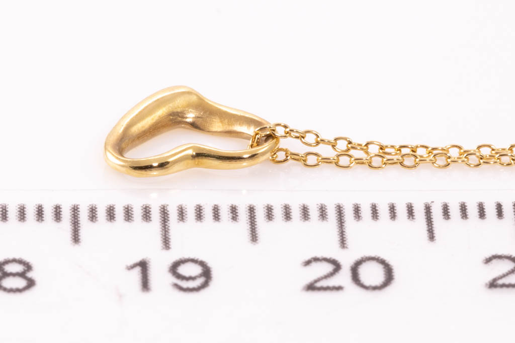 Tiffany & Co Elsa Peretti Open Heart pendant. 18ct yellow gold with Tiffany & Co 18ct yellow gold 42cm chain. Weight: 1.9gm (Pre-owned)