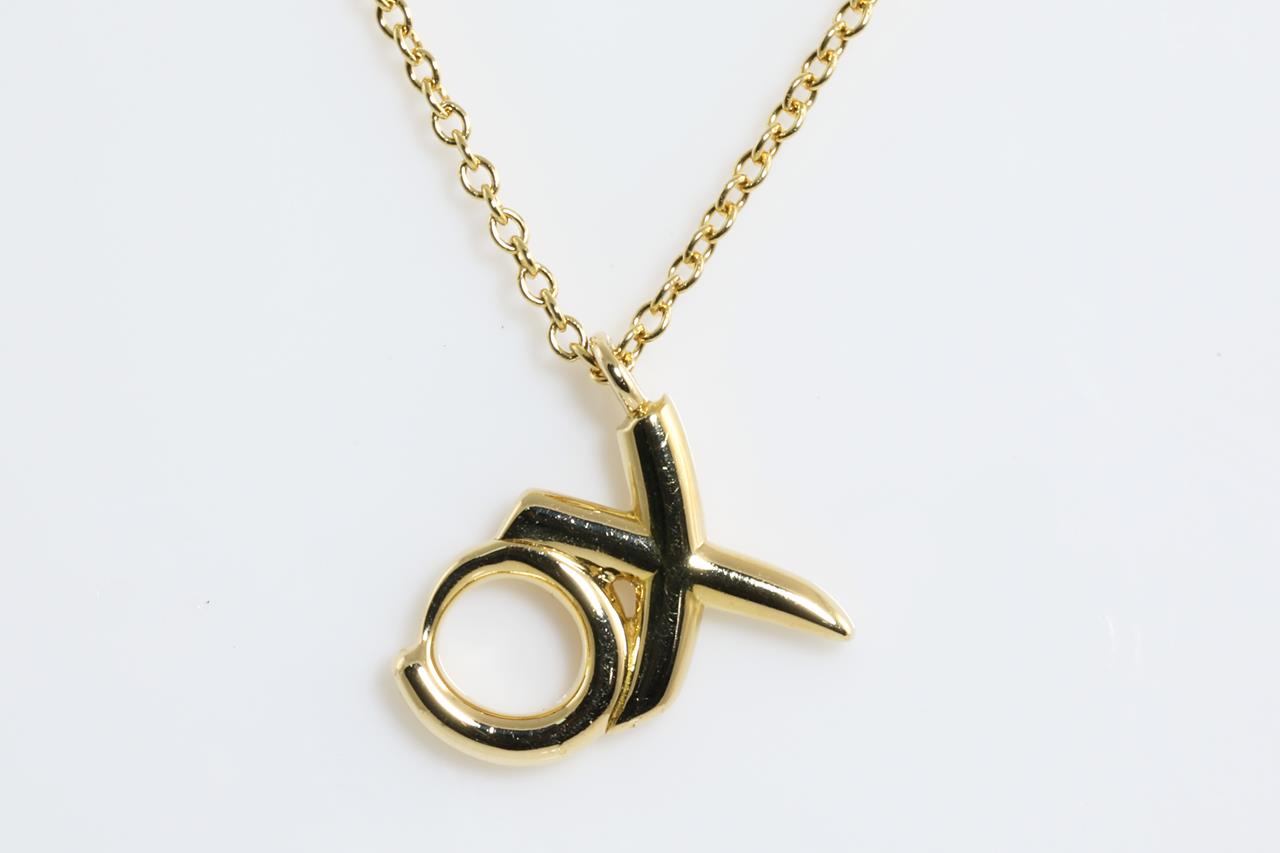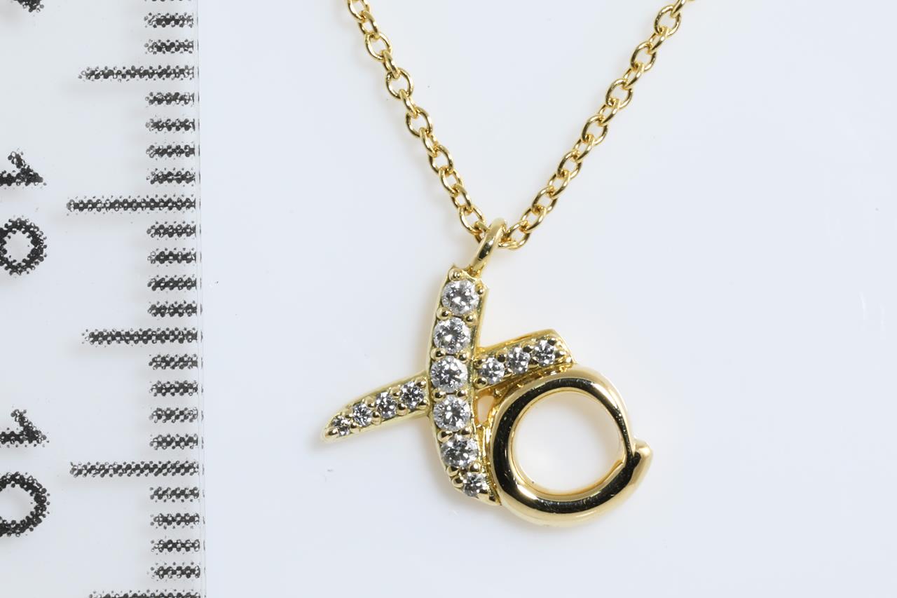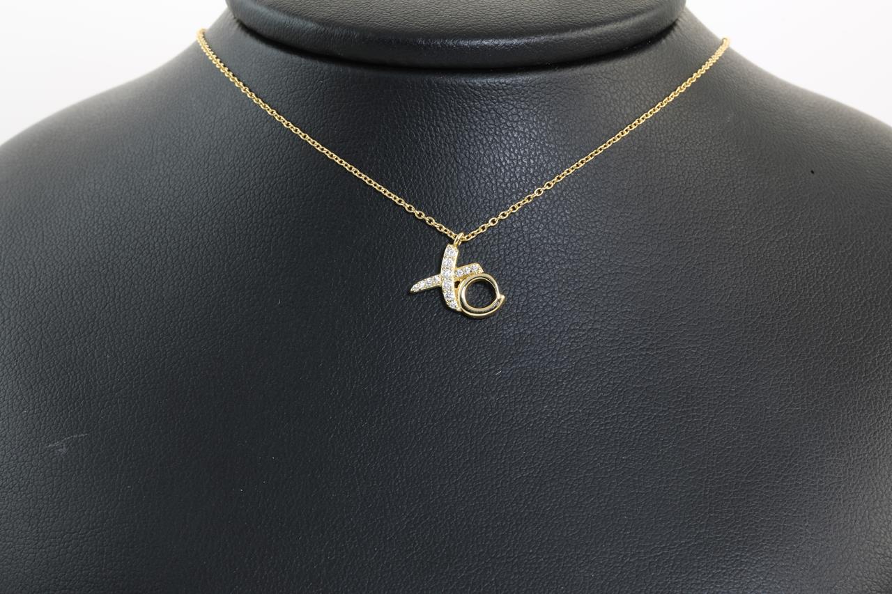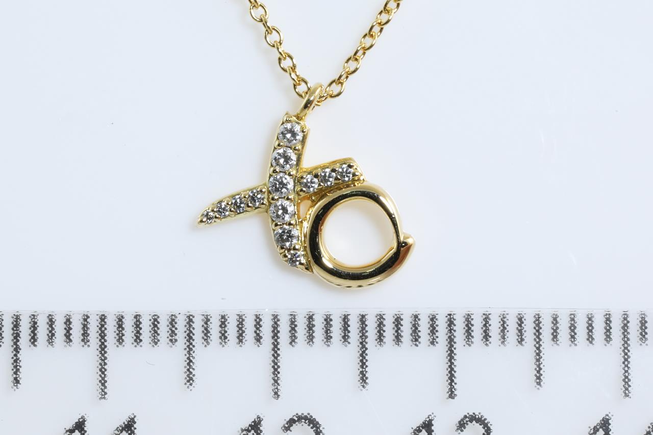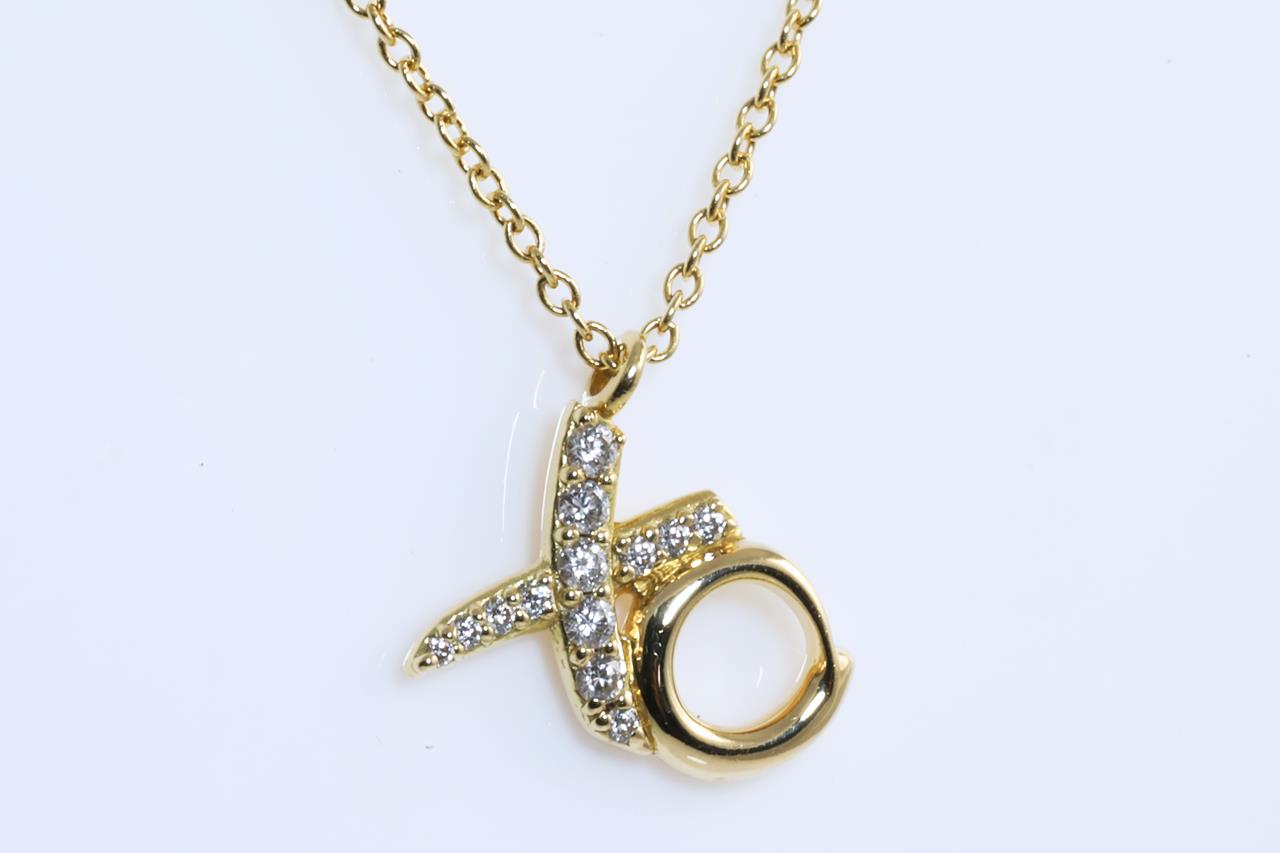 Tiffany & Co Paloma Picasso Love & Kisses pendant with Diamonds totalling approximately 0.10cts. 18ct yellow gold with 41cm adjustable chain. Weight: 2.3g With Tiffany & Co pouch. (Pre-owned)
